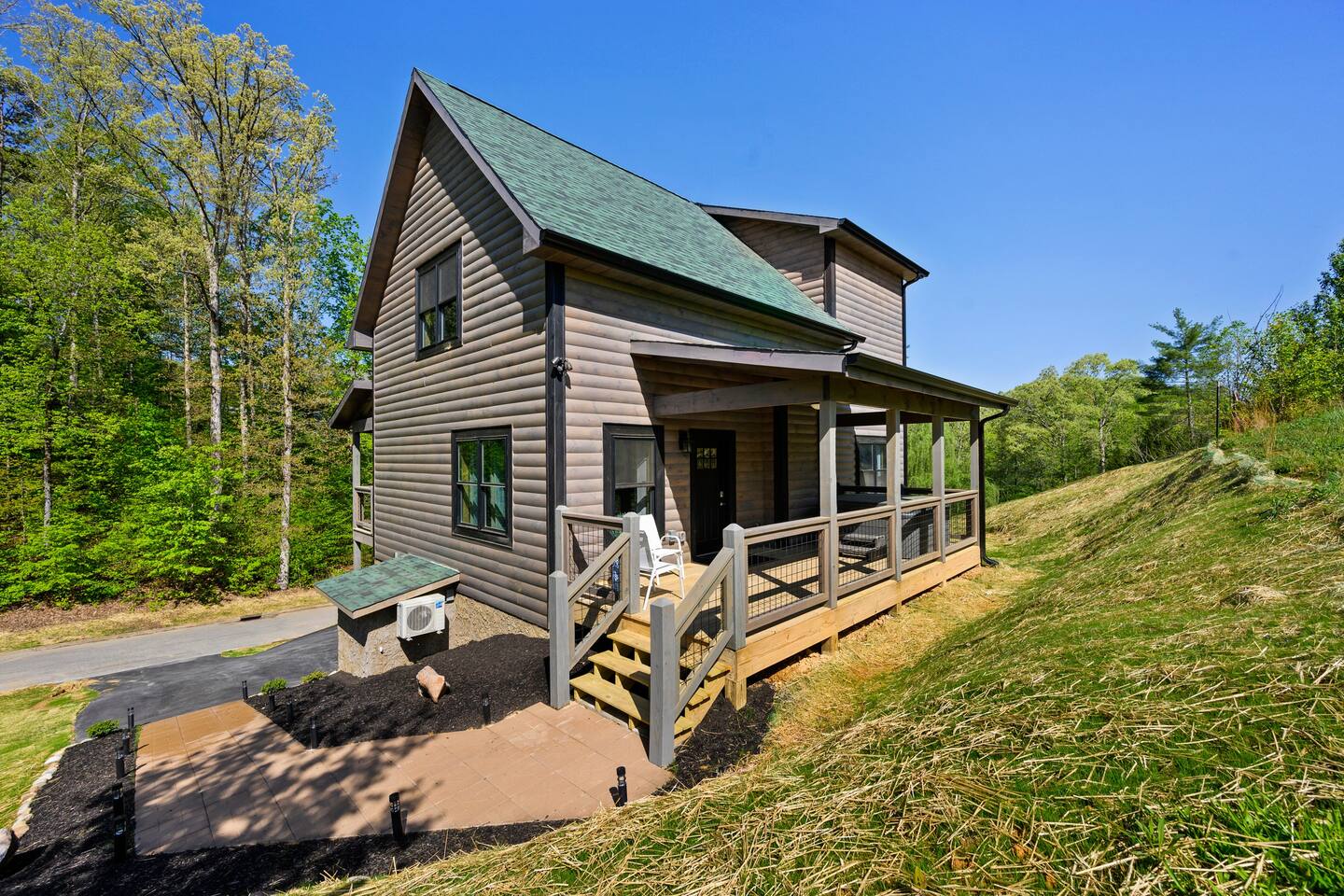 Enjoy a stay at our Smoky Blues Cabin. This gorgeous cabin is great for family and friend vacations. Enjoy a indoor pool downstairs or warm up in the hot tub on the back porch. The cabin is conveniently located minutes to Pigeon Forge and Dollywood.