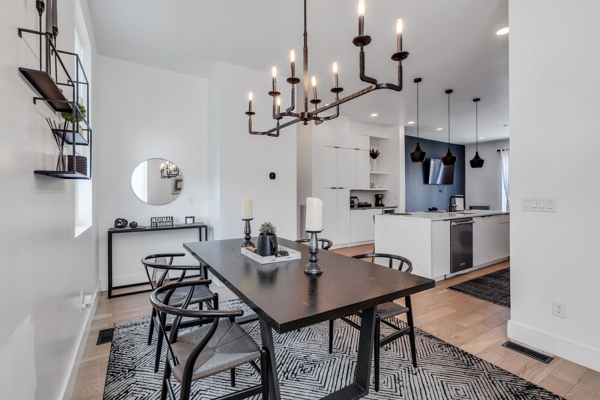 Kitchen, Living, and Dining Space