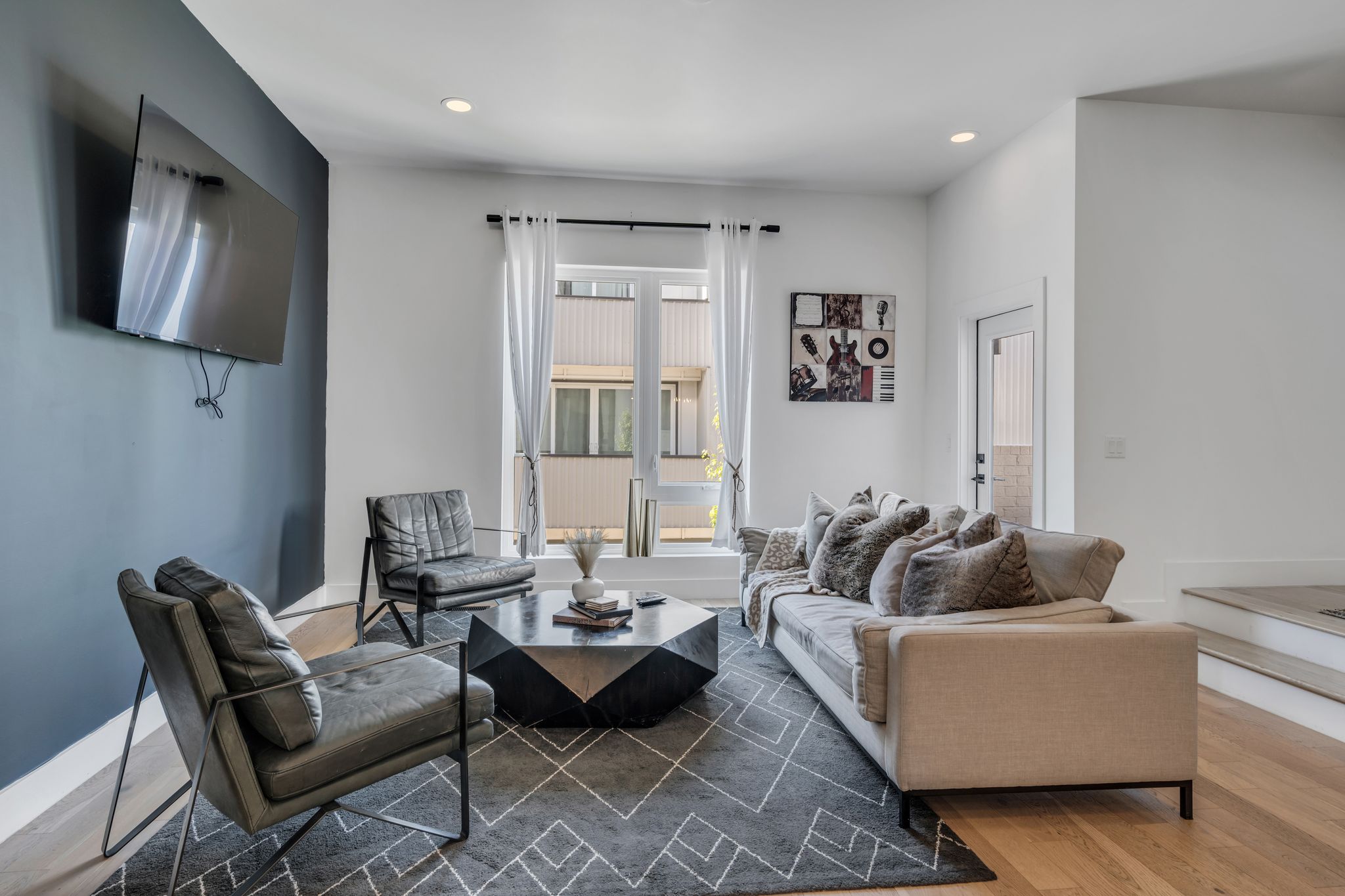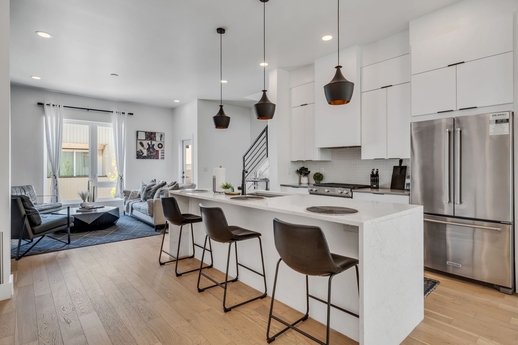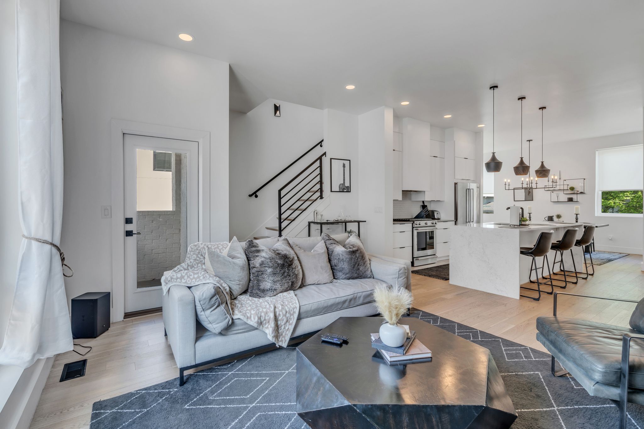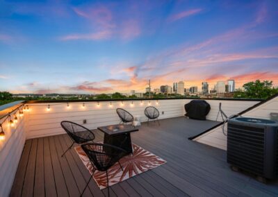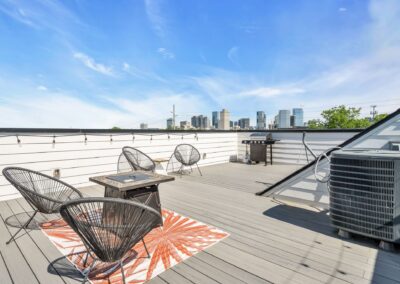 You’ll feel right at home in our luxurious, modern townhome. Our flowing open concept design promotes an ideal entertaining space. Equipped with a full sized chef’s kitchen, 2 car garage, Smart TV/Wifi, spacious bedrooms w ensuite bathrooms, & a sprawling rooftop lounge w mesmerizing views of the Nashville Skyline.