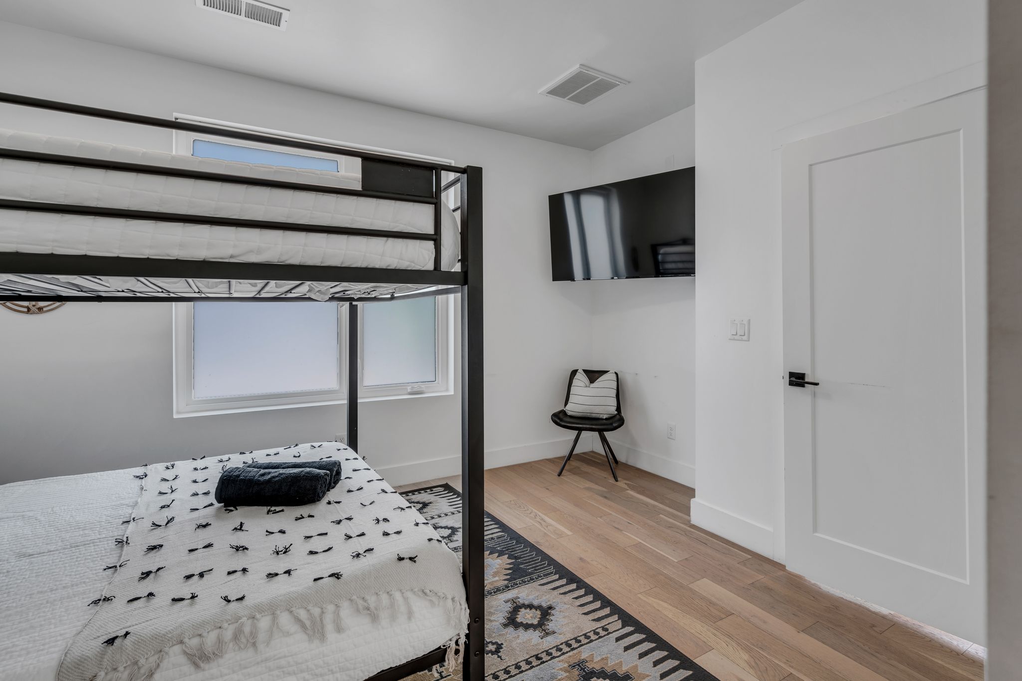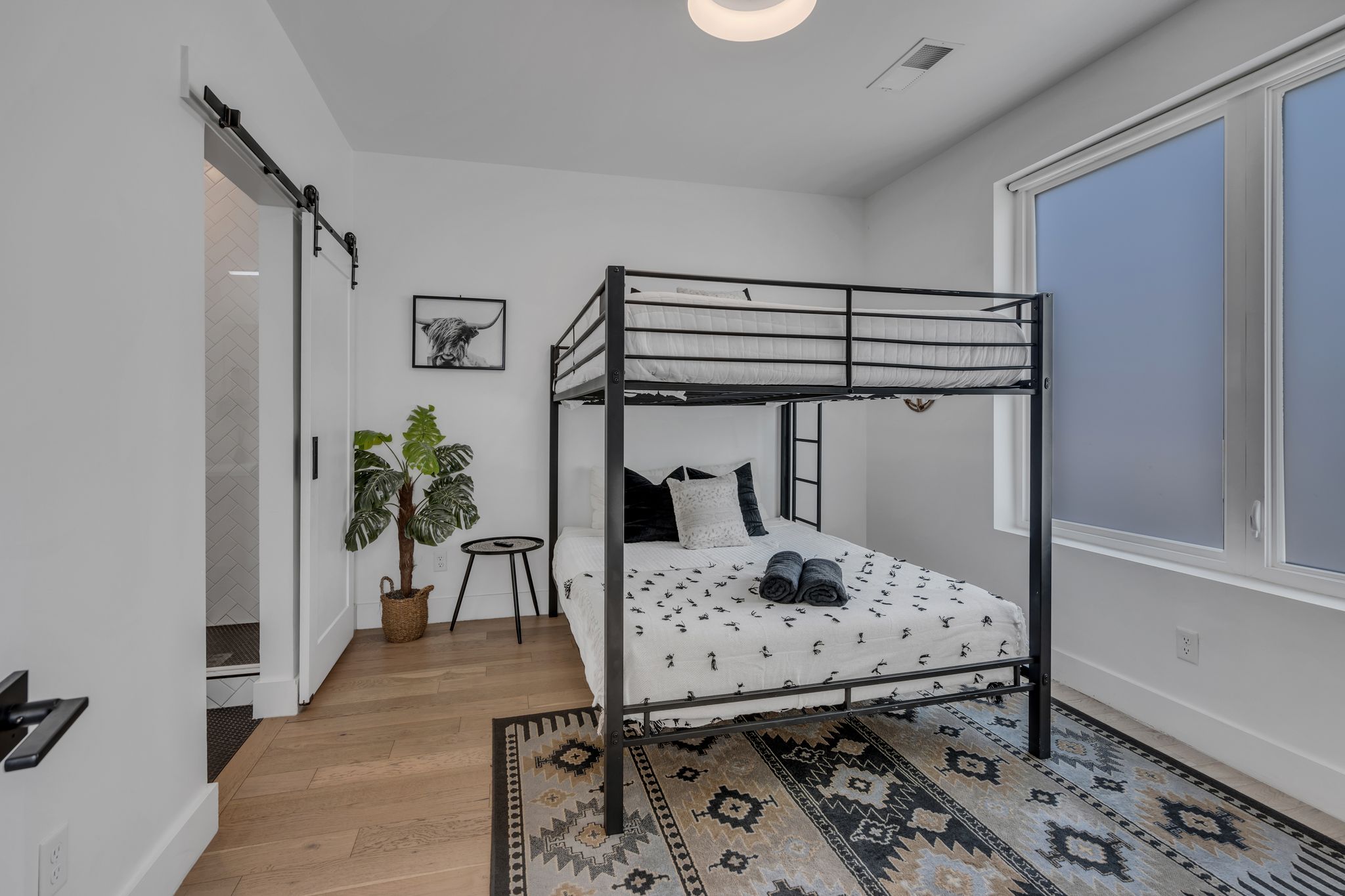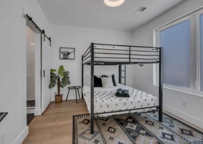 BR 1- Queen over Queen bunk beds w private attached full bathroom
