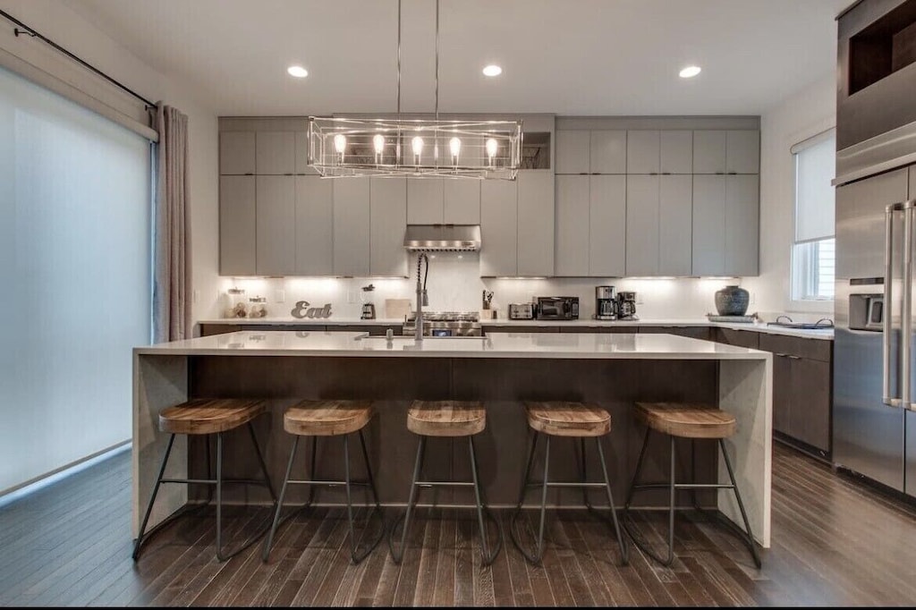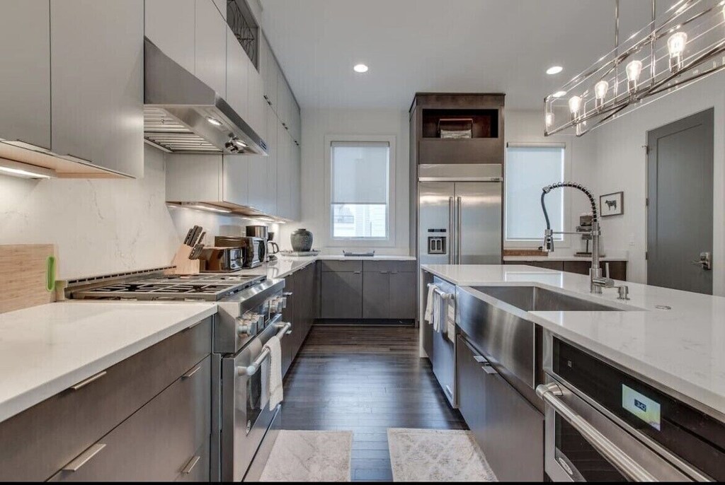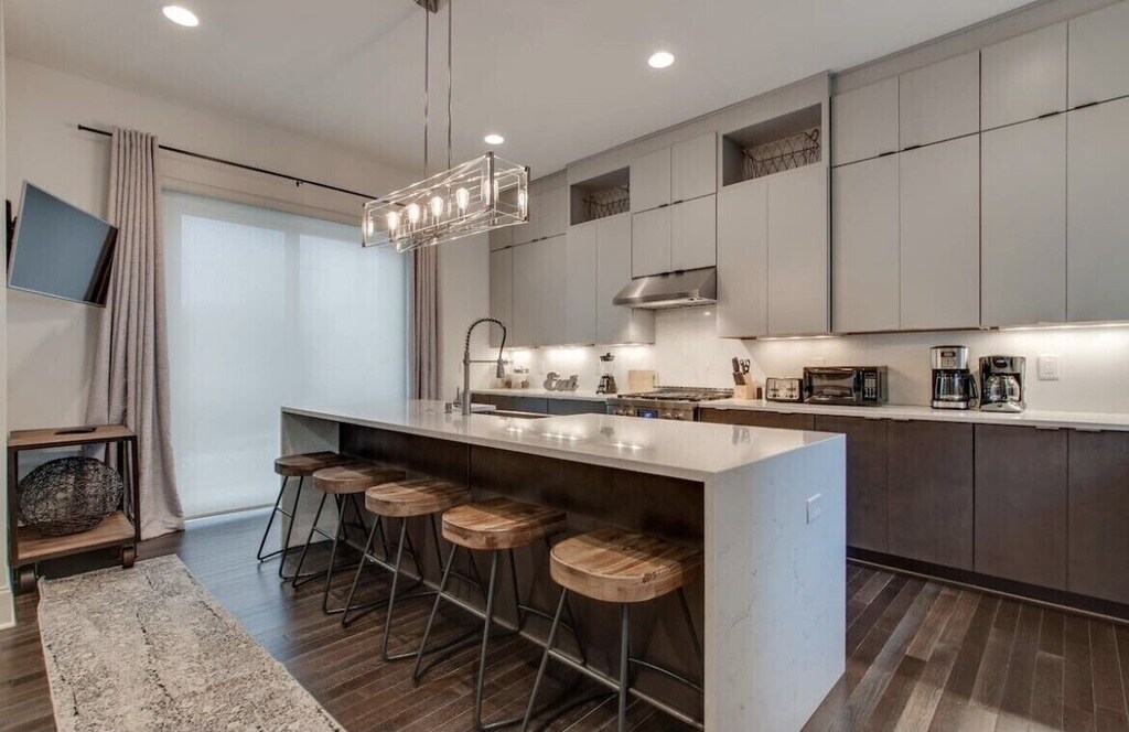 Well designed spacious modern home with plenty of room to spread out and enough beds for everyone. Walking distance to the popular hotspot known as the Gulch, that offers lots of bars/restaurants/shopping. Enjoy a fully stocked kitchen, spacious living room, 2 car garage, and a large rooftop for lounging.