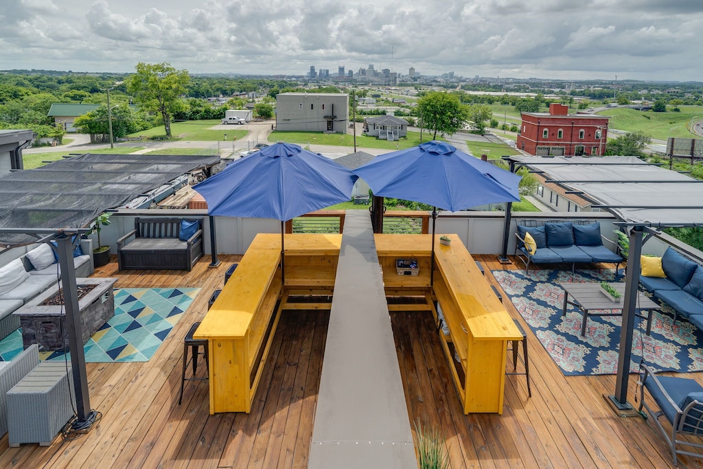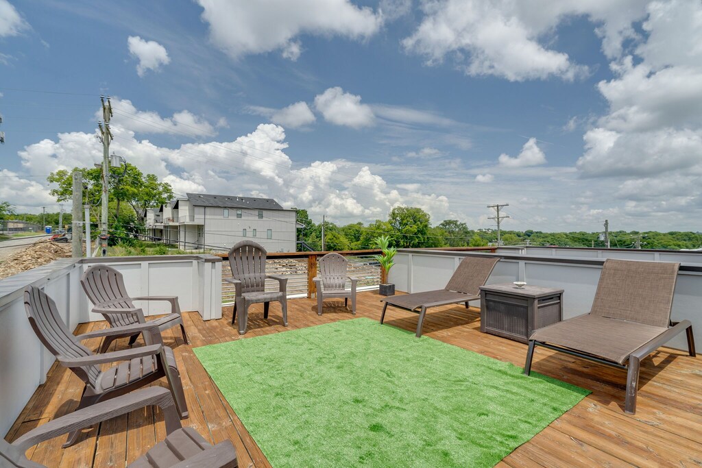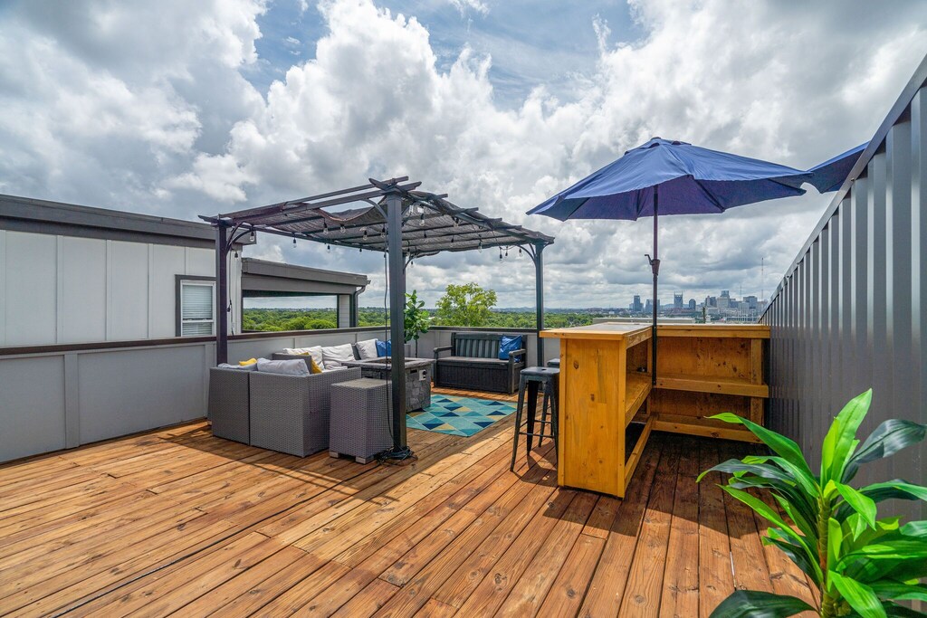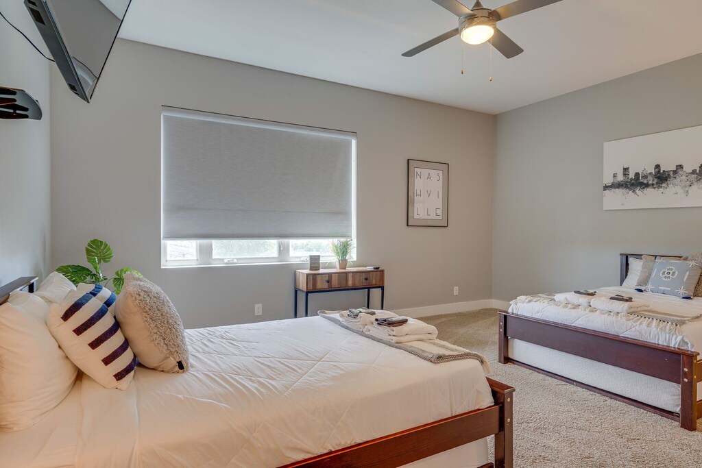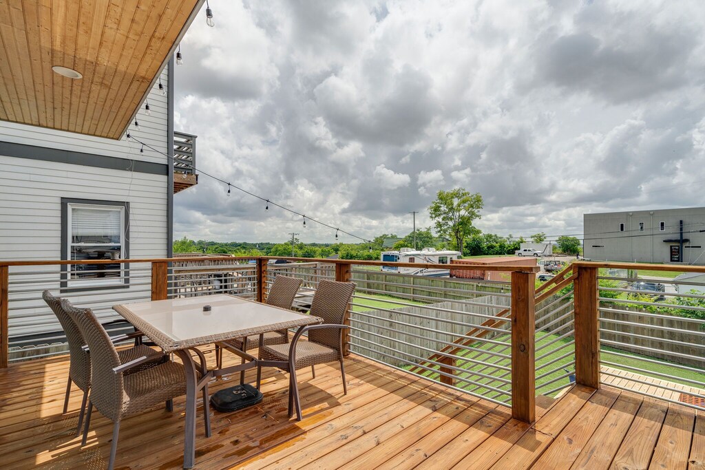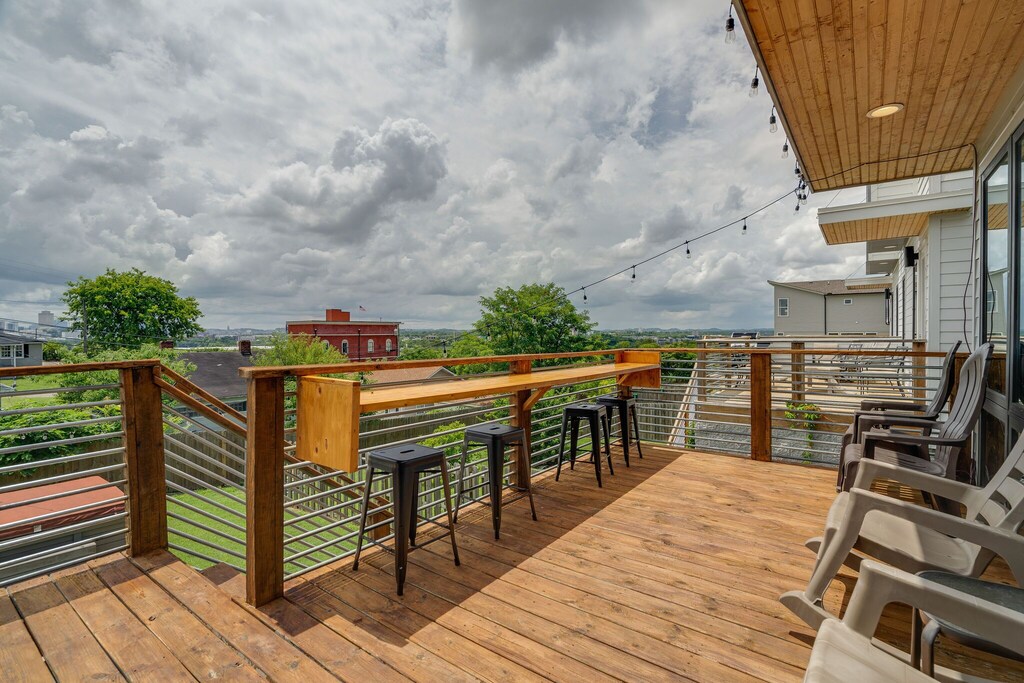 Two spacious 3 bedroom homes with huge rooftop wrap around deck that has amazing views of Nashville. These homes combine to offer 6 bedrooms 5 full baths and 3 half baths. Open floor plans and large windows in the main living area make it feel even larger than it already is. Enjoy a fully stocked kitchen, bar seating, 2 car garages for both homes and plenty of space to park 4-6 other vehicles in the driveway. Less than 10 minutes to anything Nashville has to offer, including Broadway.