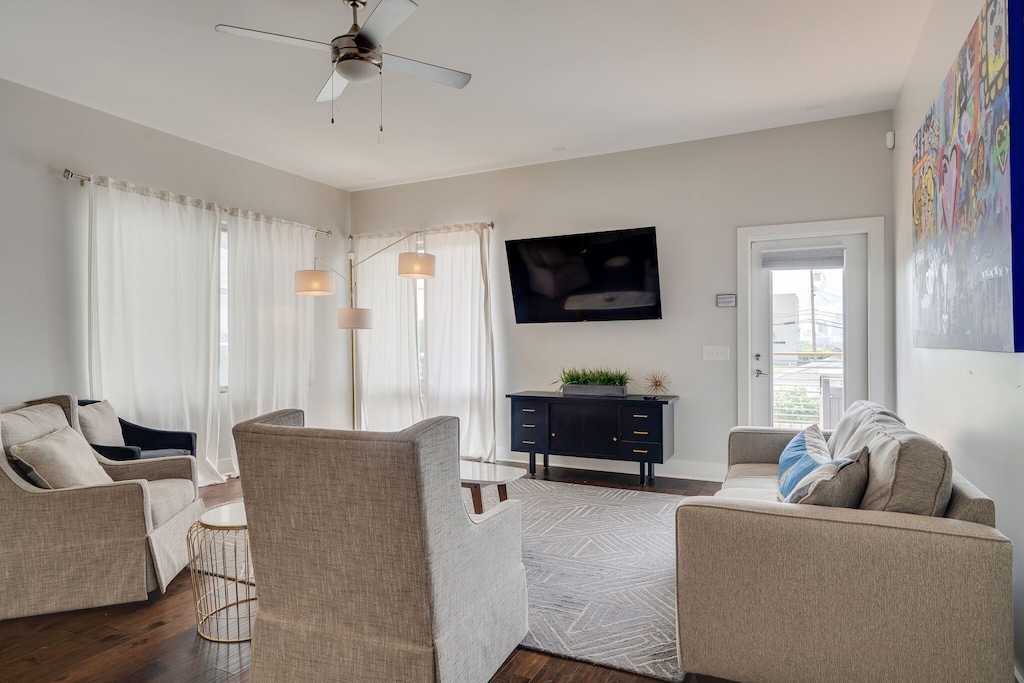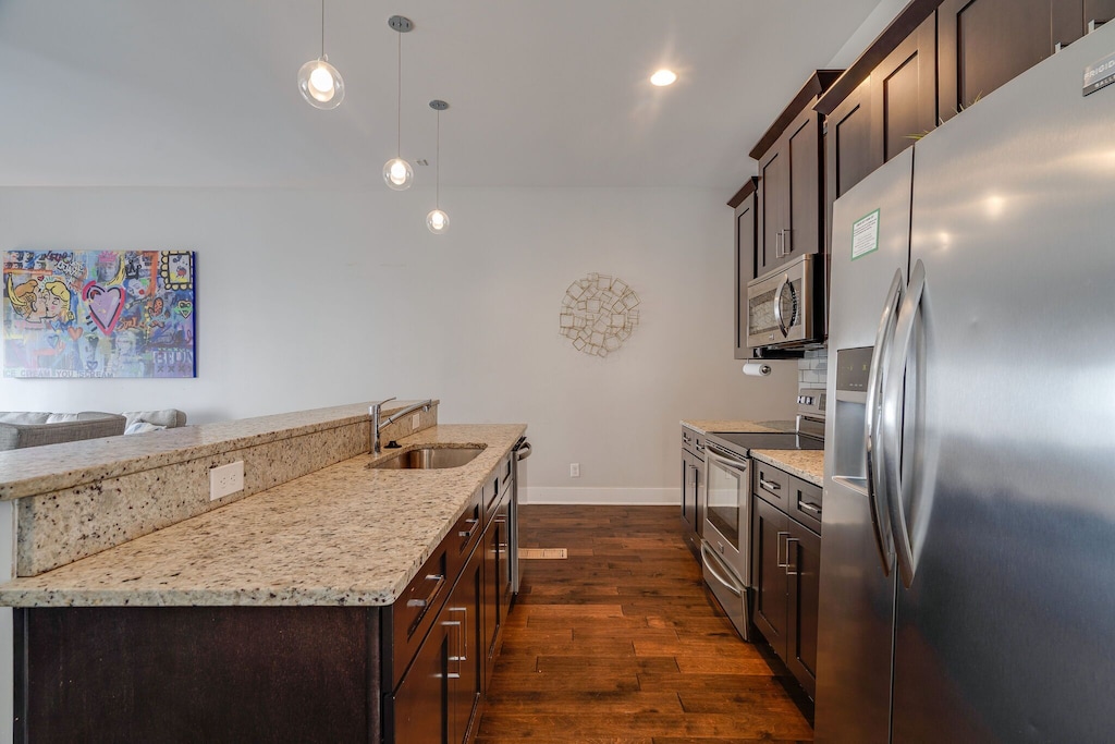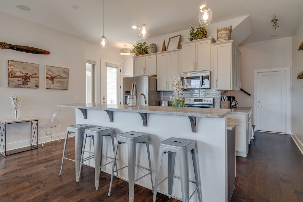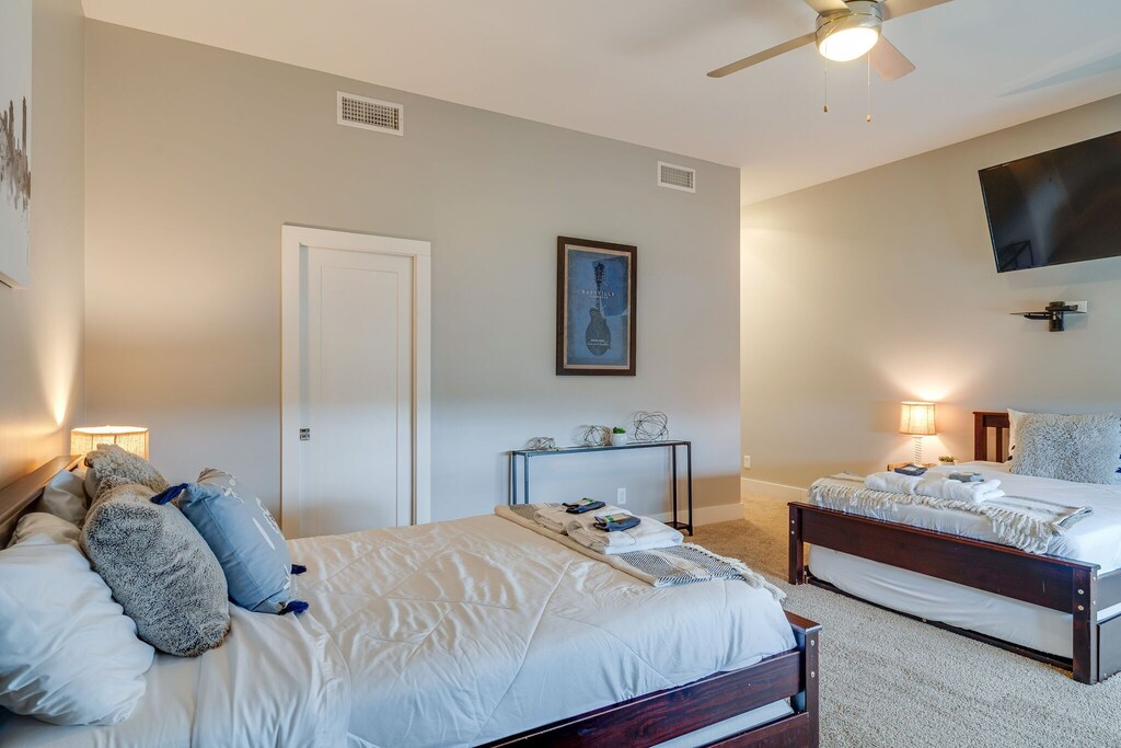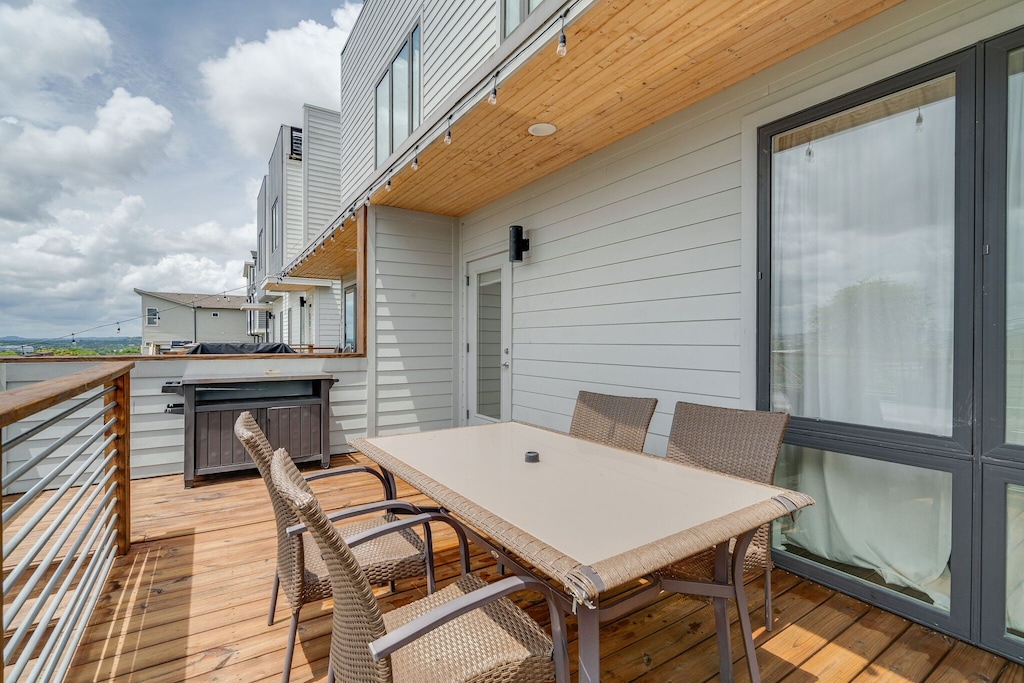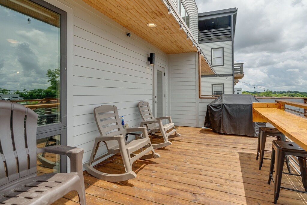 Two spacious 3 bedroom homes with huge rooftop wrap around deck that has amazing views of Nashville. These homes combine to offer 6 bedrooms 5 full baths and 3 half baths. Open floor plans and large windows in the main living area make it feel even larger than it already is. Enjoy a fully stocked kitchen, bar seating, 2 car garages for both homes and plenty of space to park 4-6 other vehicles in the driveway. Less than 10 minutes to anything Nashville has to offer, including Broadway.