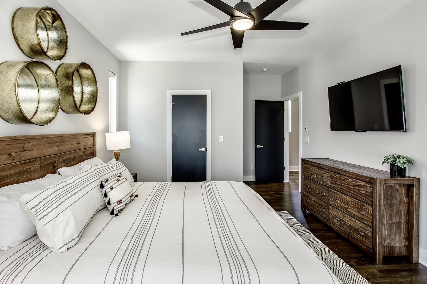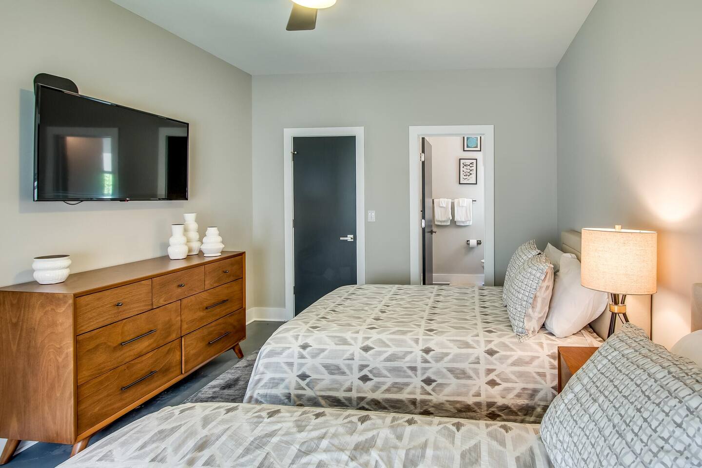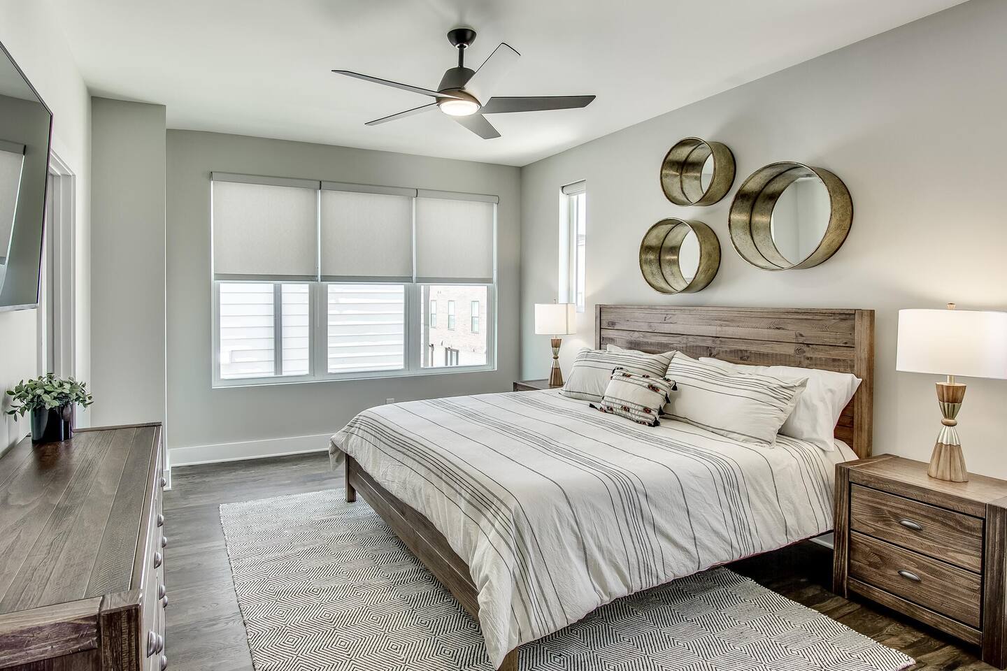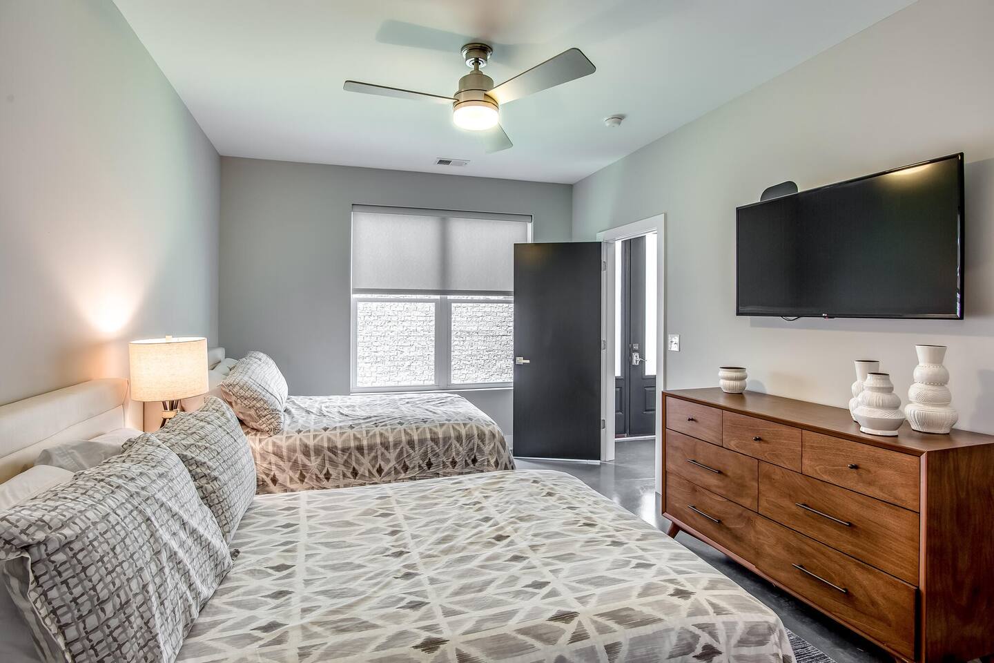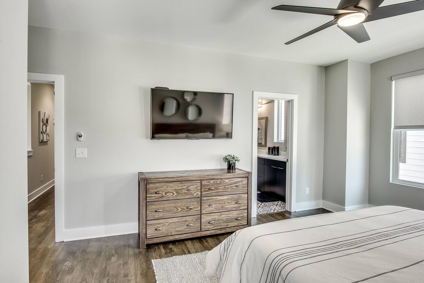 This modern home features 4 bedrooms and 4 full baths, a fully stocked kitchen w/bar seating, a spacious living room, 2 car garage, rooftop patio w/ amazing views. We are walking distance to the popular hotspot known as the Gulch. We are a short $5 Uber/Lyft to downtown, Broadway, Demonbreun St., Bridgestone Arena, & Nissan Stadium. Enjoy comfort with all beds Queen size or King, and plenty of room throughout the home to spread out comfortably. Early bag drop available before check in.