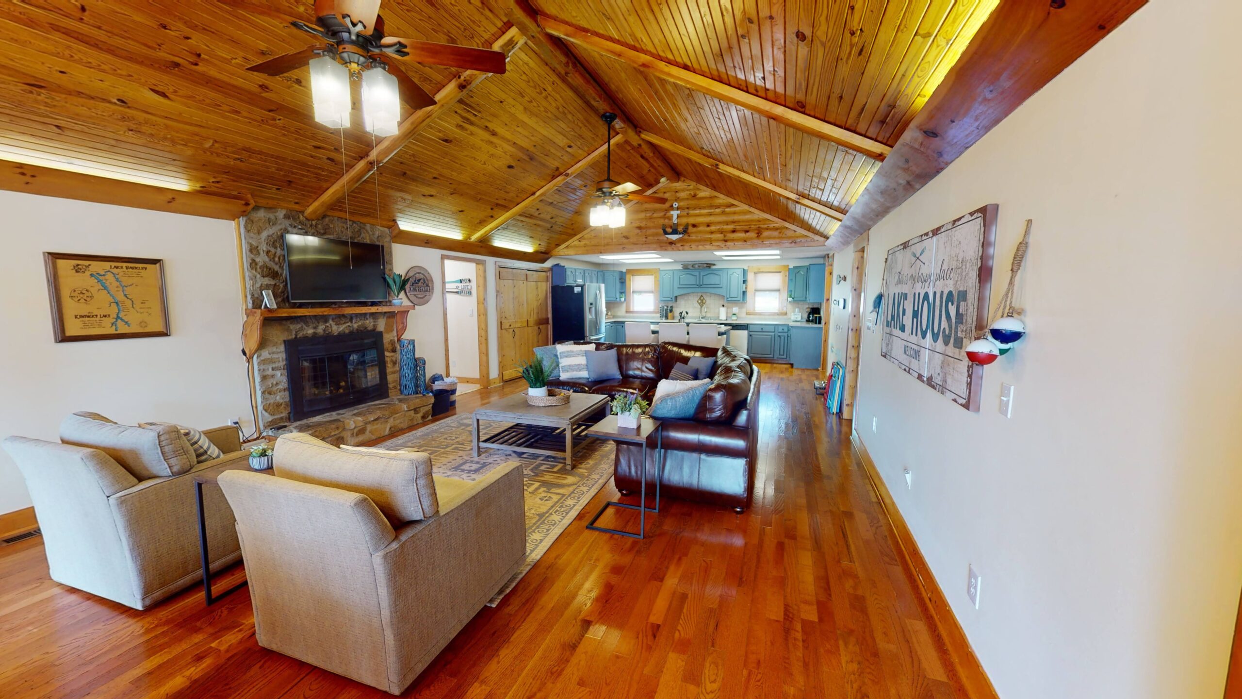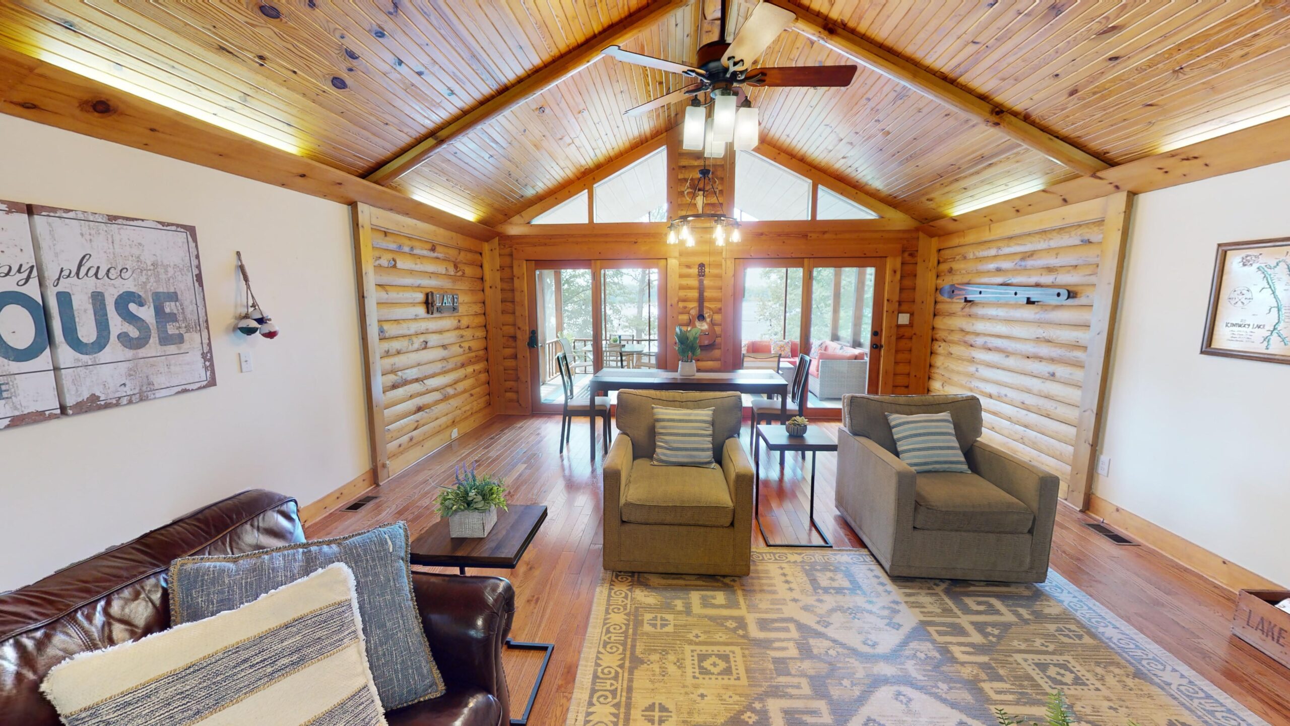 Forget your worries in our lakeside retreat. Zoey’s Place is tucked away from it all in Cadiz, KY. Enjoy our gorgeous open floor plan and vaulted ceilings, with 3 bedrooms and 2 full baths, a massive screened in porch, and private lake access- dock included!