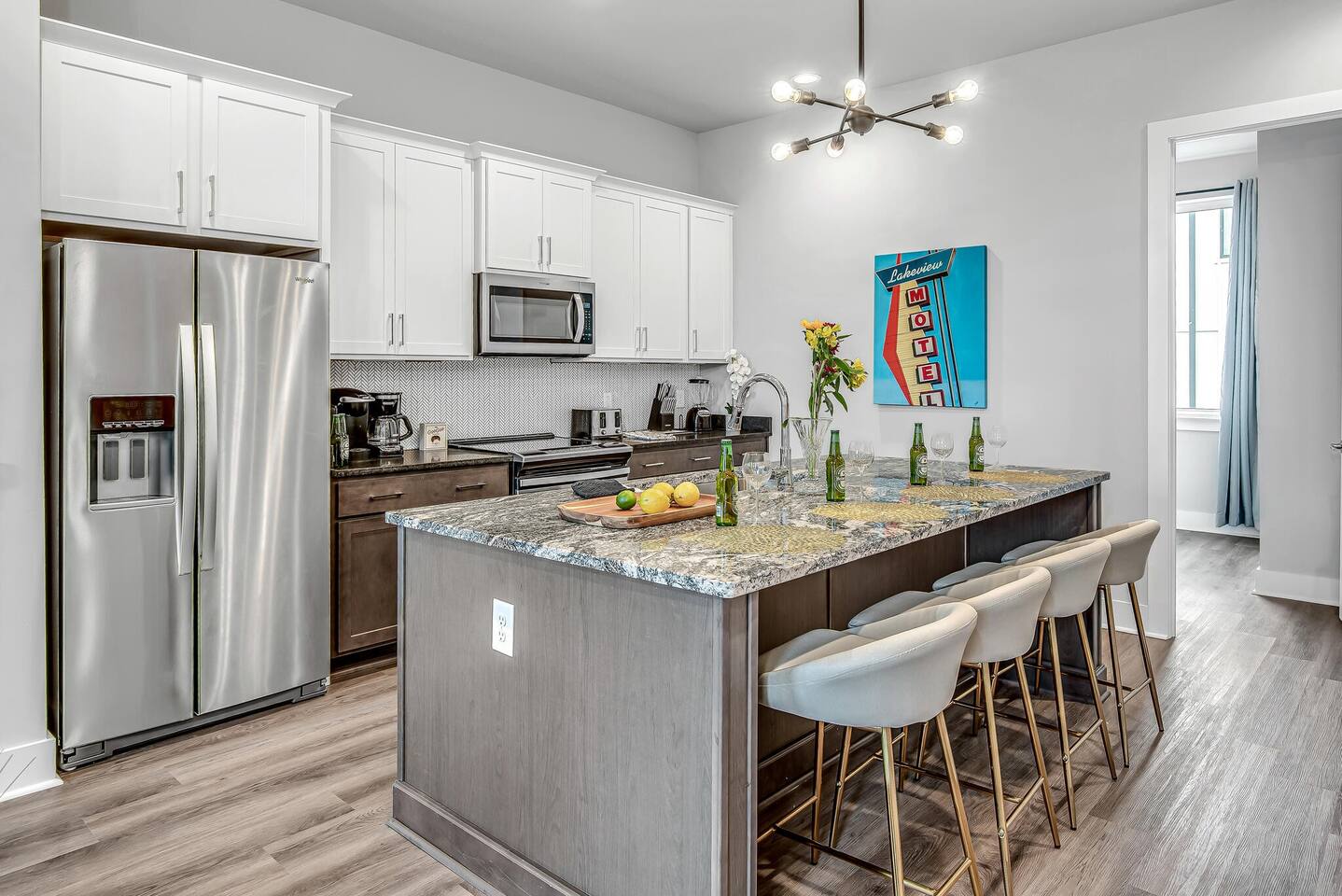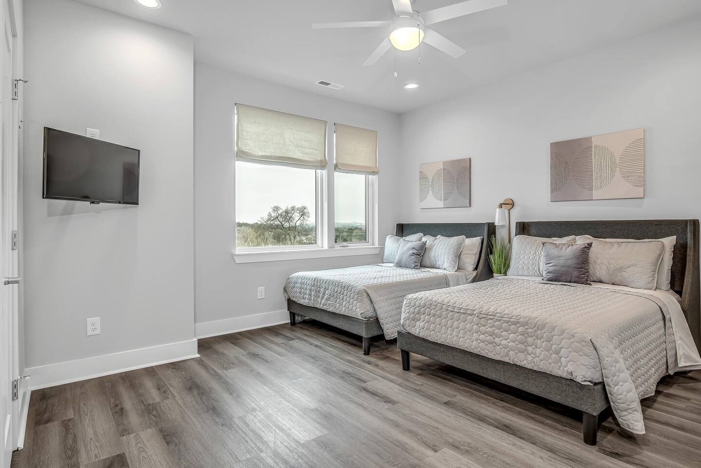 This stylish place to stay is perfect for group trips. Boasting 4 bedrooms with ensuite bathrooms, fully equipped kitchen with massive island and bar seating, rooftop patio with gas firepit, and a 2 car garage. Enjoy the comfort of home away from home in our amazing city. Vacationing in Nashville doesn’t get better than this!