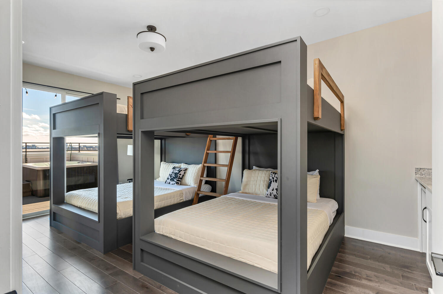 Enjoy the perfect home away from home in our NEWLY BUILT 4 bedroom house in Nashville, Tennessee. Our spacious home is ideal space for your next vacation or business trip. Enjoy skyline views with a rooftop hot tub. The home is about 20 minutes from Nashville’s International Airport. The home is a quick Uber/Lyft to all the Honky Tonks and other hotspots downtown, so you can immerse yourself in the culture of Music City. Book your stay today and discover why everyone’s visiting Music City! Thoughtfully designed for large groups to spread out and enjoy, the home features: