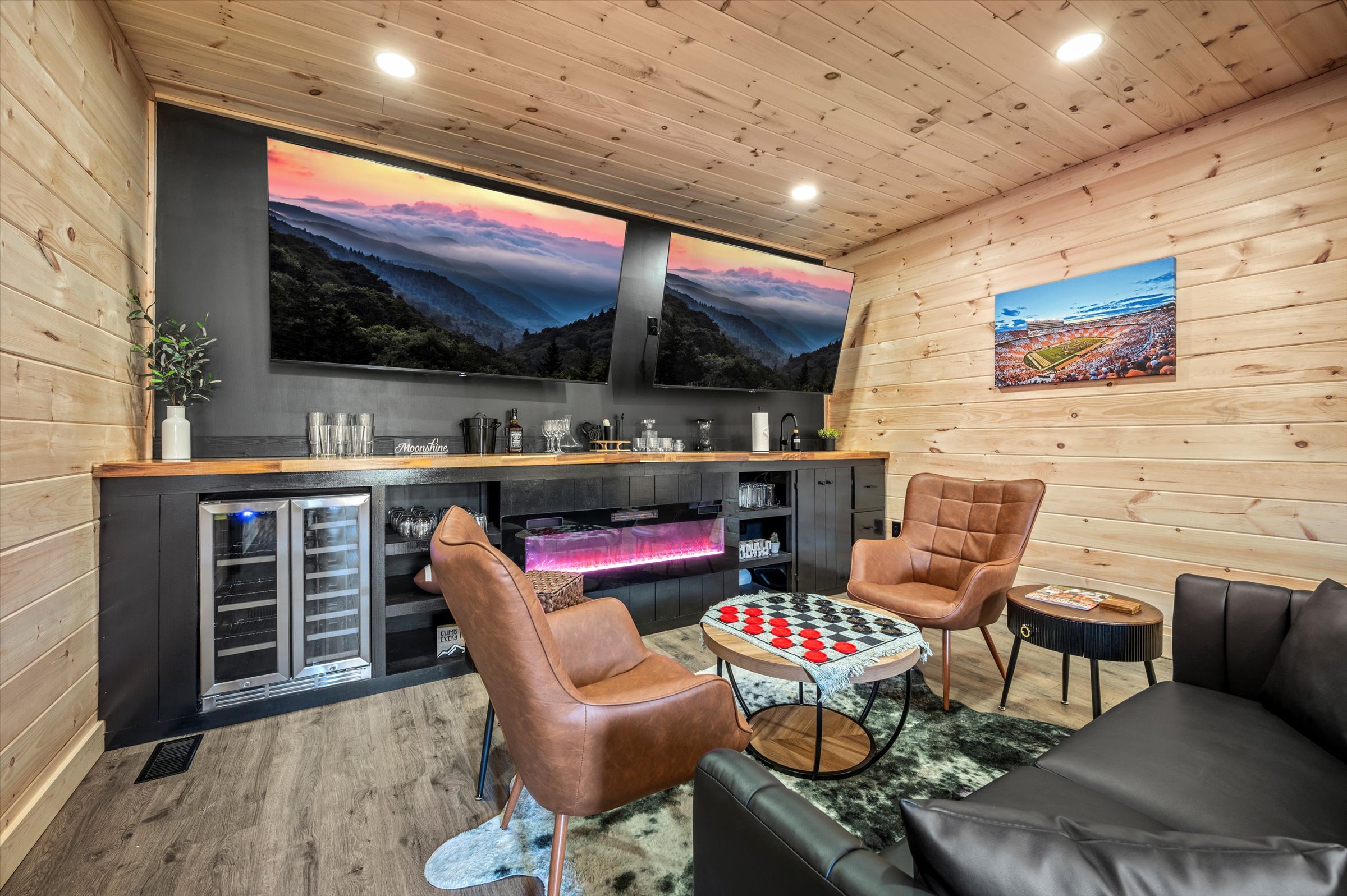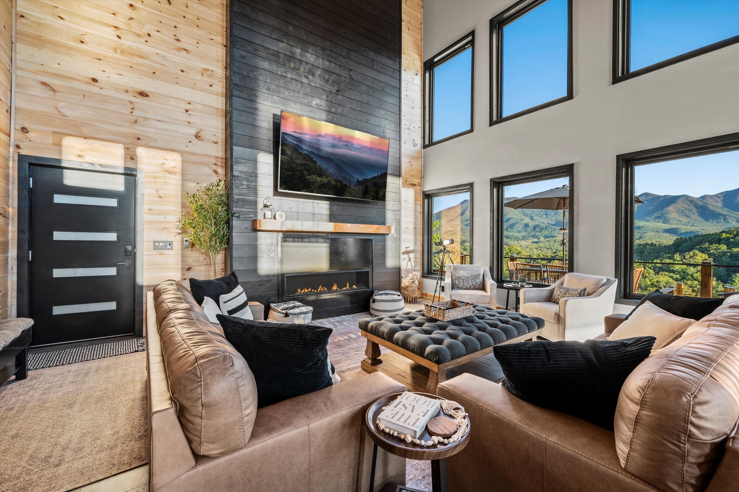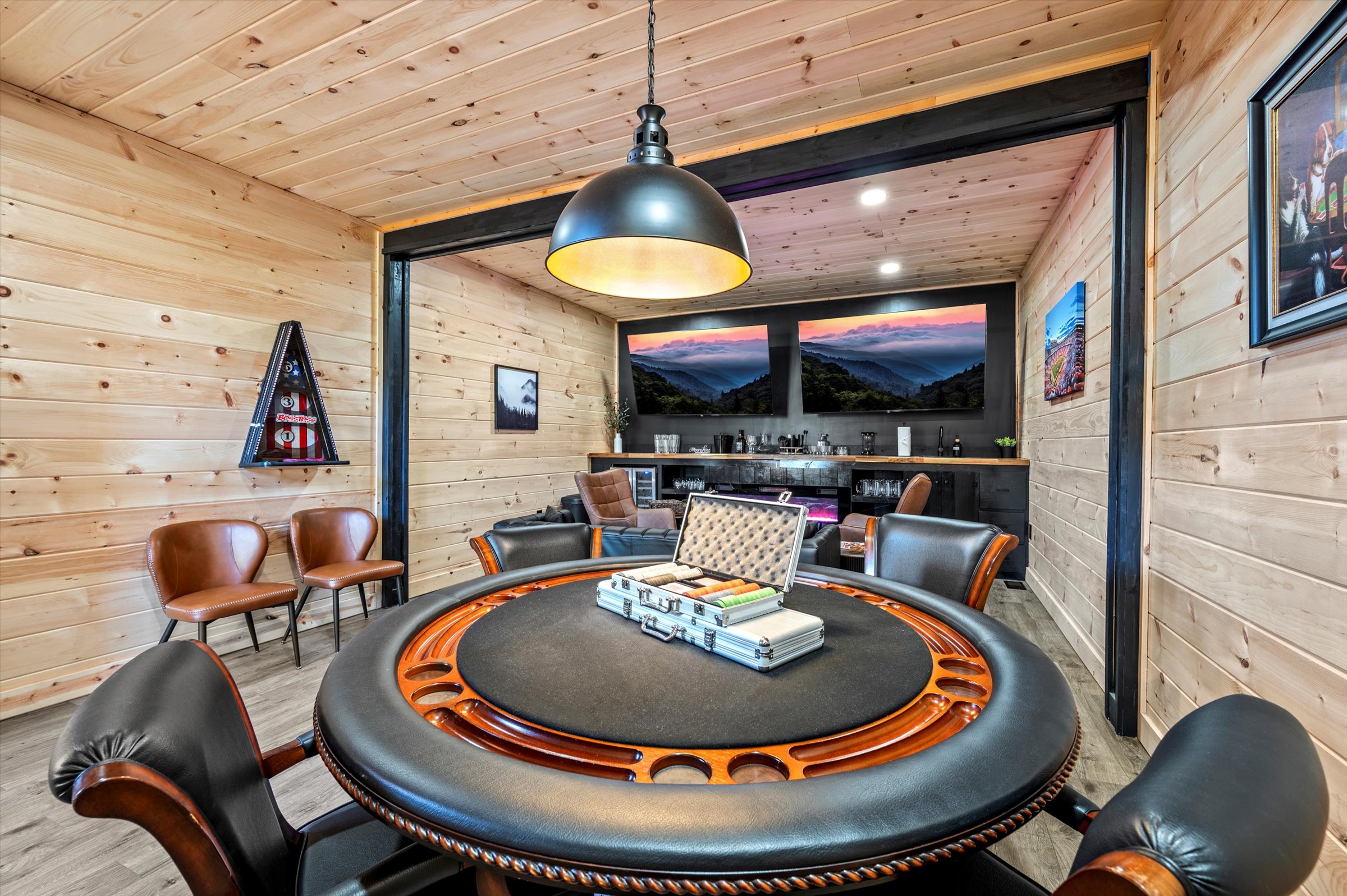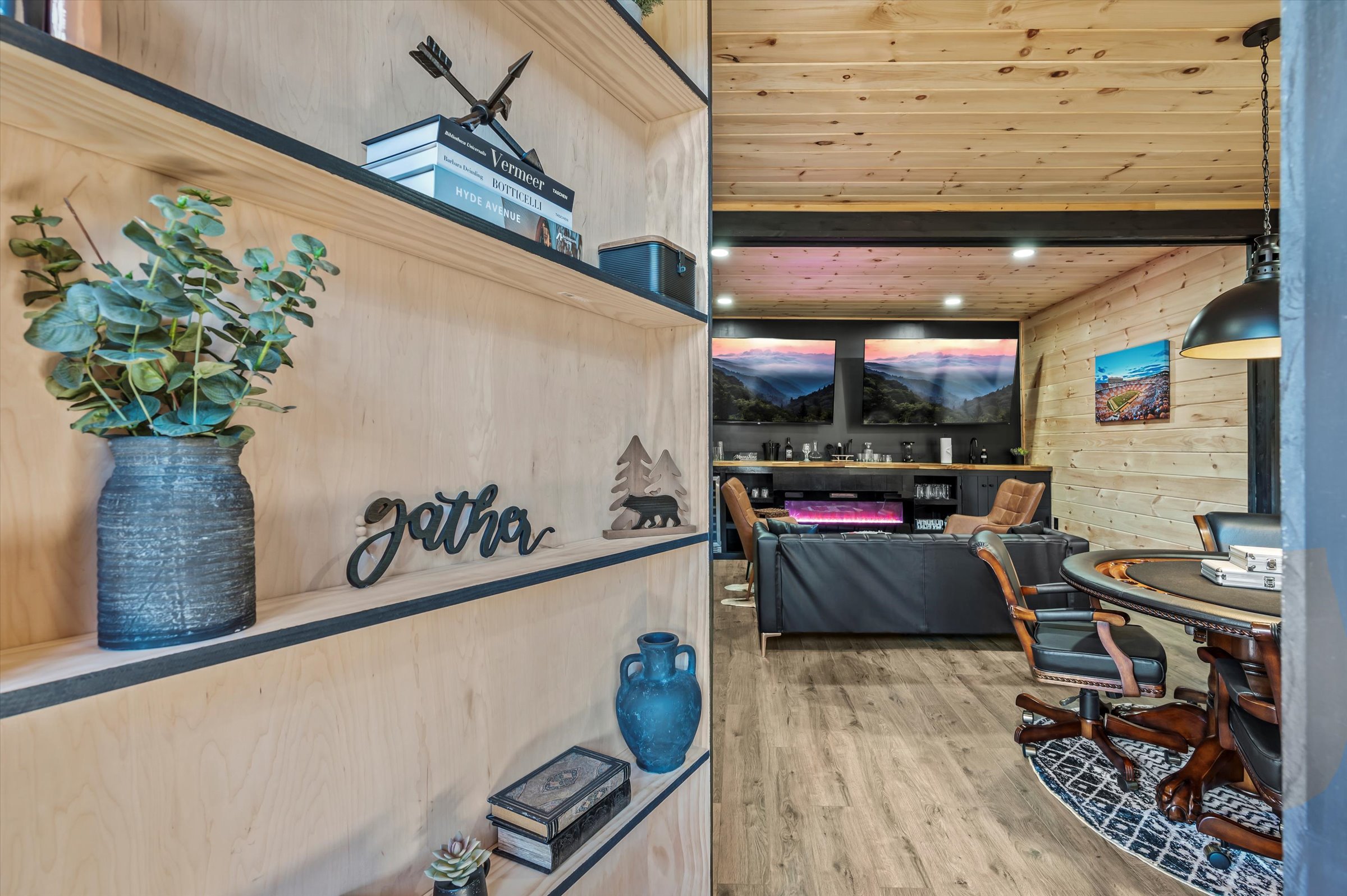 Nestled high in the mountains of Cosby, TN, this brand-new 3,300 sq ft cabin is a breathtaking retreat for those seeking the perfect getaway. With stunning panoramic views, the cabin boasts luxurious amenities including an infinity pool and hot tub for ultimate relaxation. Enjoy movie nights in the state-of-the-art theater room or unwind in the unique secret speakeasy room. Accommodating up to 22 guests, this spacious haven is ideal for family reunions or group gatherings. Plus, with downtown Gatlinburg just a short drive away, you can enjoy the perfect blend of serene nature and vibrant city life. Experience mountain living at its finest!