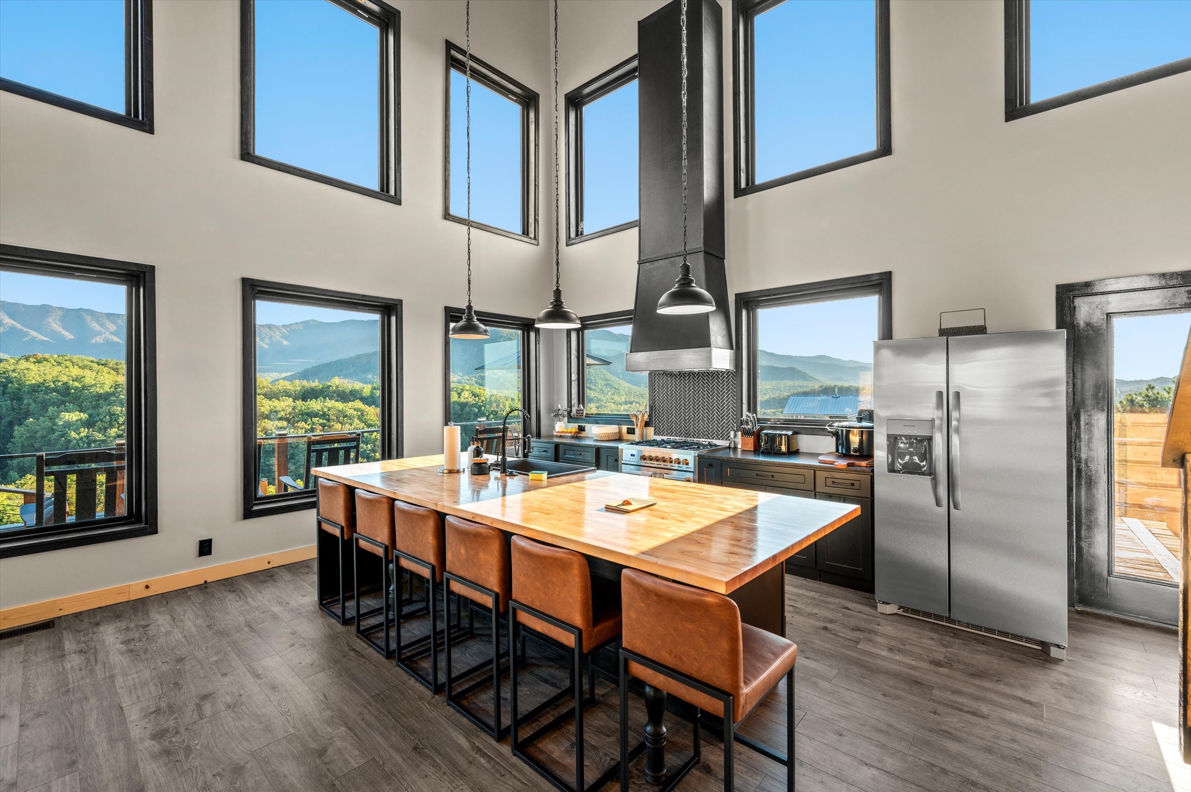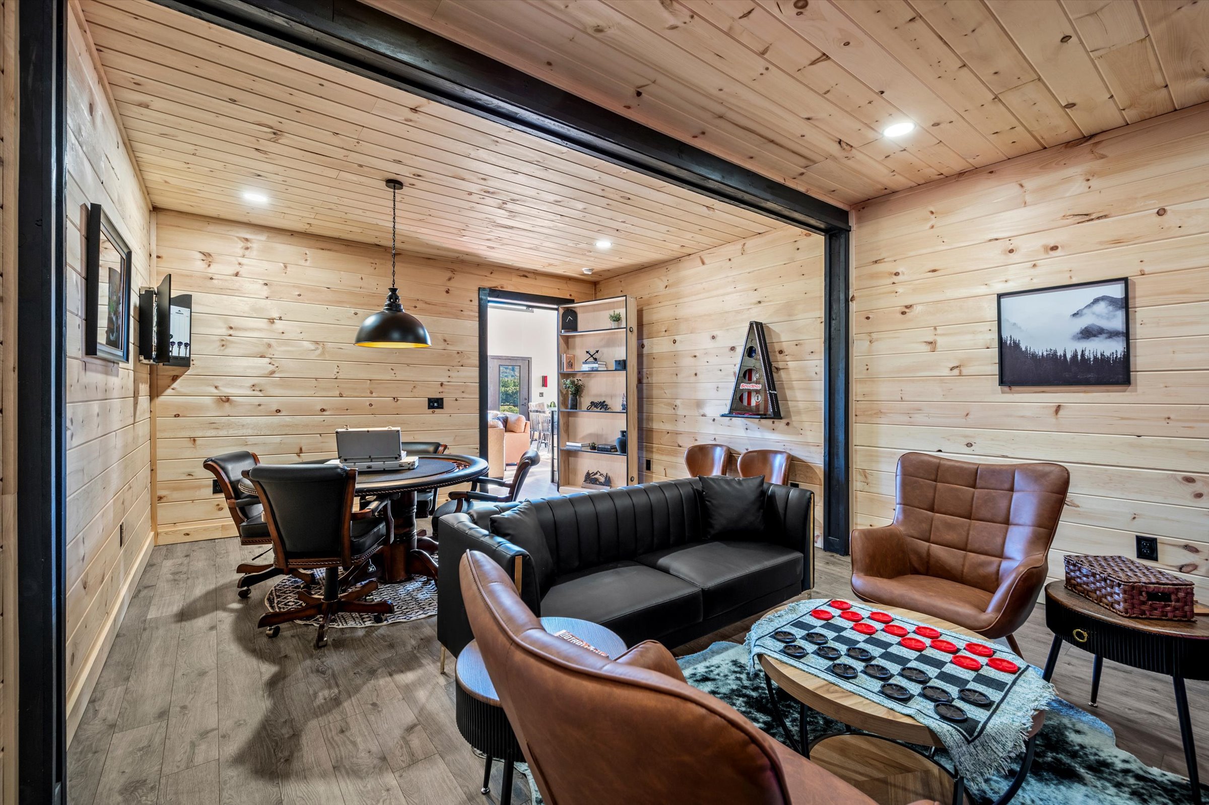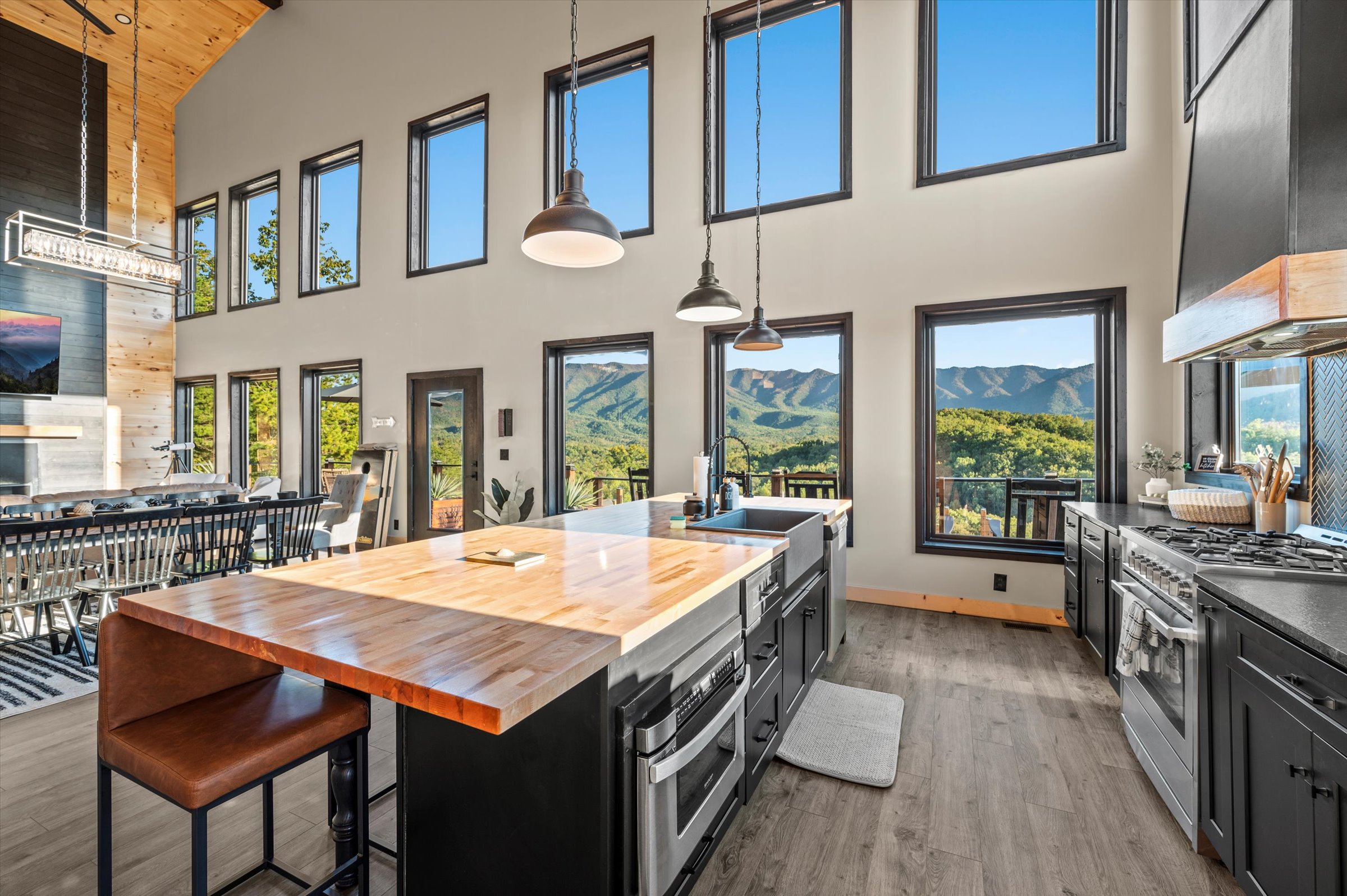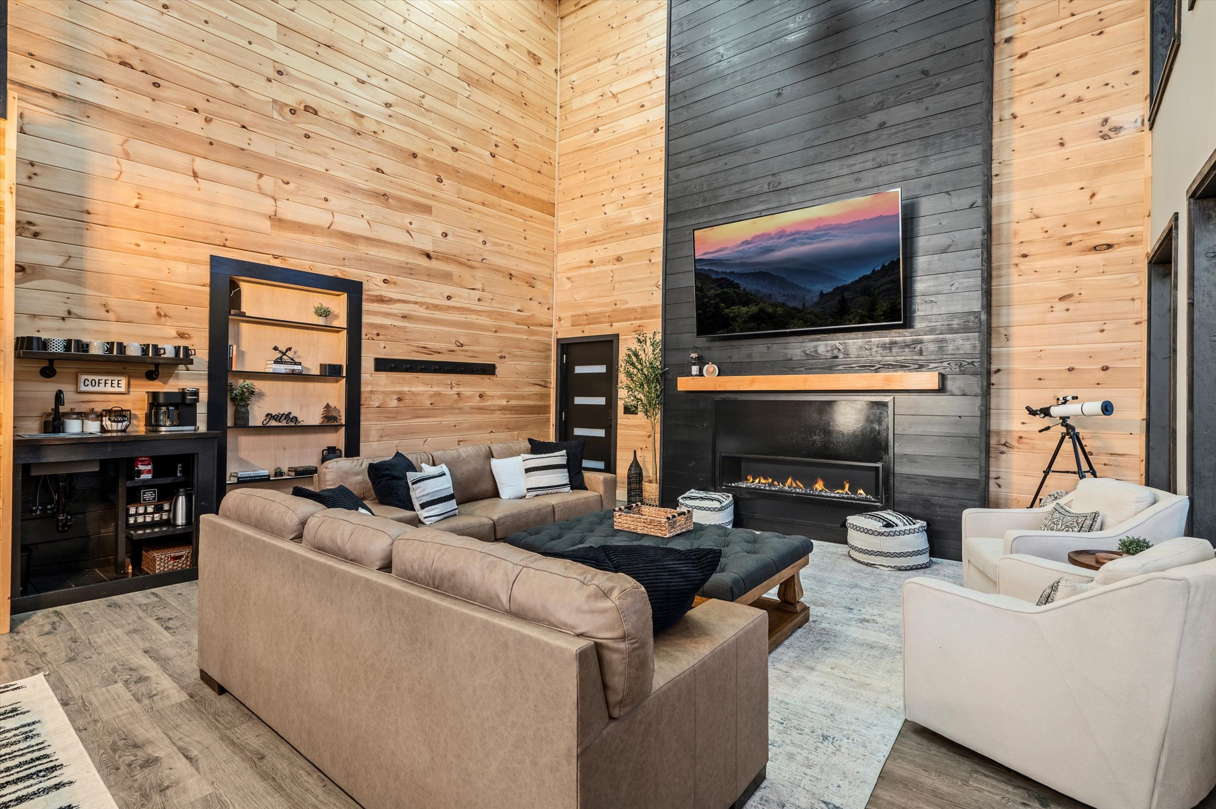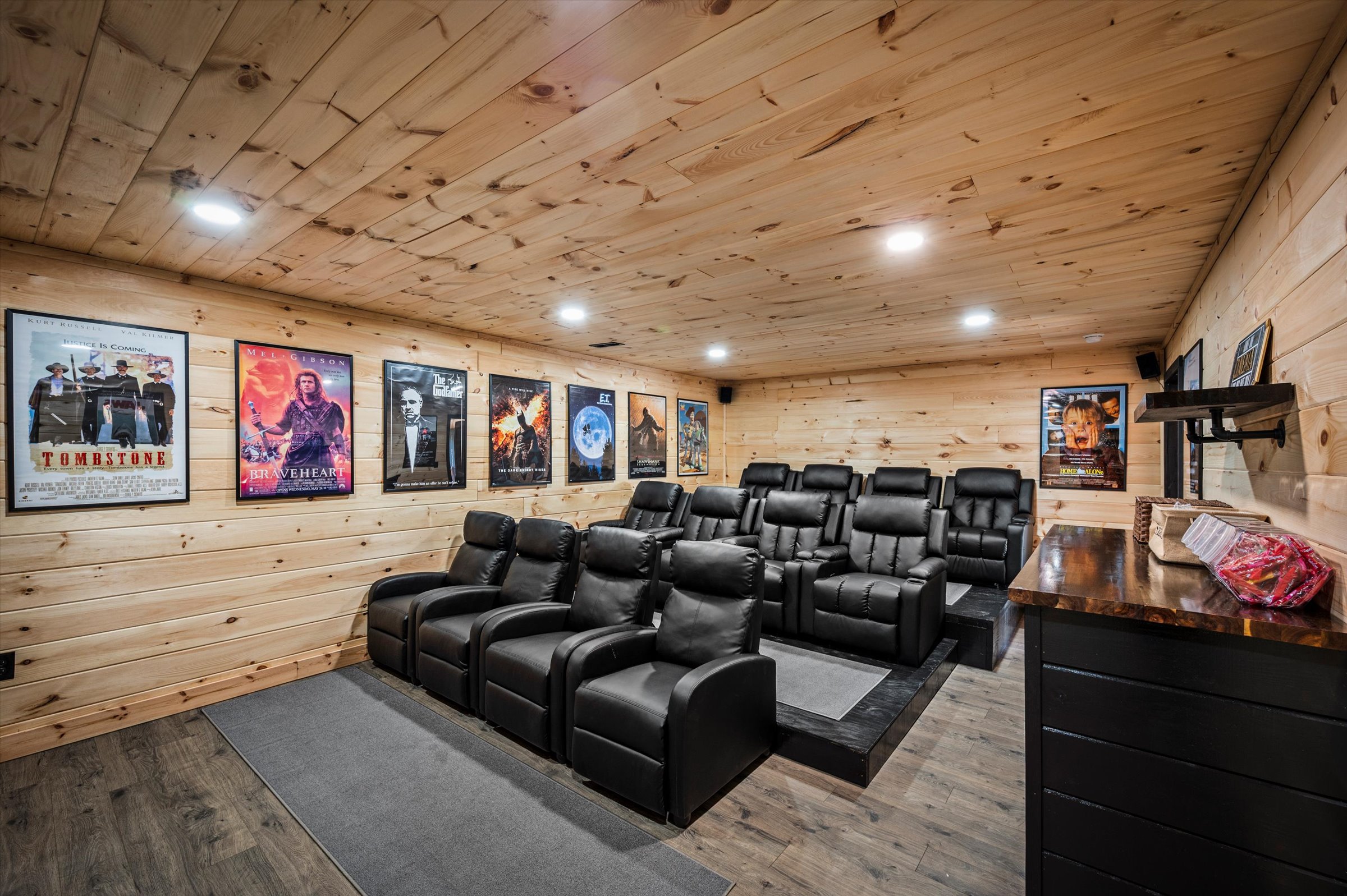 Nestled high in the mountains of Cosby, TN, this brand-new 3,300 sq ft cabin is a breathtaking retreat for those seeking the perfect getaway. With stunning panoramic views, the cabin boasts luxurious amenities including an infinity pool and hot tub for ultimate relaxation. Enjoy movie nights in the state-of-the-art theater room or unwind in the unique secret speakeasy room. Accommodating up to 22 guests, this spacious haven is ideal for family reunions or group gatherings. Plus, with downtown Gatlinburg just a short drive away, you can enjoy the perfect blend of serene nature and vibrant city life. Experience mountain living at its finest!