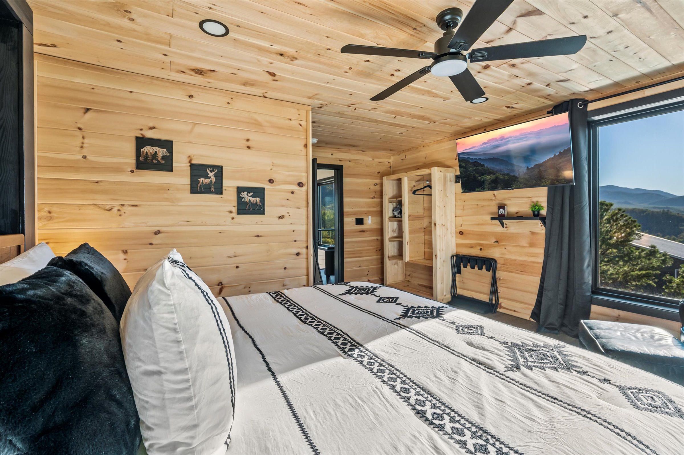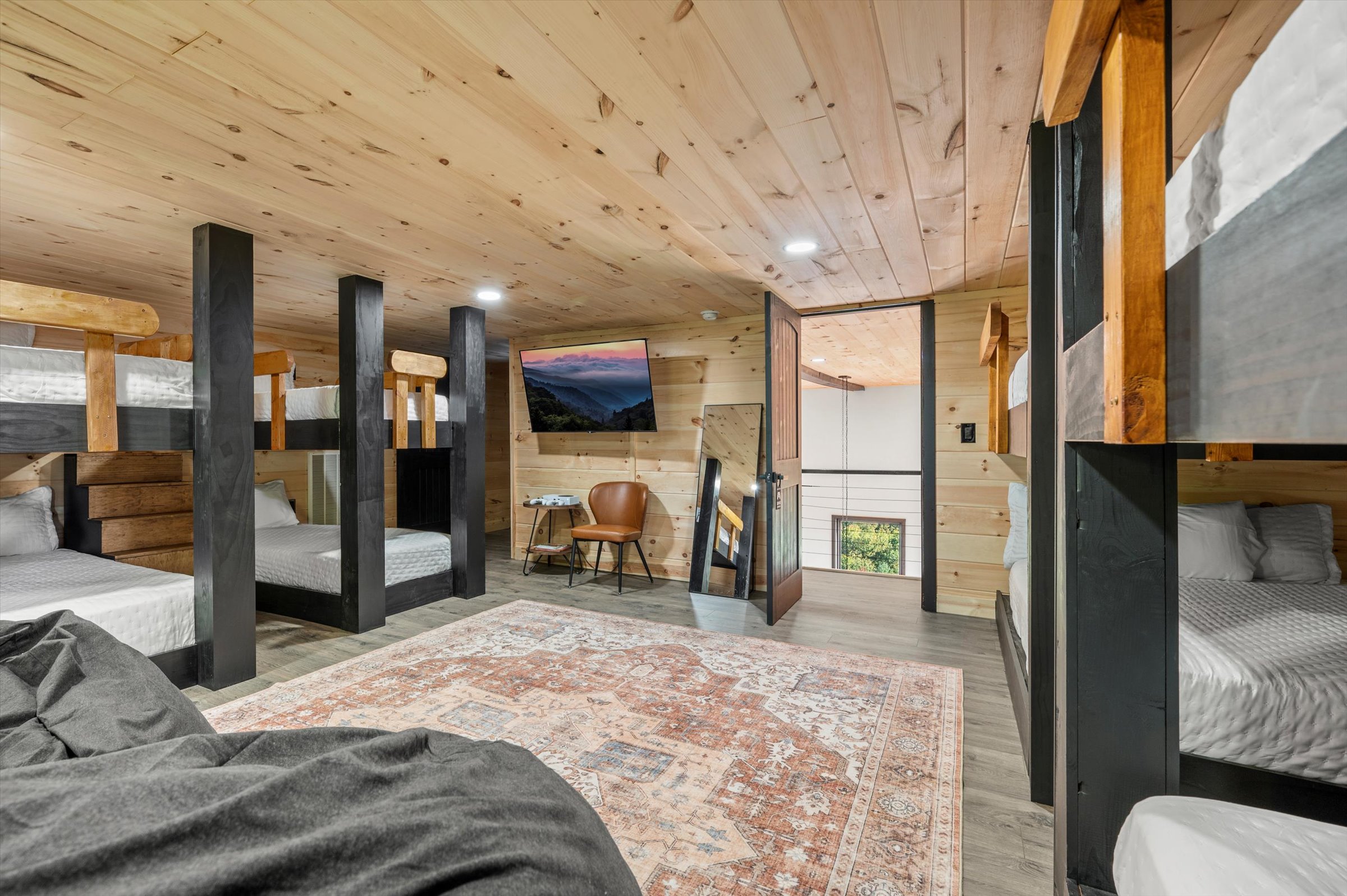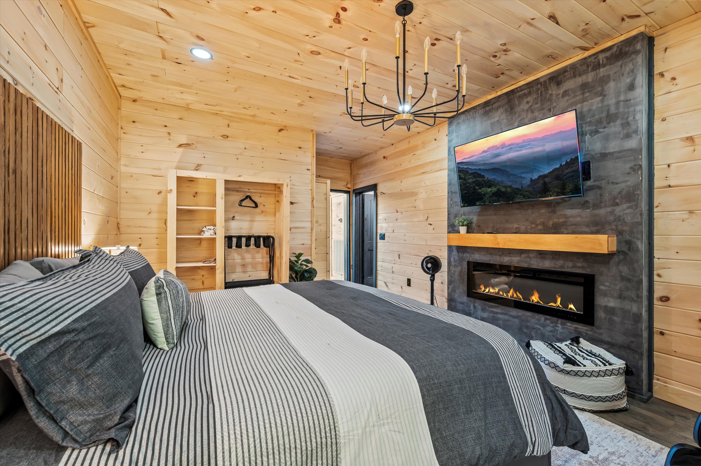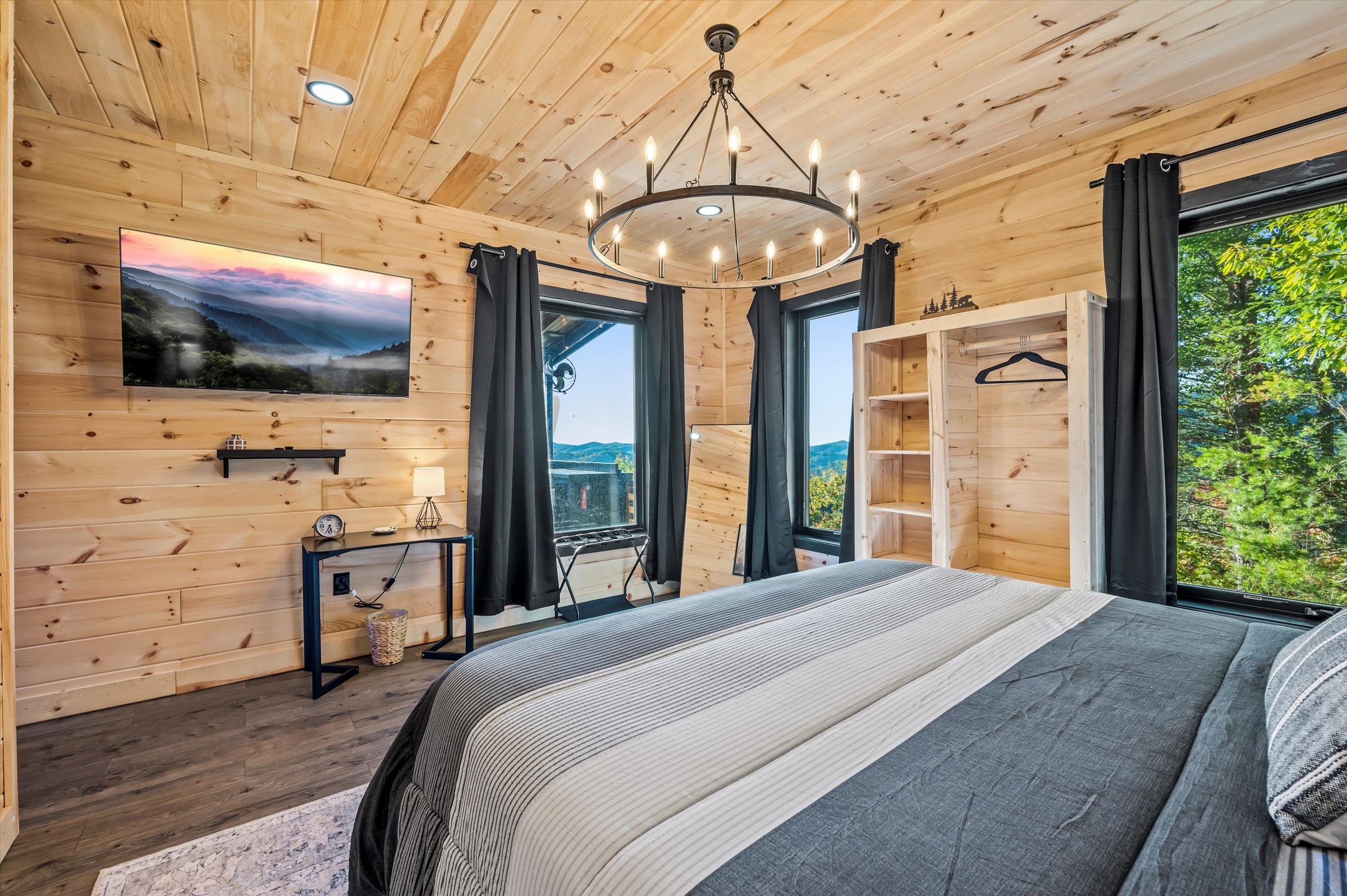 Nestled high in the mountains of Cosby, TN, this brand-new 3,300 sq ft cabin is a breathtaking retreat for those seeking the perfect getaway. With stunning panoramic views, the cabin boasts luxurious amenities including an infinity pool and hot tub for ultimate relaxation. Enjoy movie nights in the state-of-the-art theater room or unwind in the unique secret speakeasy room. Accommodating up to 22 guests, this spacious haven is ideal for family reunions or group gatherings. Plus, with downtown Gatlinburg just a short drive away, you can enjoy the perfect blend of serene nature and vibrant city life. Experience mountain living at its finest!
