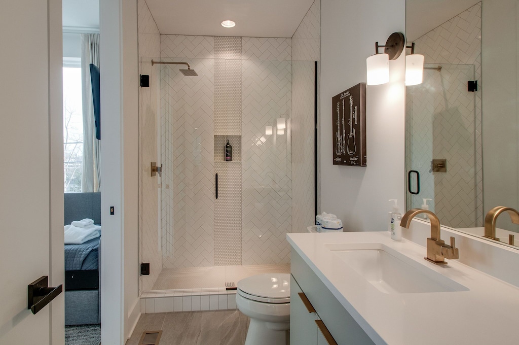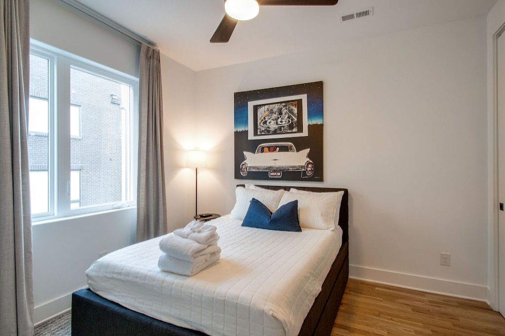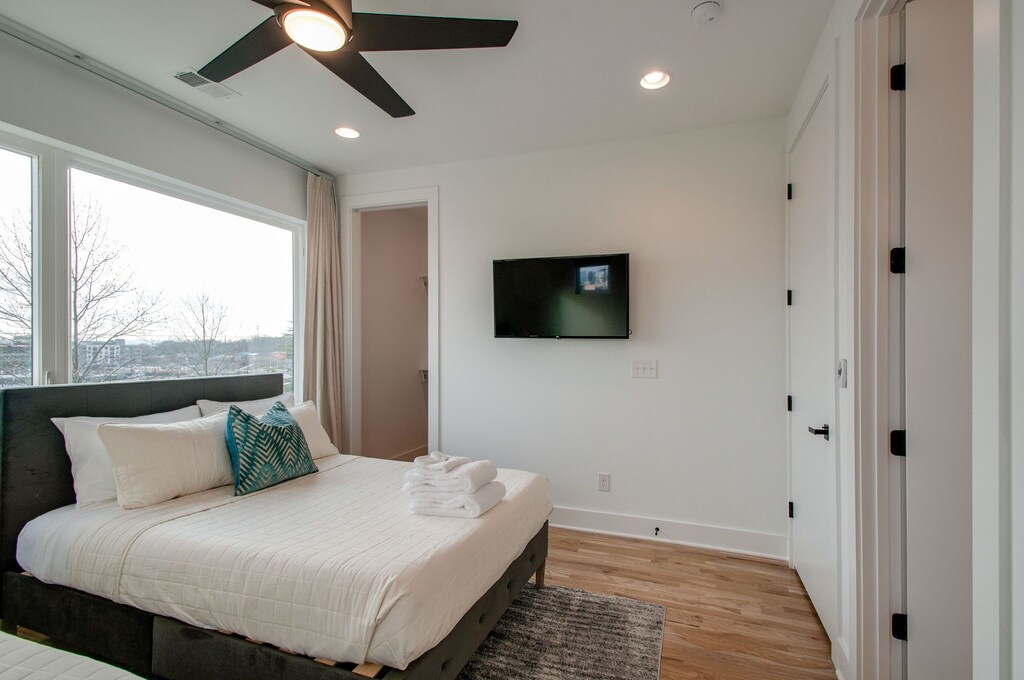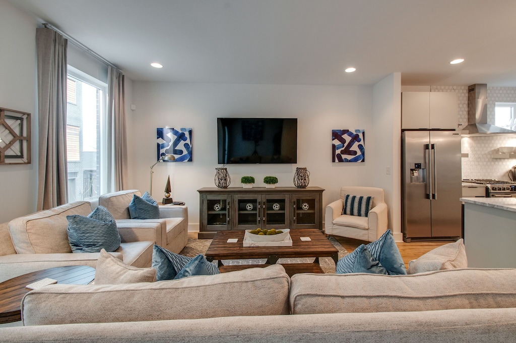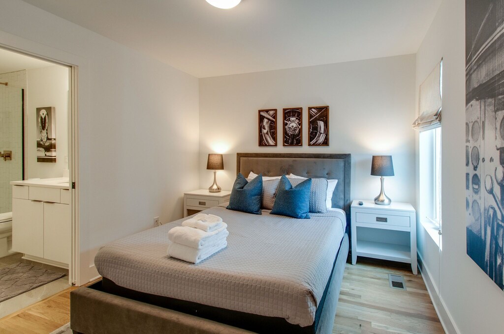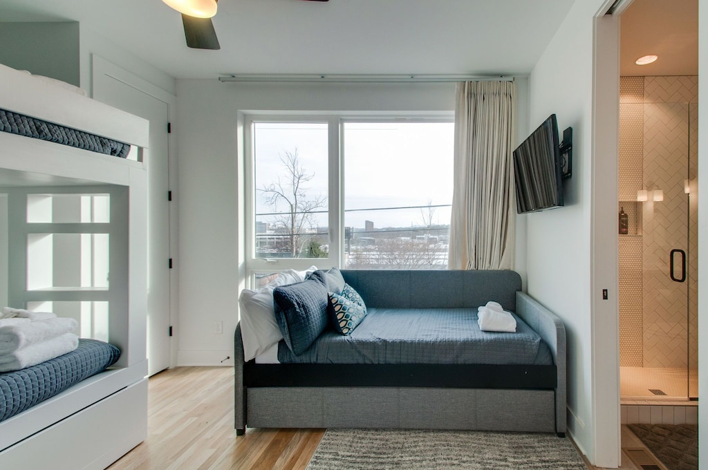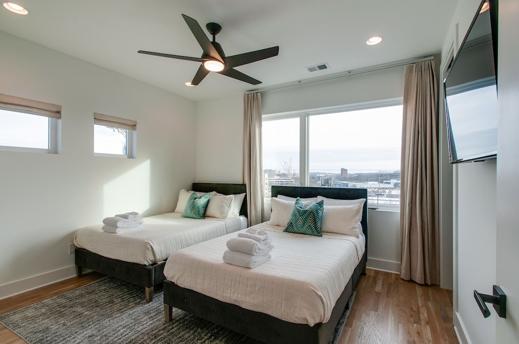 Beautifully designed 4 bedroom 4 bath modern home with tons of space for your group to spread out. Two tiered rooftop deck with one of the best views of downtown that Nashville has to offer. Enjoy a fully stocked kitchen, with bar seating and a spacious open floor plan. We are a short $5-8 Uber/Lyft to Broadway, Demonbreun St., Bridgestone Arena, Nissan Stadium, and tons more. Enjoy all that Nashville has to offer while staying in this lovely home.