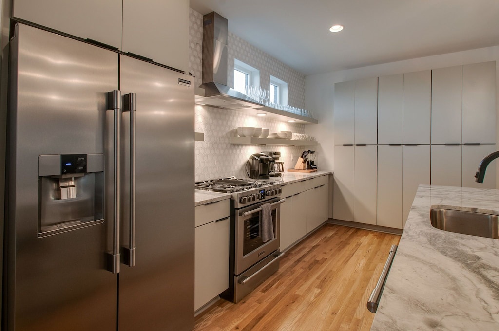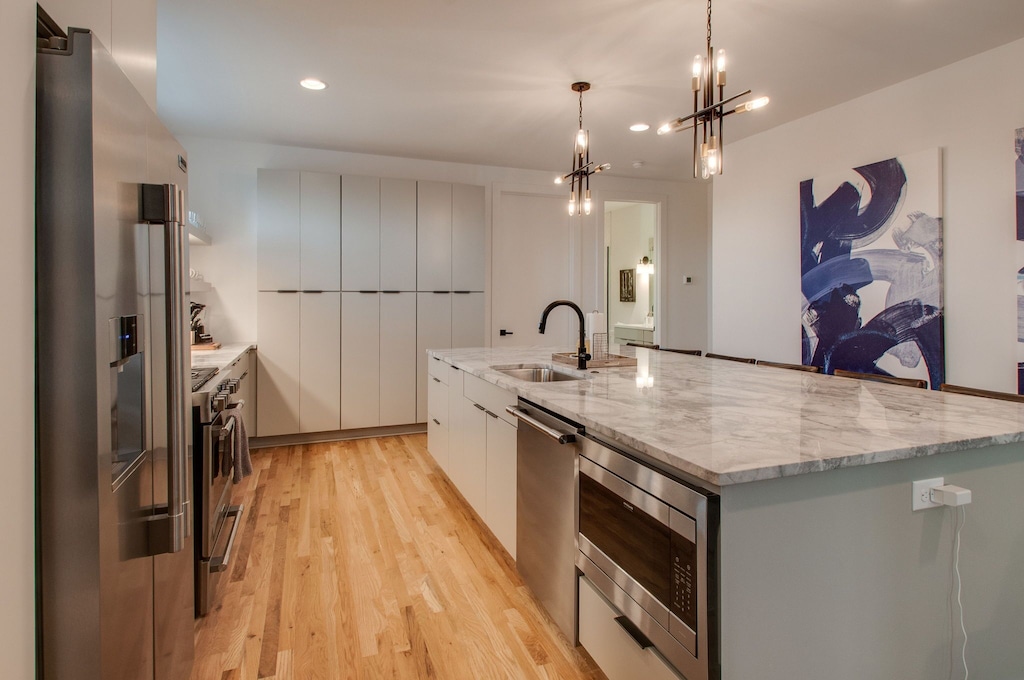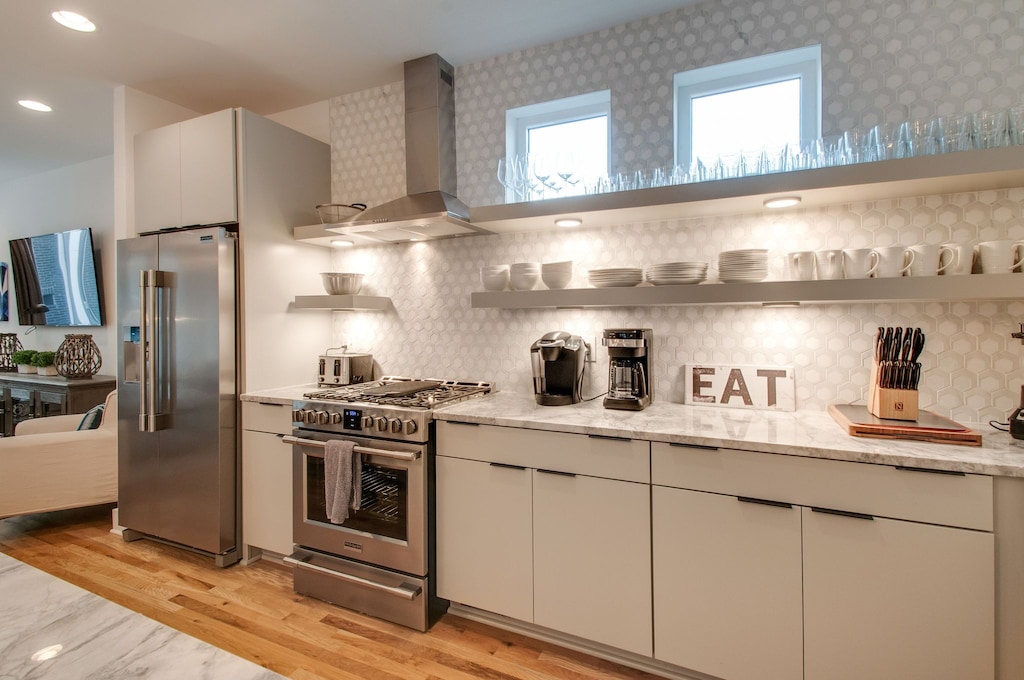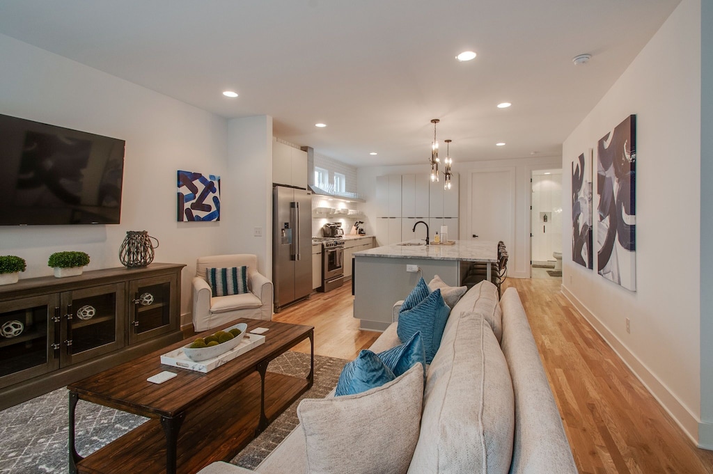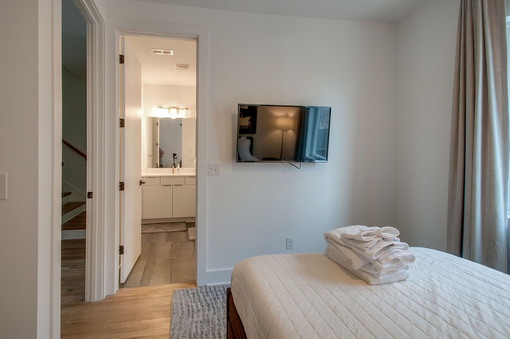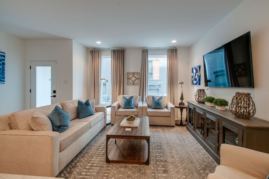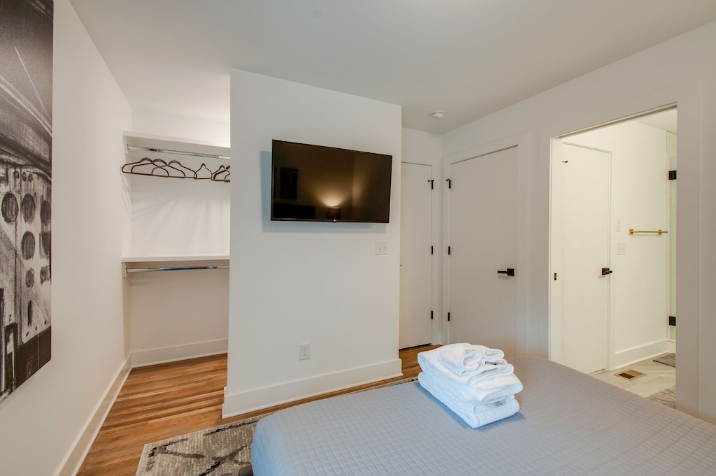 Beautifully designed 4 bedroom 4 bath modern home with tons of space for your group to spread out. Two tiered rooftop deck with one of the best views of downtown that Nashville has to offer. Enjoy a fully stocked kitchen, with bar seating and a spacious open floor plan. We are a short $5-8 Uber/Lyft to Broadway, Demonbreun St., Bridgestone Arena, Nissan Stadium, and tons more. Enjoy all that Nashville has to offer while staying in this lovely home.
