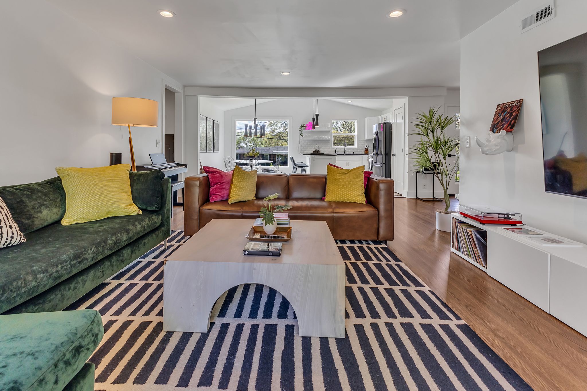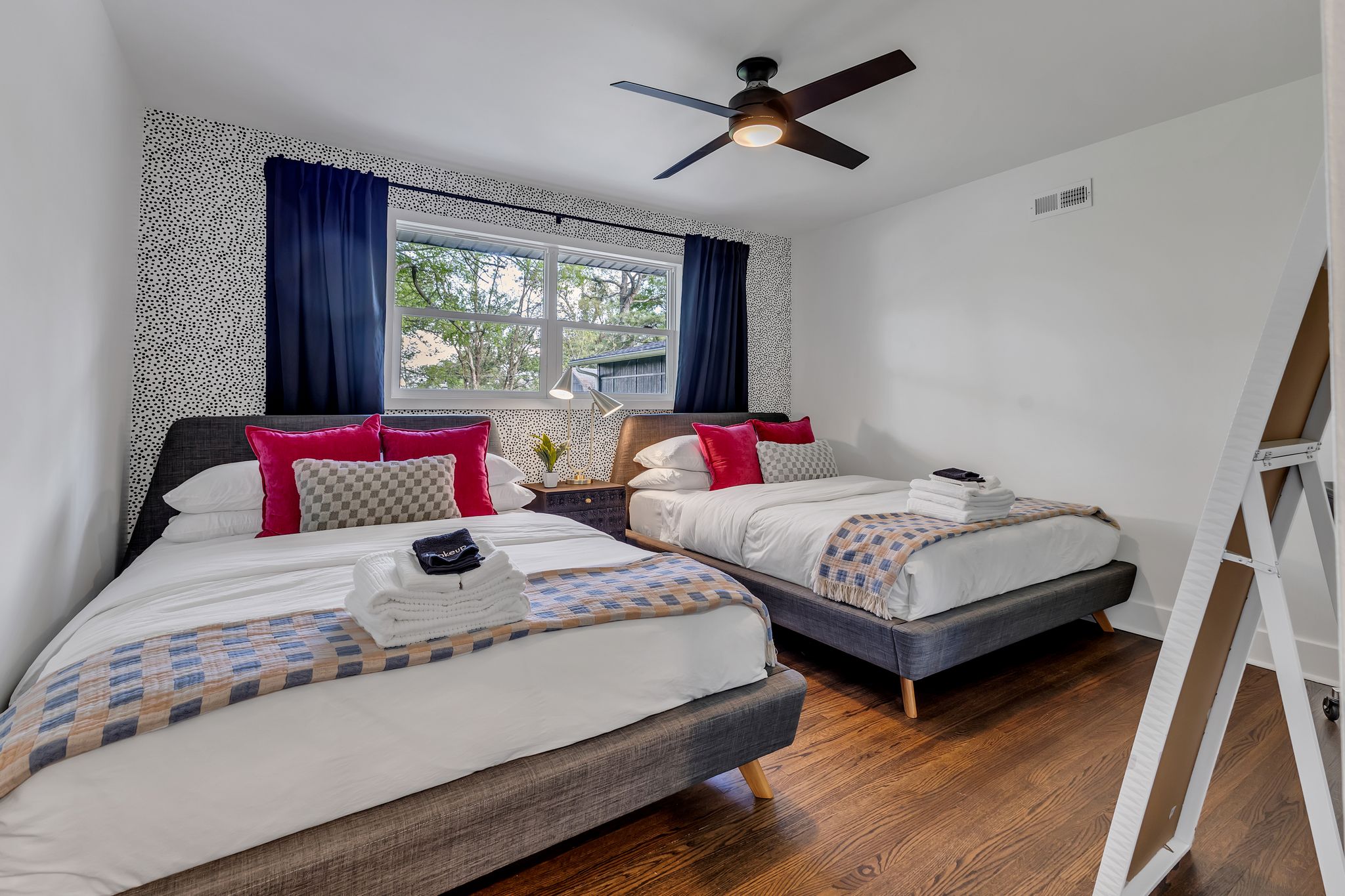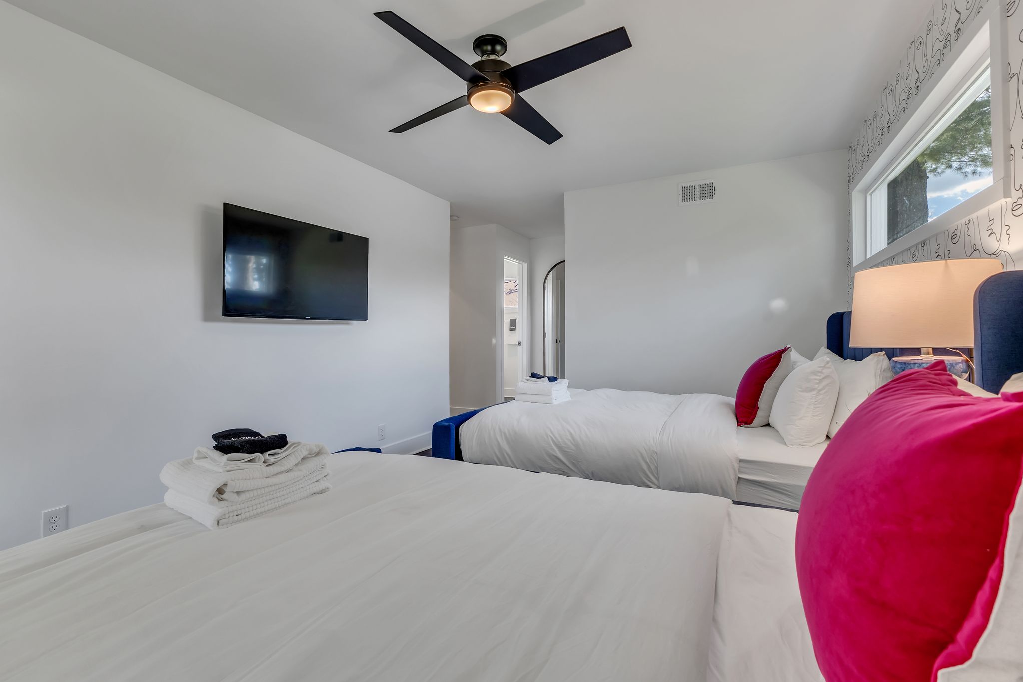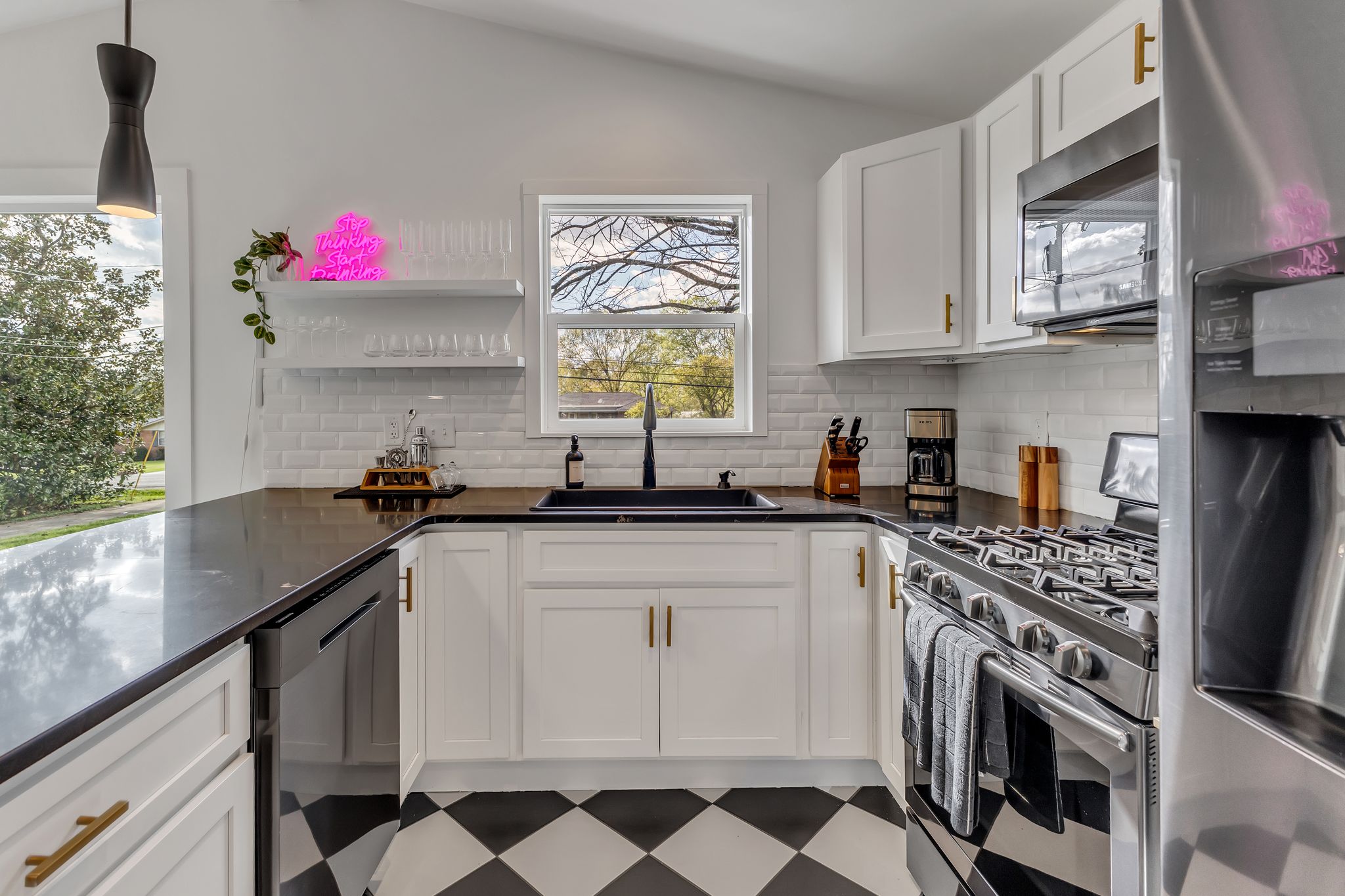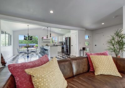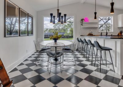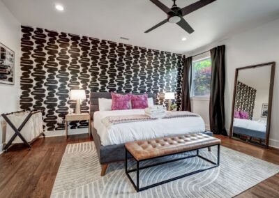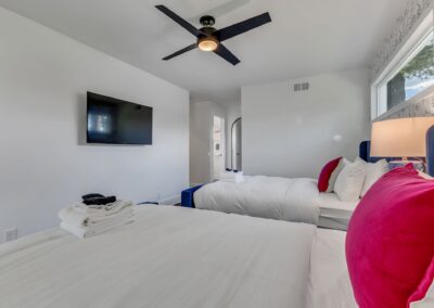 Inside, our 2,200 sq ft home boasts four bedrooms and three full bathrooms, providing ample space for you and your guests. The decor is eclectic and fun, with unique touches that are sure to make your stay unforgettable. The fully stocked kitchen and dining room make entertaining a breeze, and you can enjoy delicious meals with your loved ones in the comfort of your vacation home.