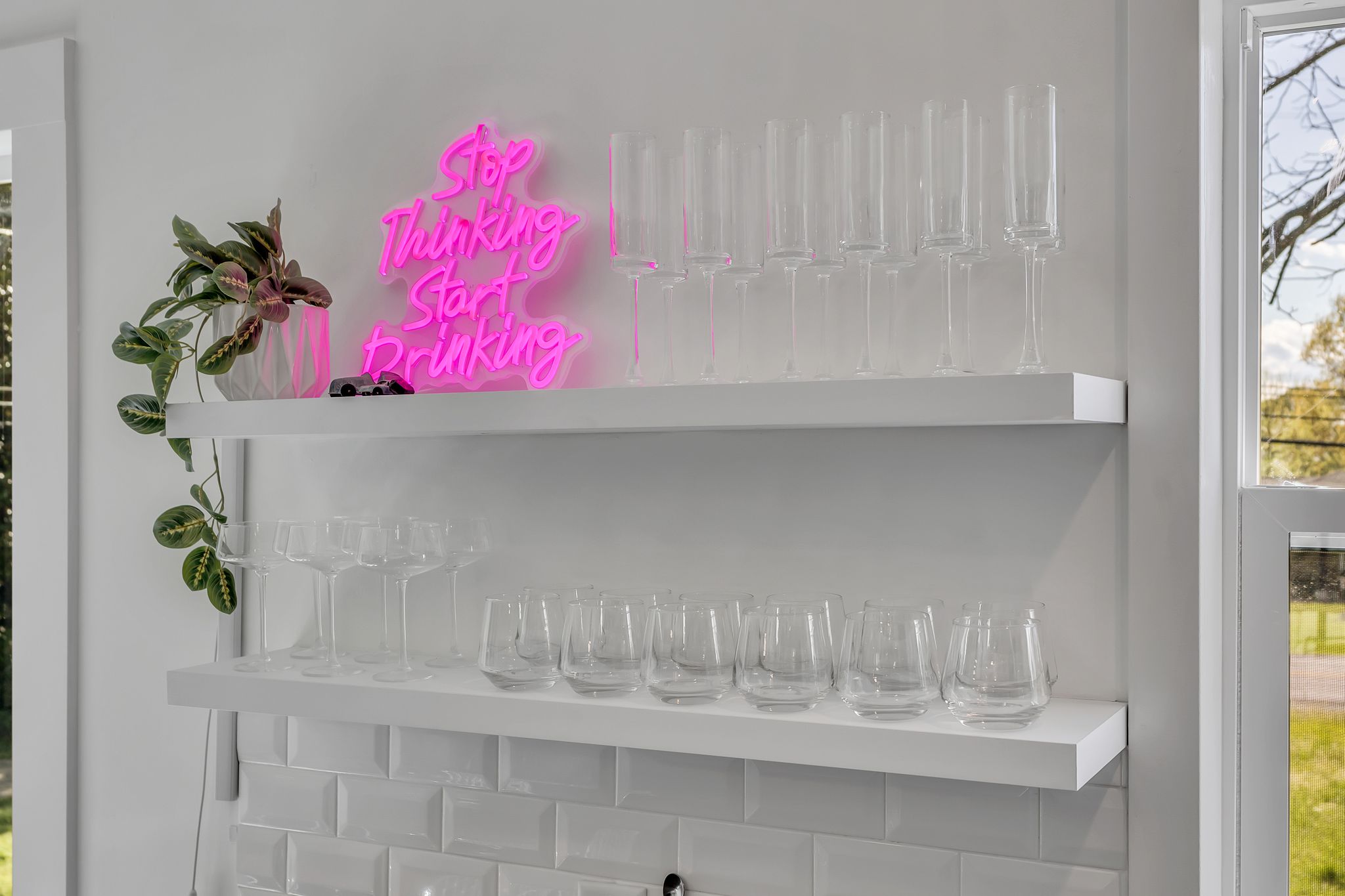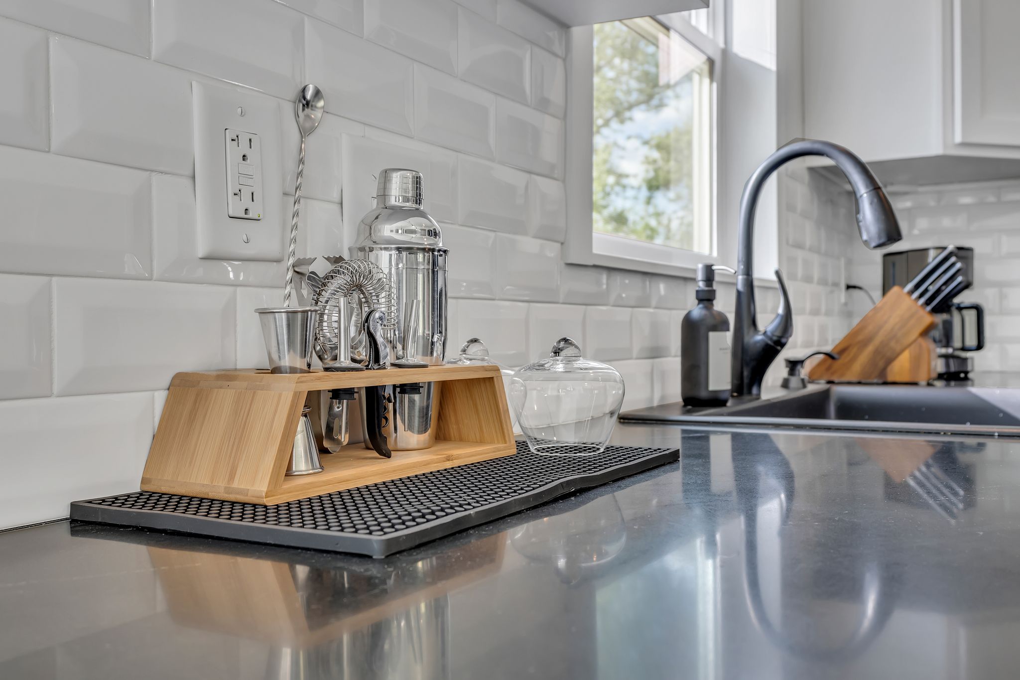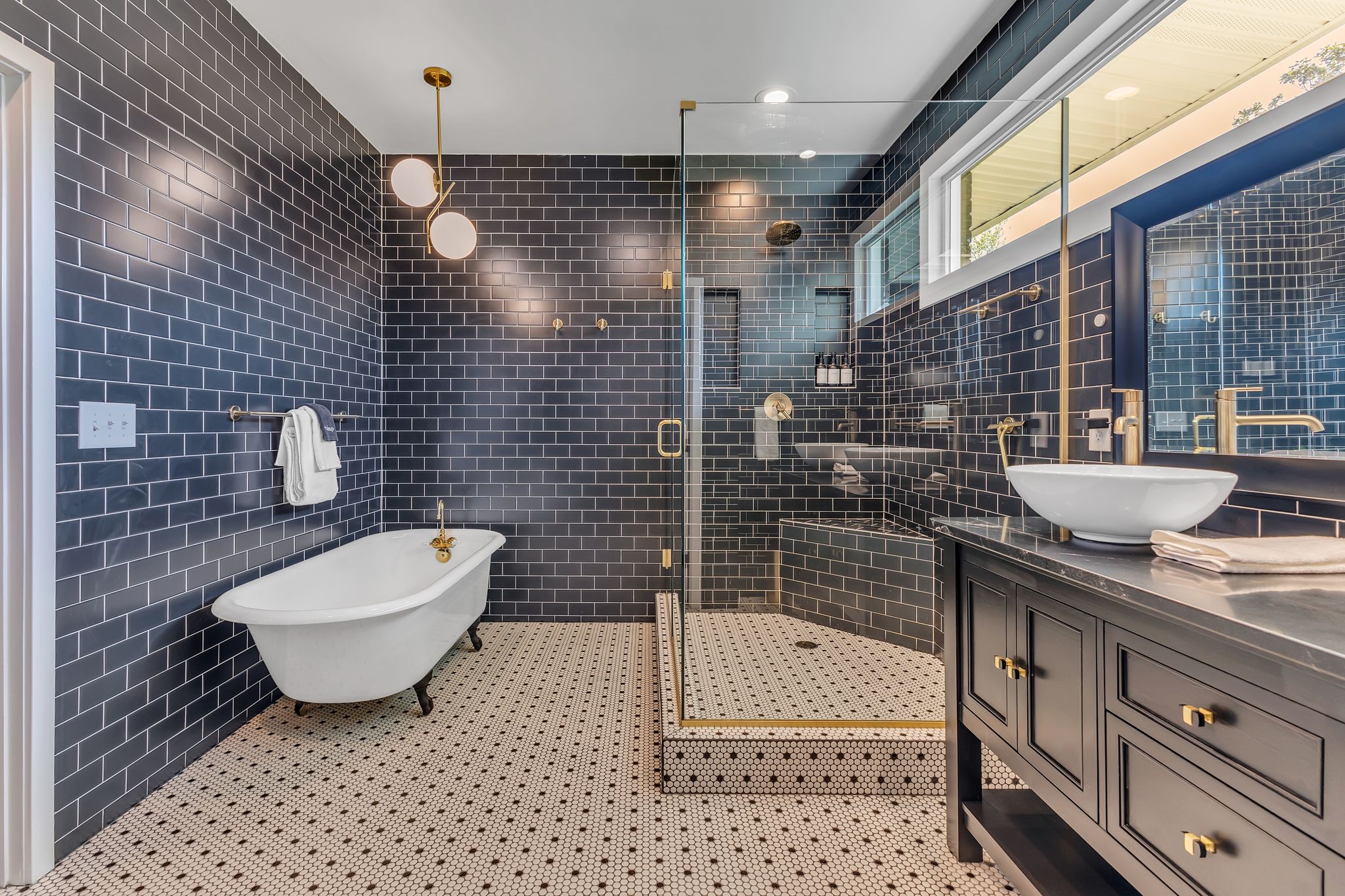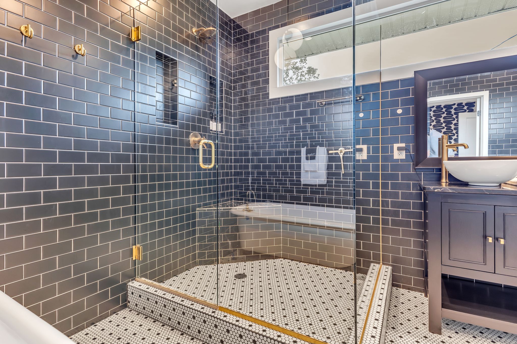 Outside, the expansive backyard is a true highlight of our rental. You can soak your worries away in the hot tub, lounge on the outdoor seating, and dine al fresco surrounded by the lush greenery. The fire pit is perfect for cozying up on chilly nights with loved ones and sharing stories and laughs. And of course, the big disco ball hanging from the tree adds a touch of whimsy and fun to your stay.