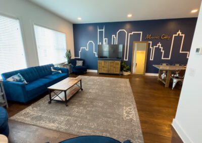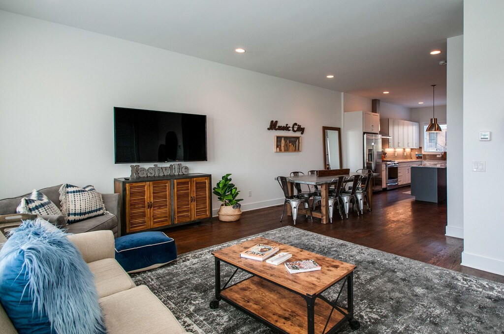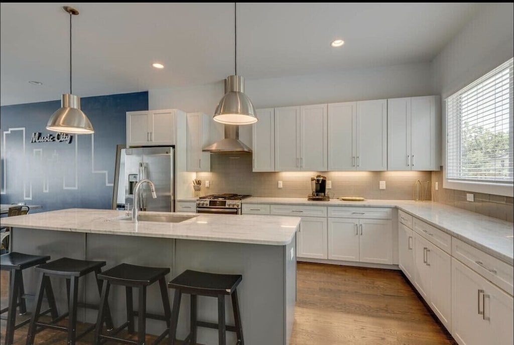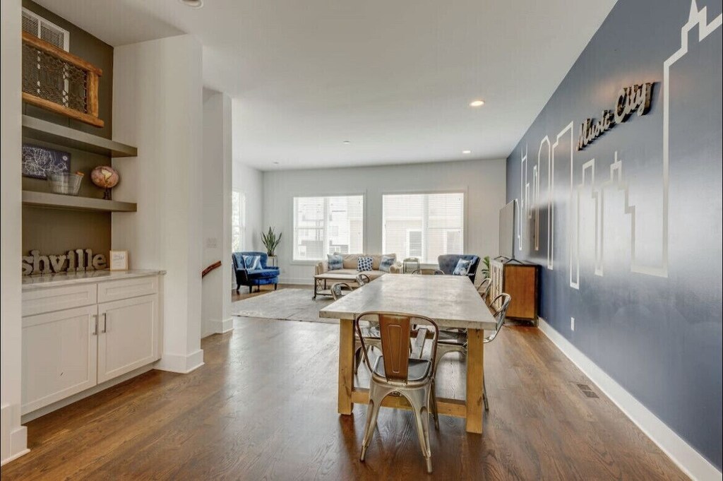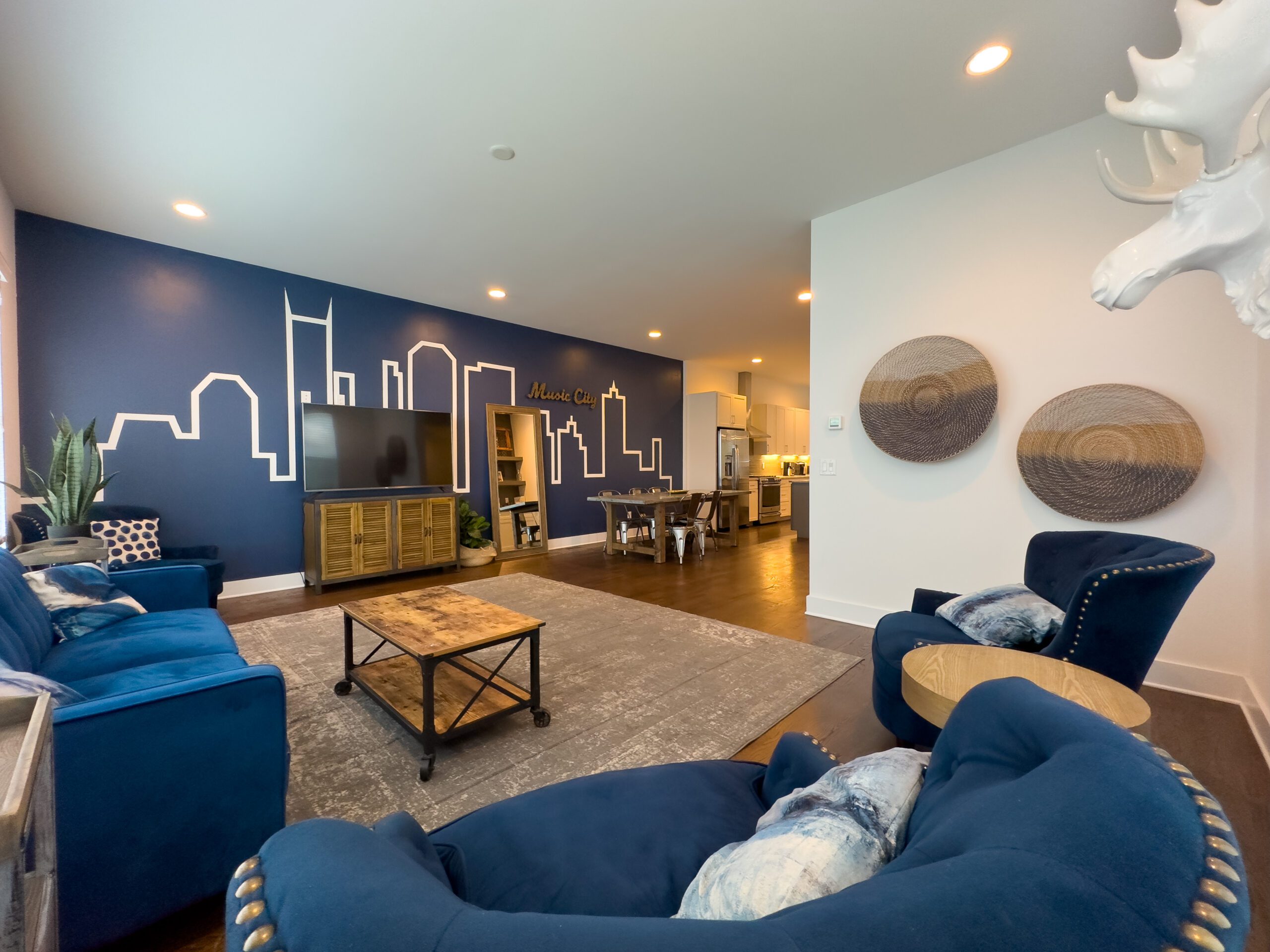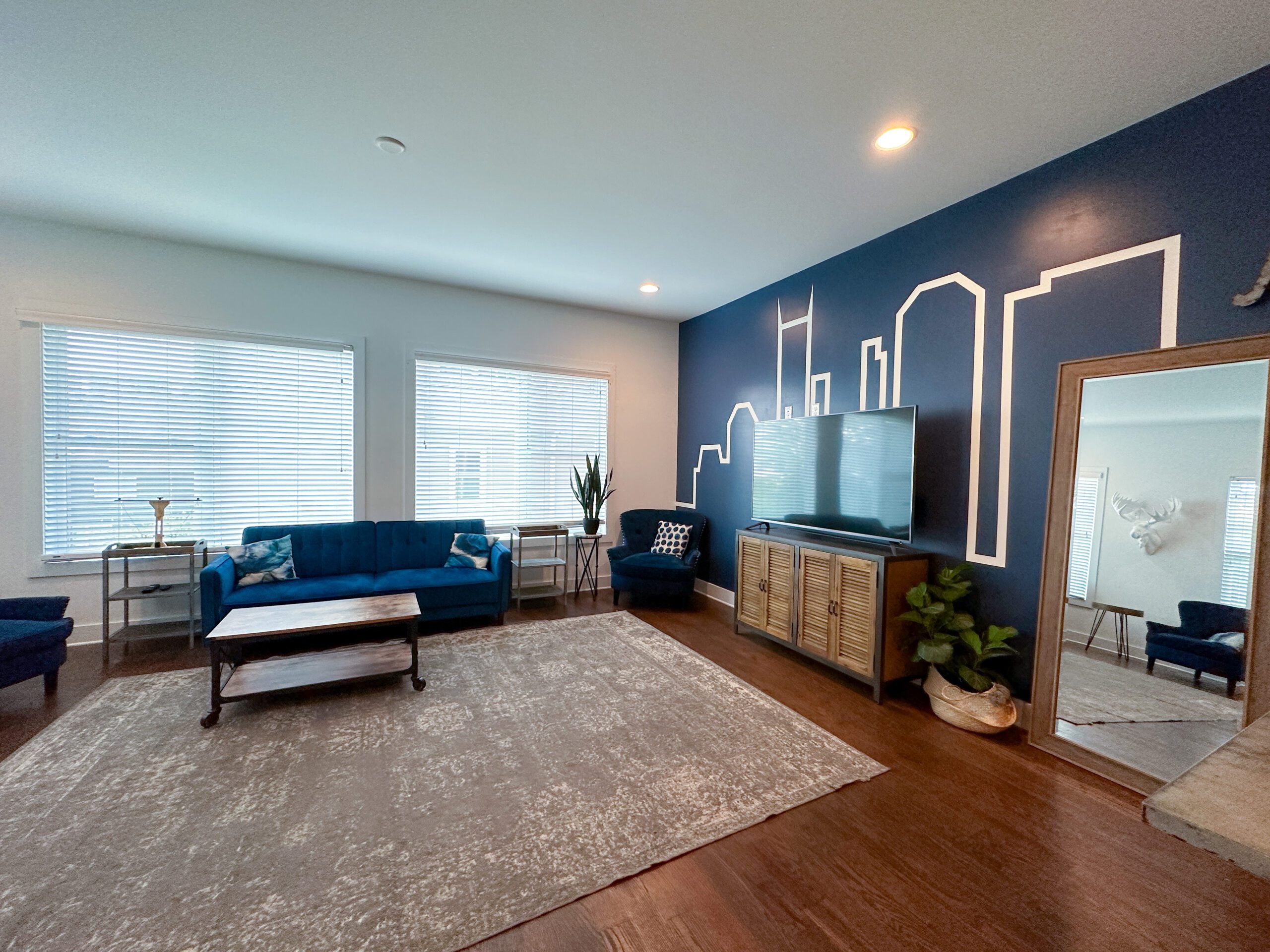 This newly constructed modern luxury home features 4 bedrooms, 3.5 baths, a fully stocked kitchen, open living space, private 2 car garage, and a large 3rd floor patio with amazing views of Nashville. The large rooms make this home ideal for group events, family vacations, and business groups. We are a short $5-10 Uber/Lyft to downtown. Early bag drop before check in is available by request for an additional $50.