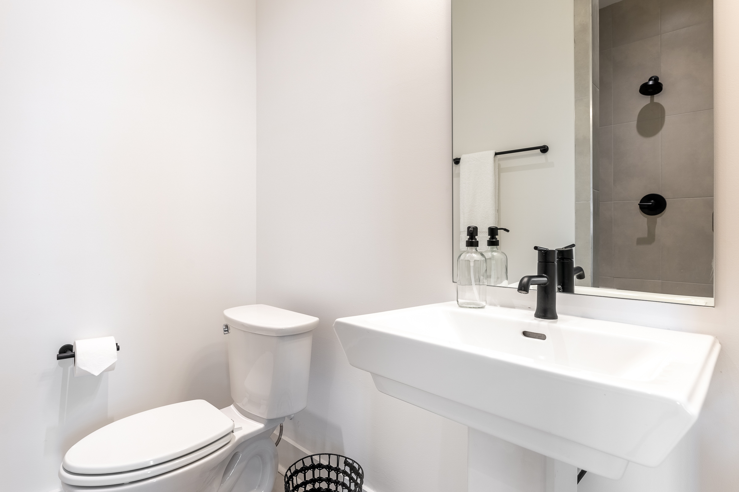 3 Rolls of toilet paper per bathroom (one on the holder, as well as one additional roll)