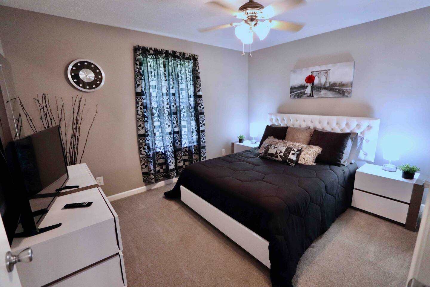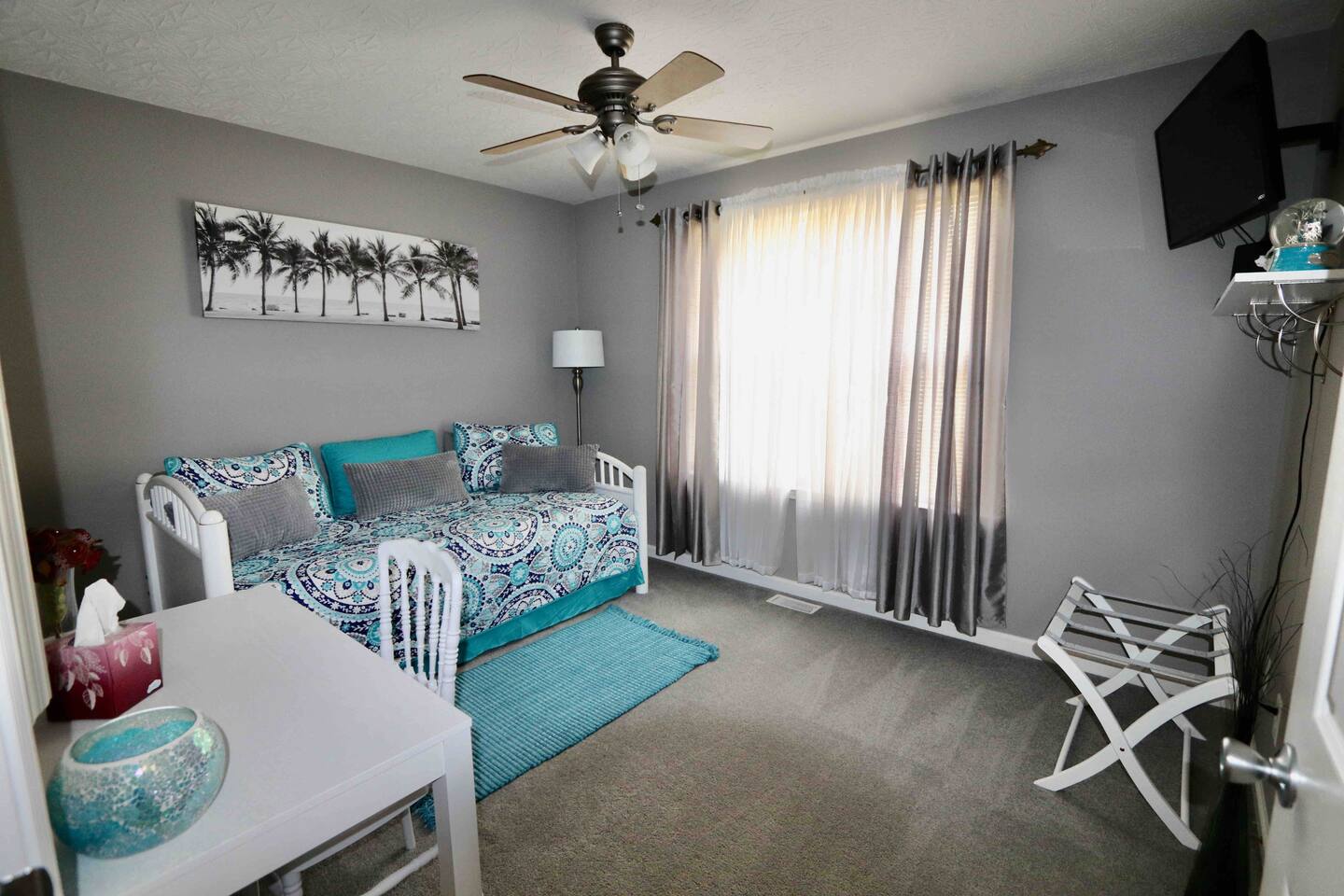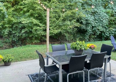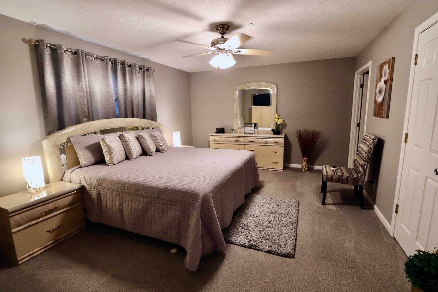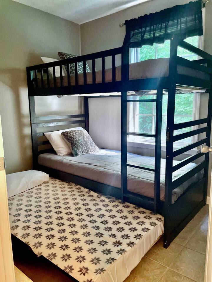 Spread out in our 1,500 sq ft home located in a quiet culdesac on 2+ acres of peace and tranquillity, backing up to the woods w an ambient lighted outdoor dining area/fire pit. Featuring 4 bedrooms, 2 baths, full sized chef’s kitchen w dining area, w/d, large living room with Smart TV, & more.