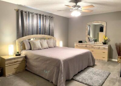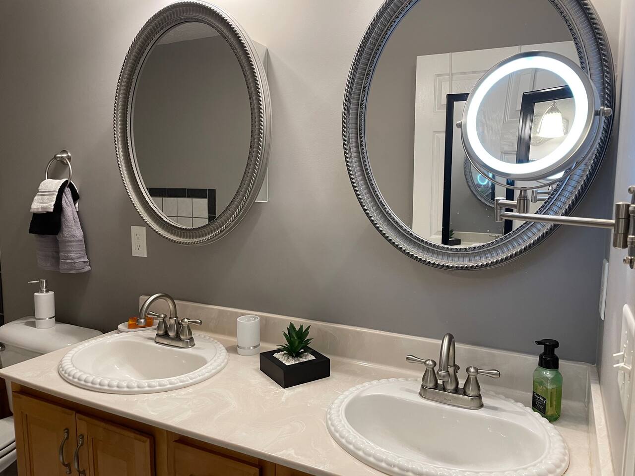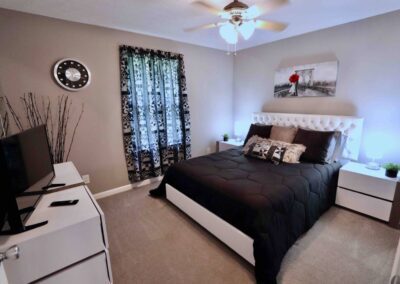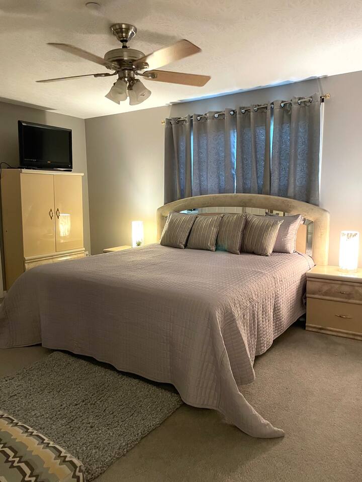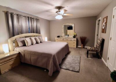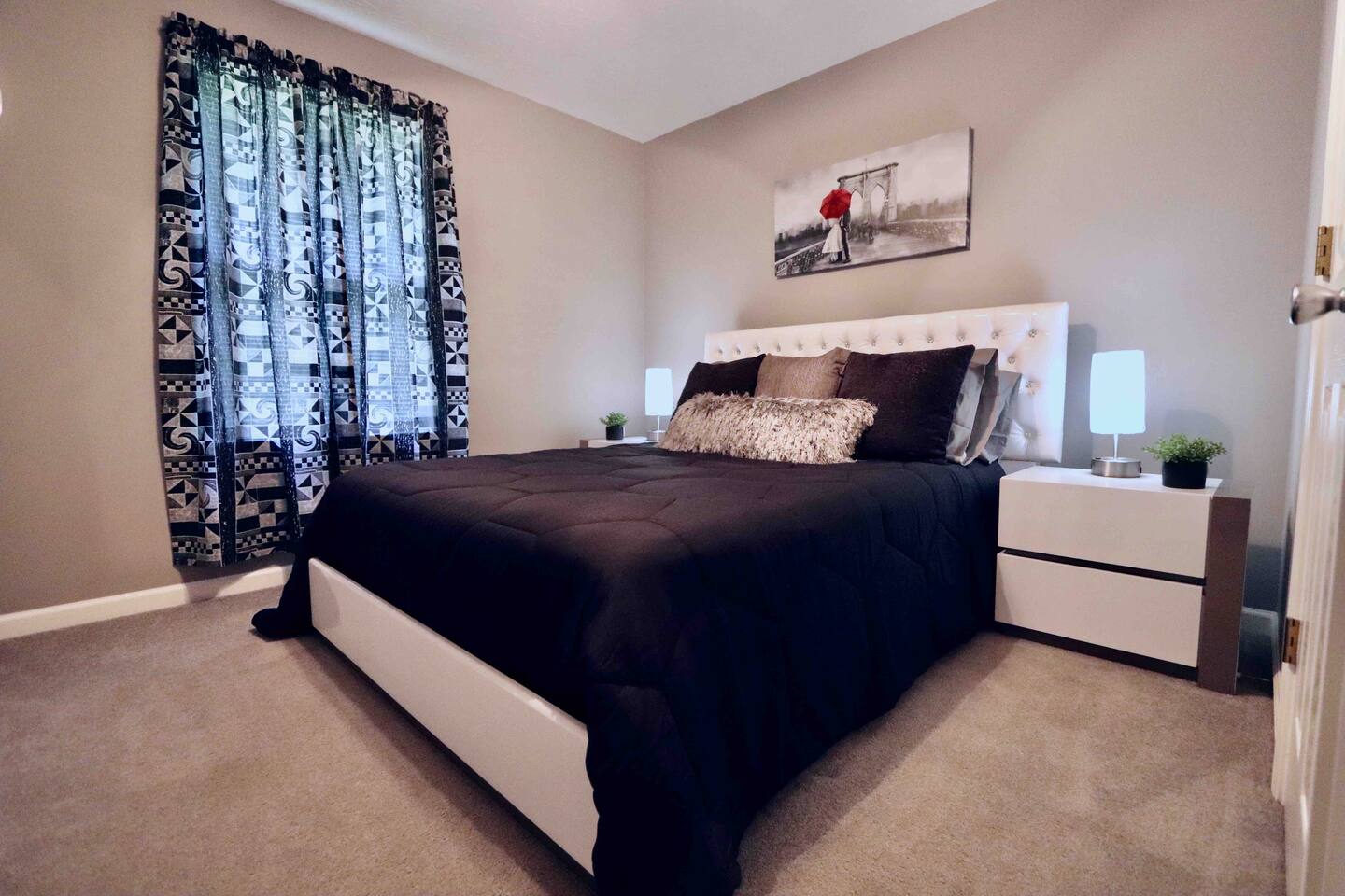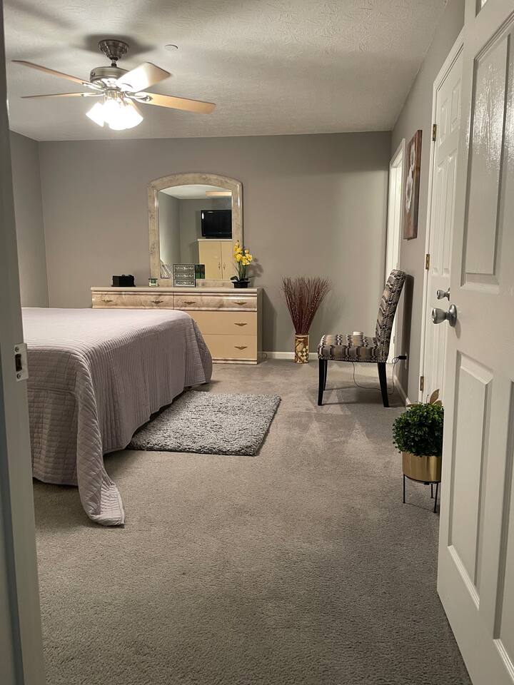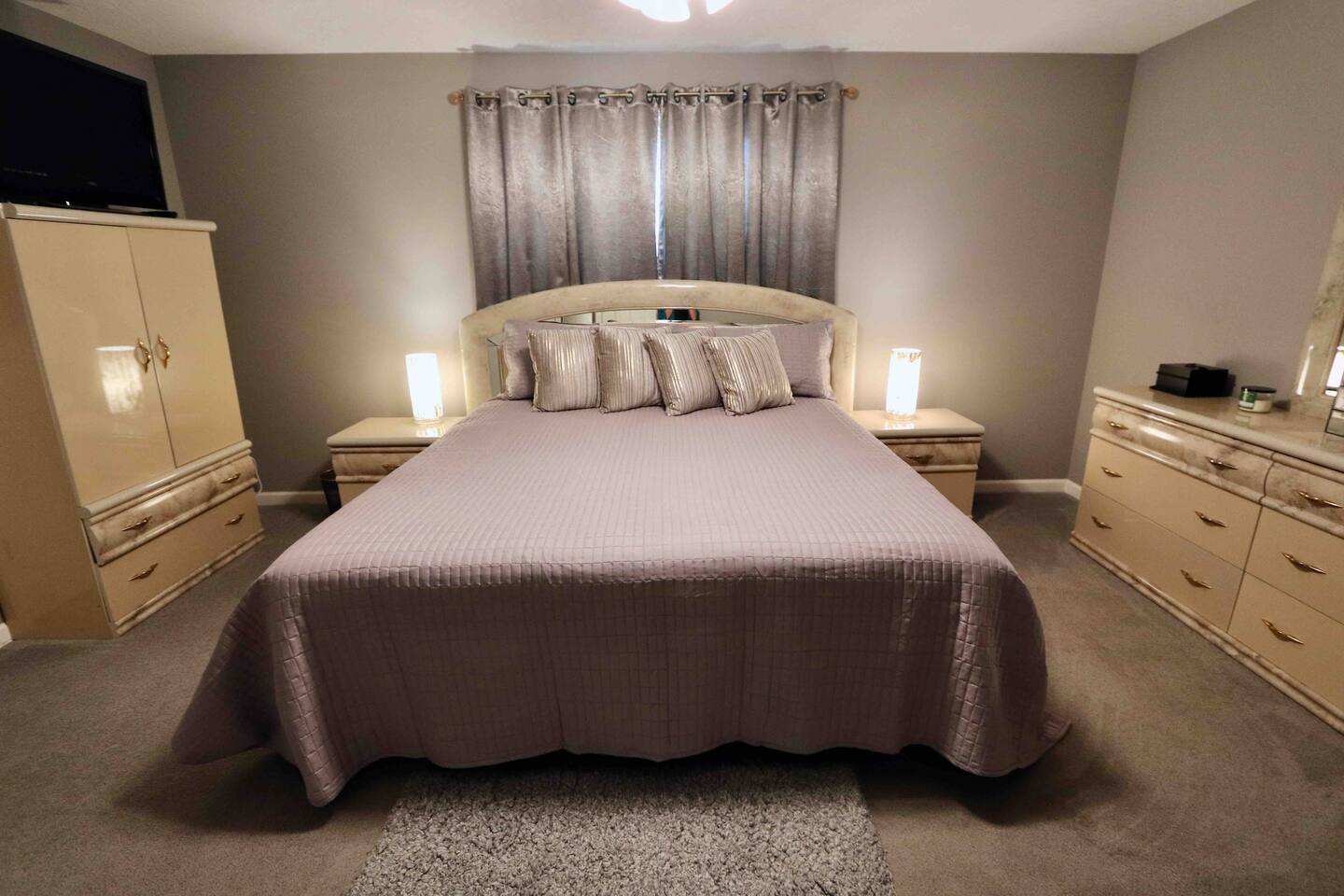 Spread out in our 1,500 sq ft home located in a quiet culdesac on 2+ acres of peace and tranquillity, backing up to the woods w an ambient lighted outdoor dining area/fire pit. Featuring 4 bedrooms, 2 baths, full sized chef’s kitchen w dining area, w/d, large living room with Smart TV, & more.