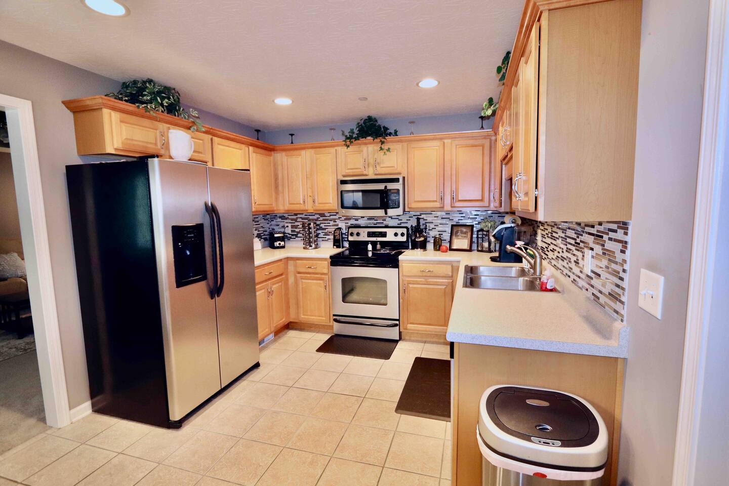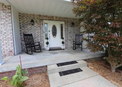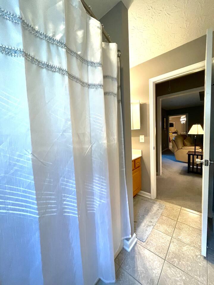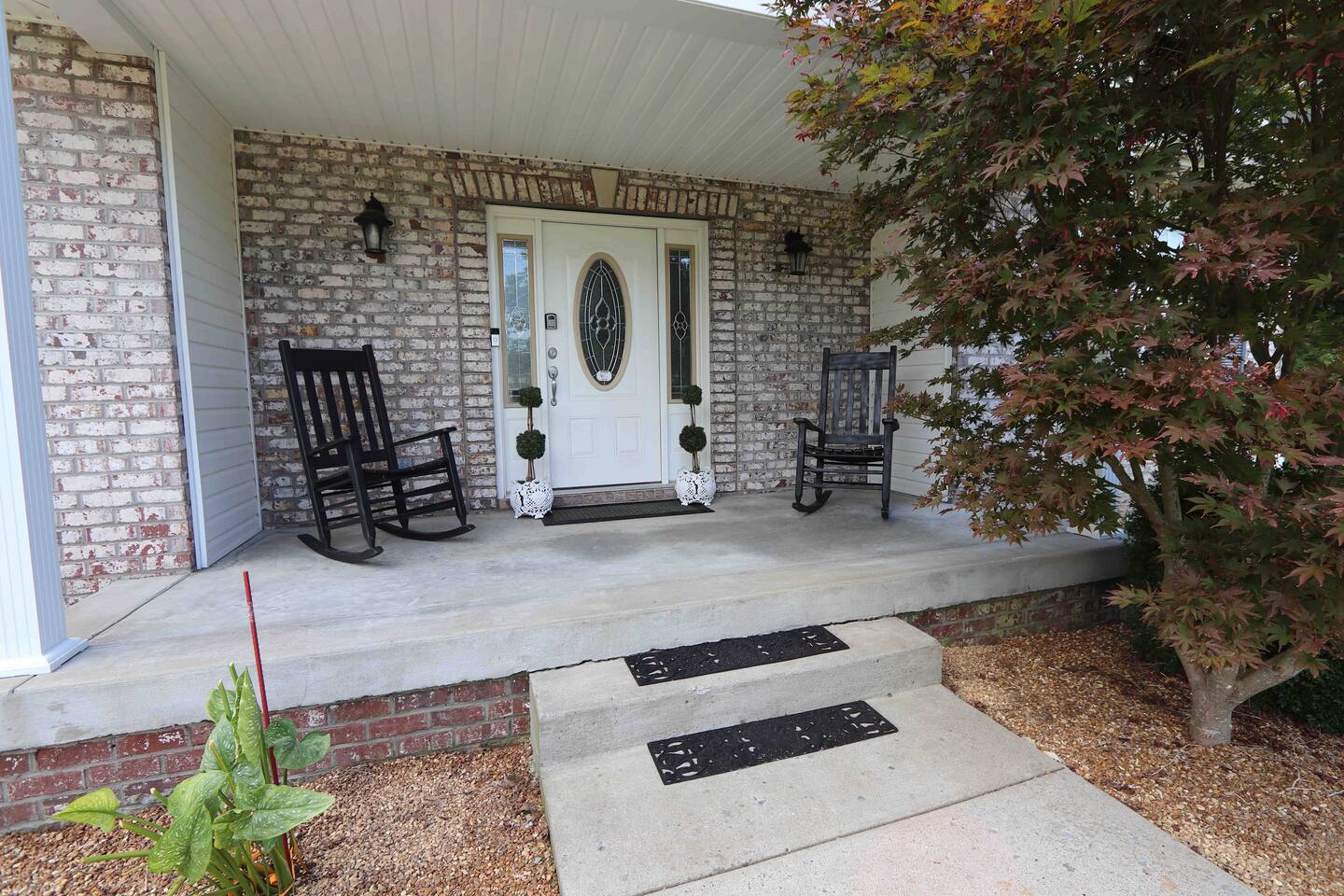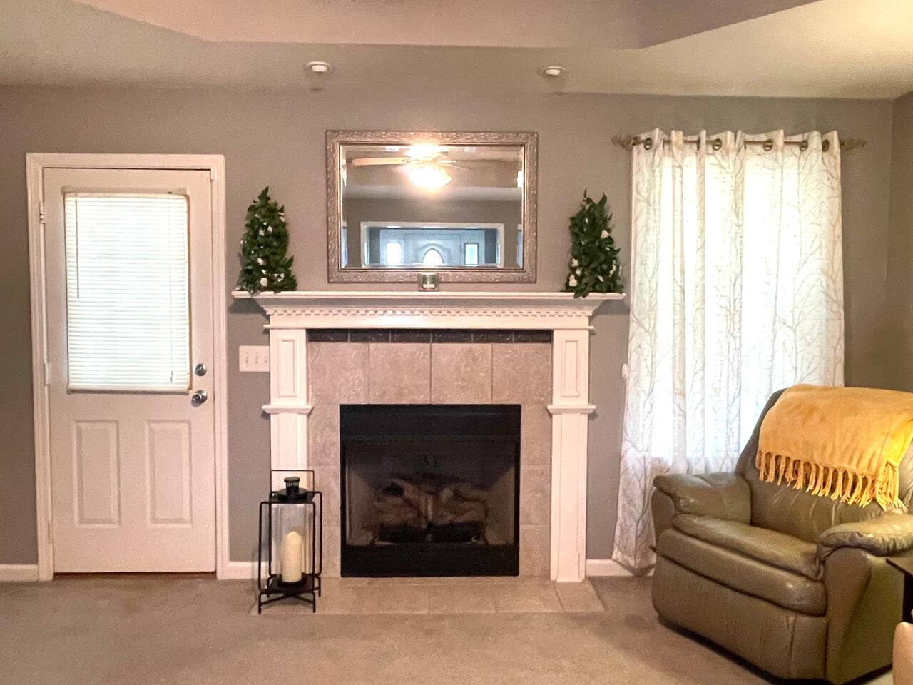 Walk up the front steps past the gorgeous landscaping and enter into the foyer. Straight ahead is the spacious living room with reclining couches and smart TV.