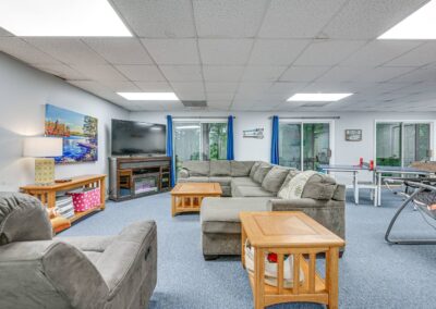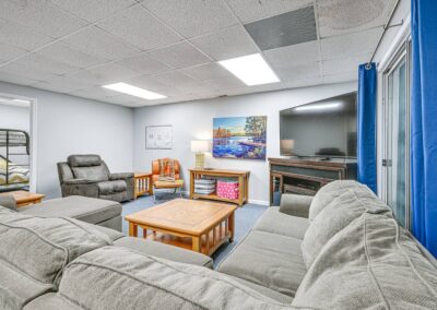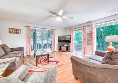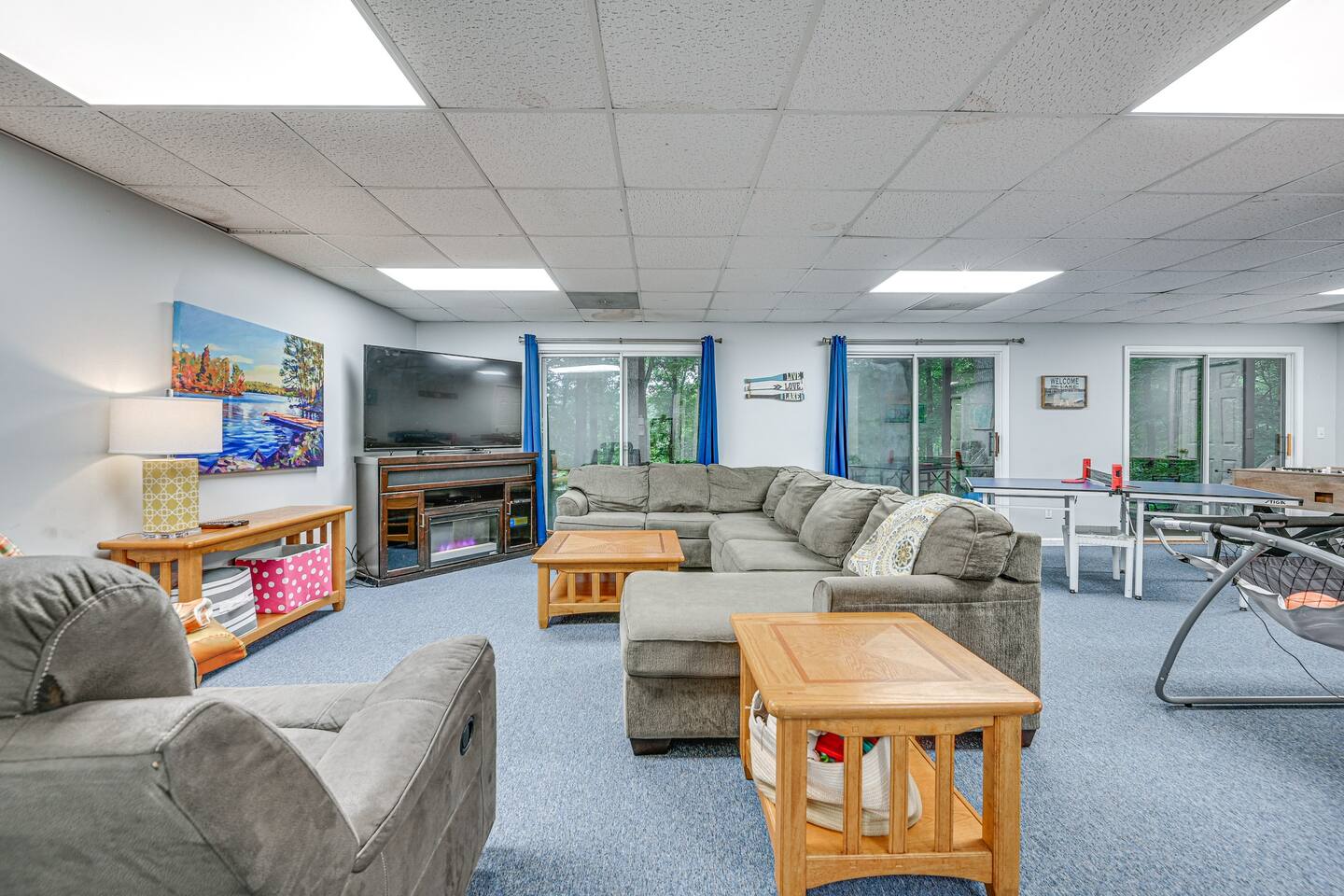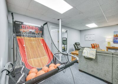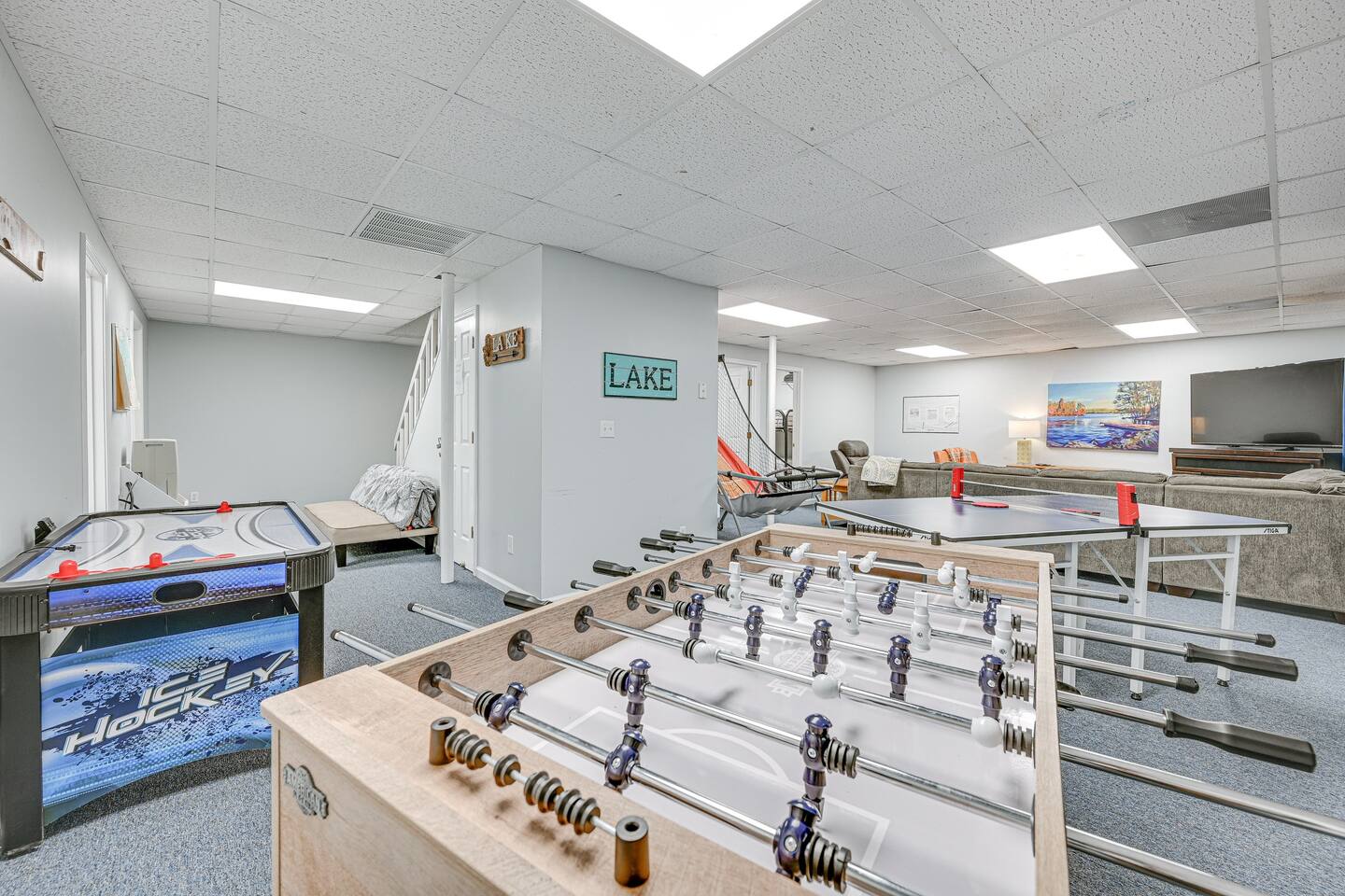 INDOOR LIVING: Flat-screen TVs, spacious living rooms, group-friendly dining table, game room w/ ping-pong table, foosball, air hockey & arcade basketball