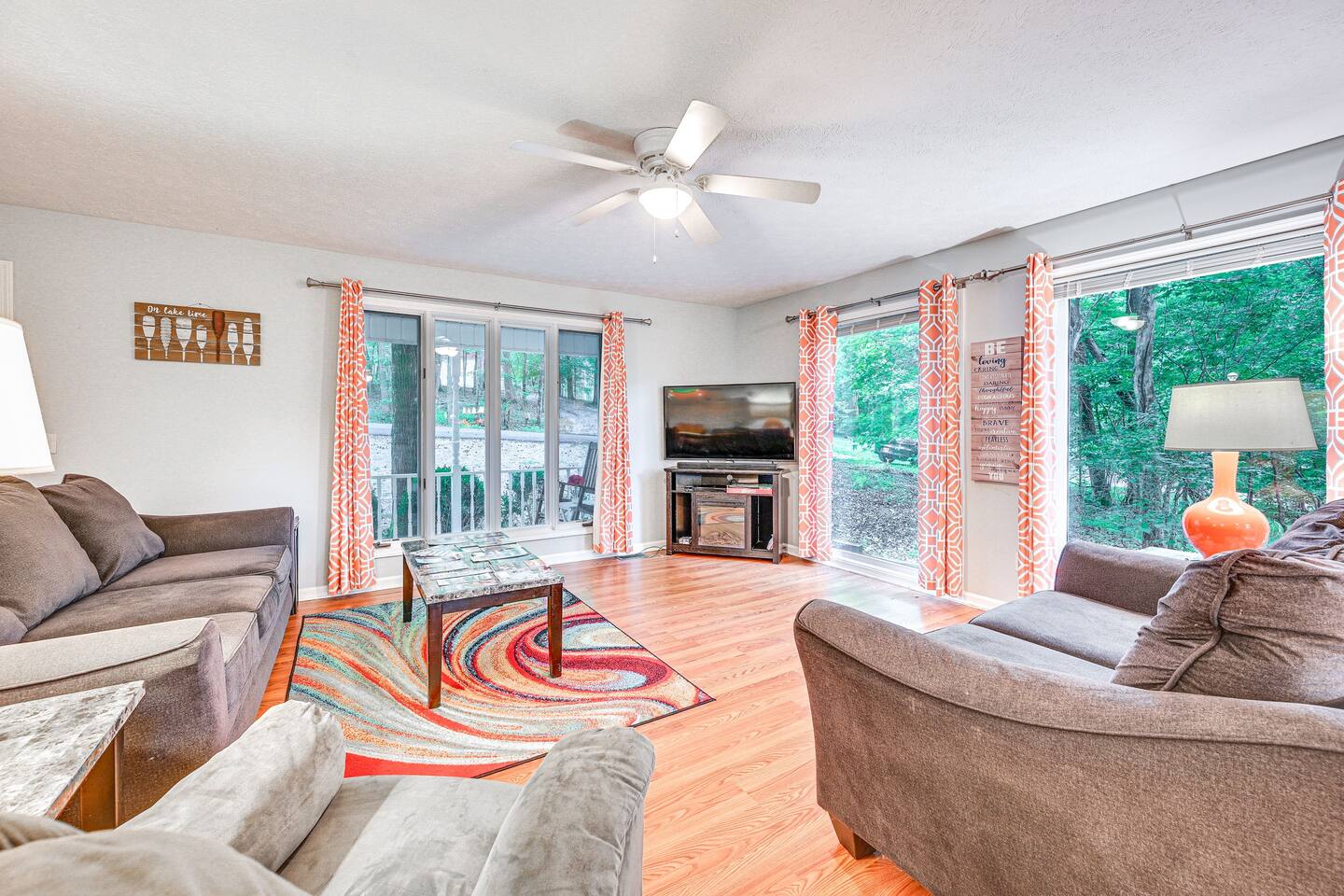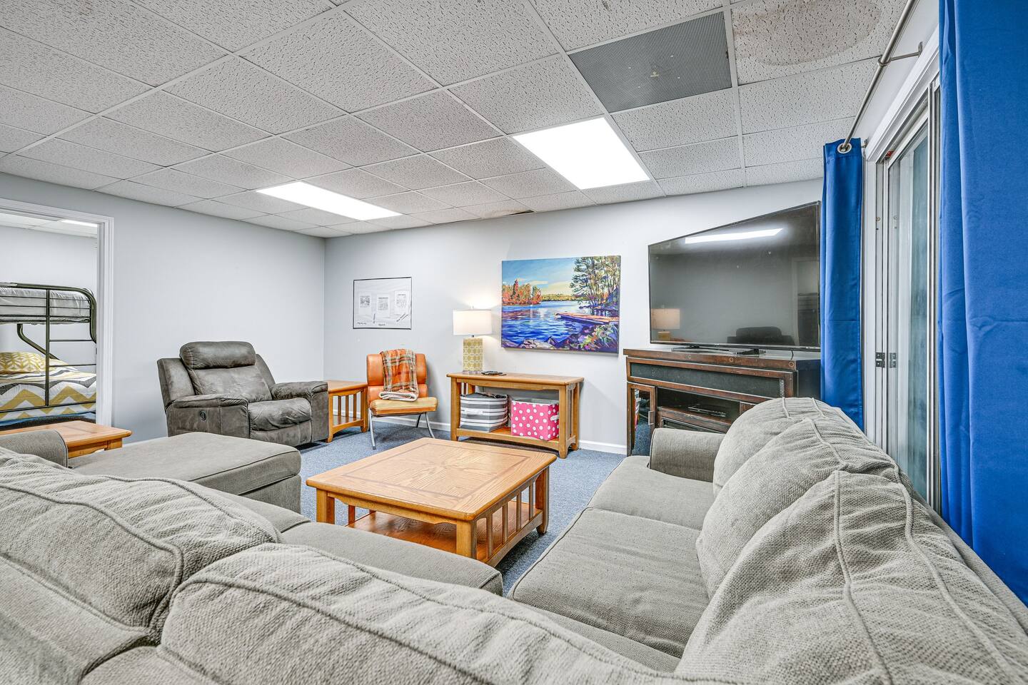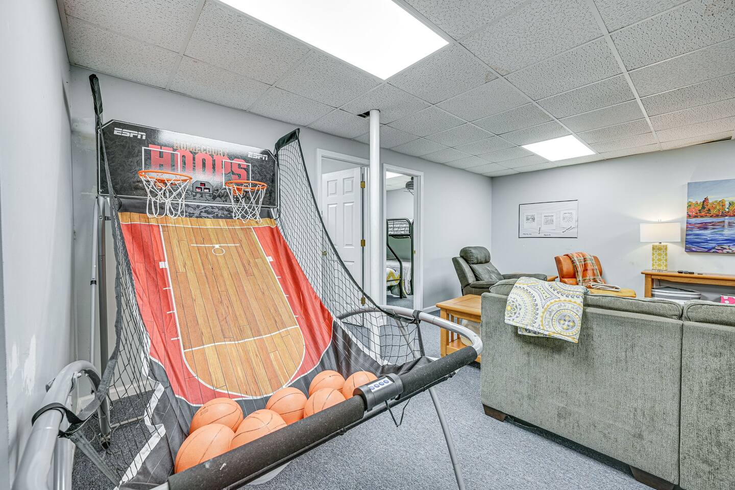 INDOOR LIVING: Flat-screen TVs, spacious living rooms, group-friendly dining table, game room w/ ping-pong table, foosball, air hockey & arcade basketball