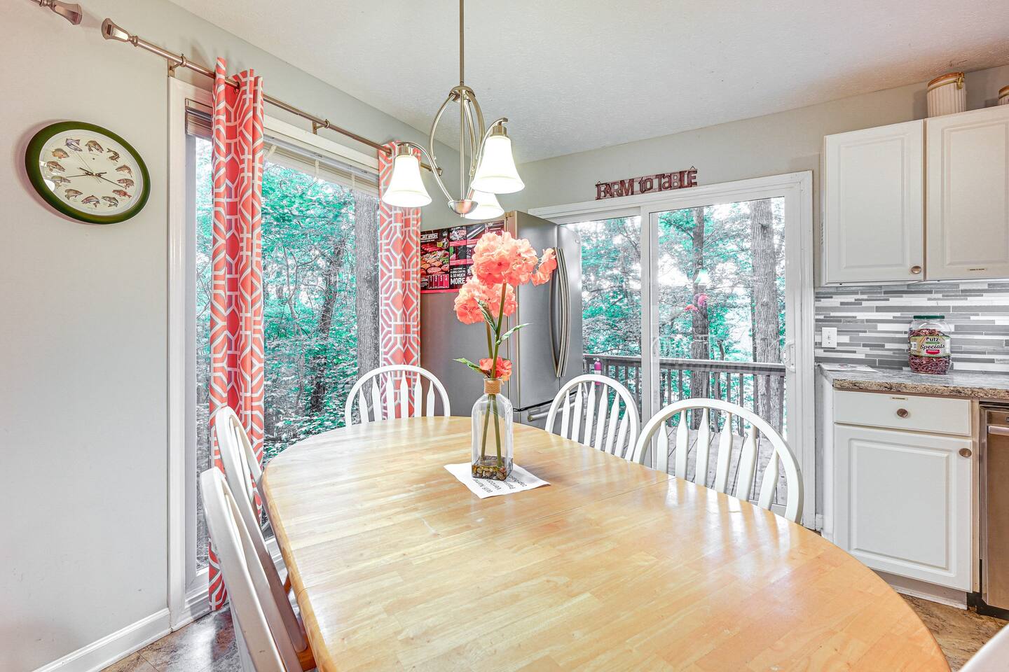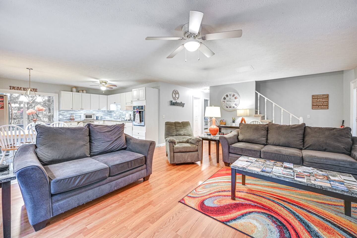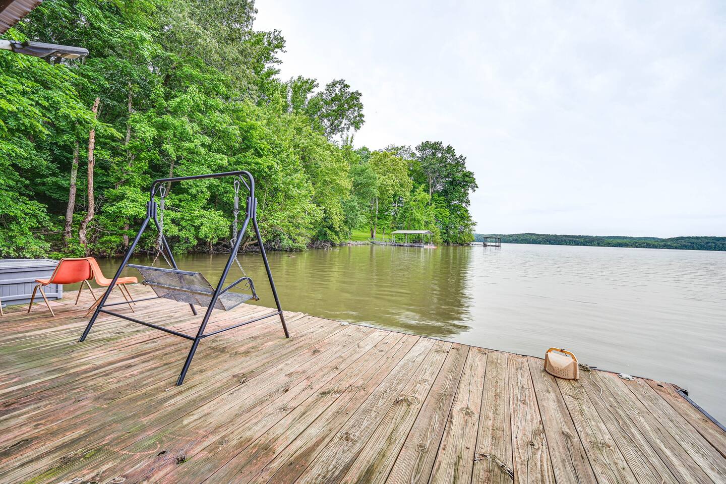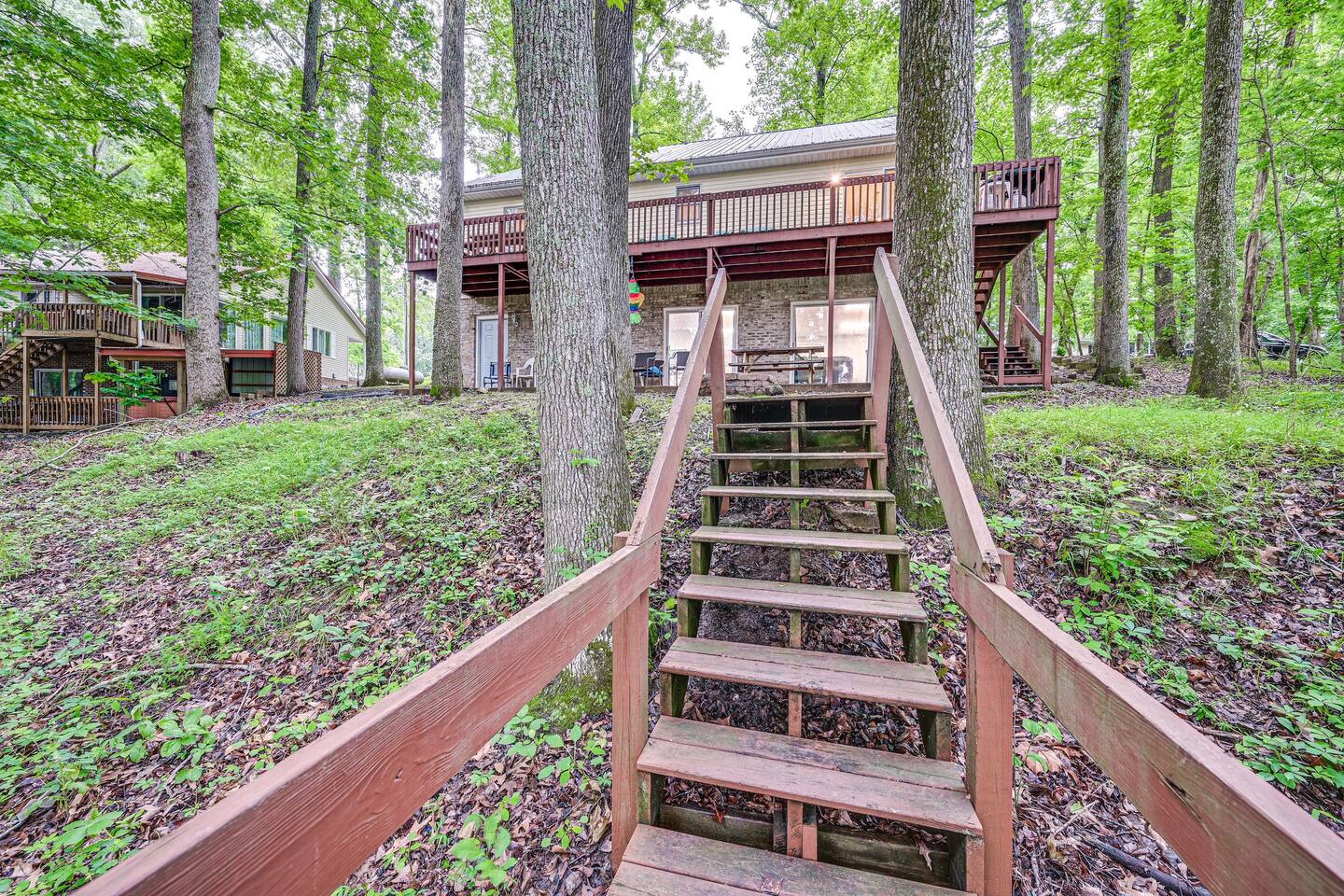 Indulge in the allure of waterfront life in Cadiz, KY, at this splendid 6-bedroom, 3-bathroom vacation rental. The home takes pride in its ample amenities, including a boat slip for easy lake access, a gas grill for outdoor feasts, a fire pit for roasting s’mores, and a deck for serene lake viewing. Enjoy leaf peeping in the Land Between the Lakes National Recreational Area or bask in nature’s beauty at Elk & Bison Prairie. Nobody does authentic lakeside relaxation like ‘Delma’s Haven!’