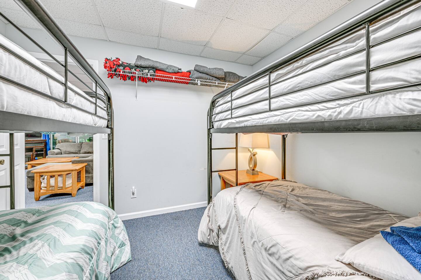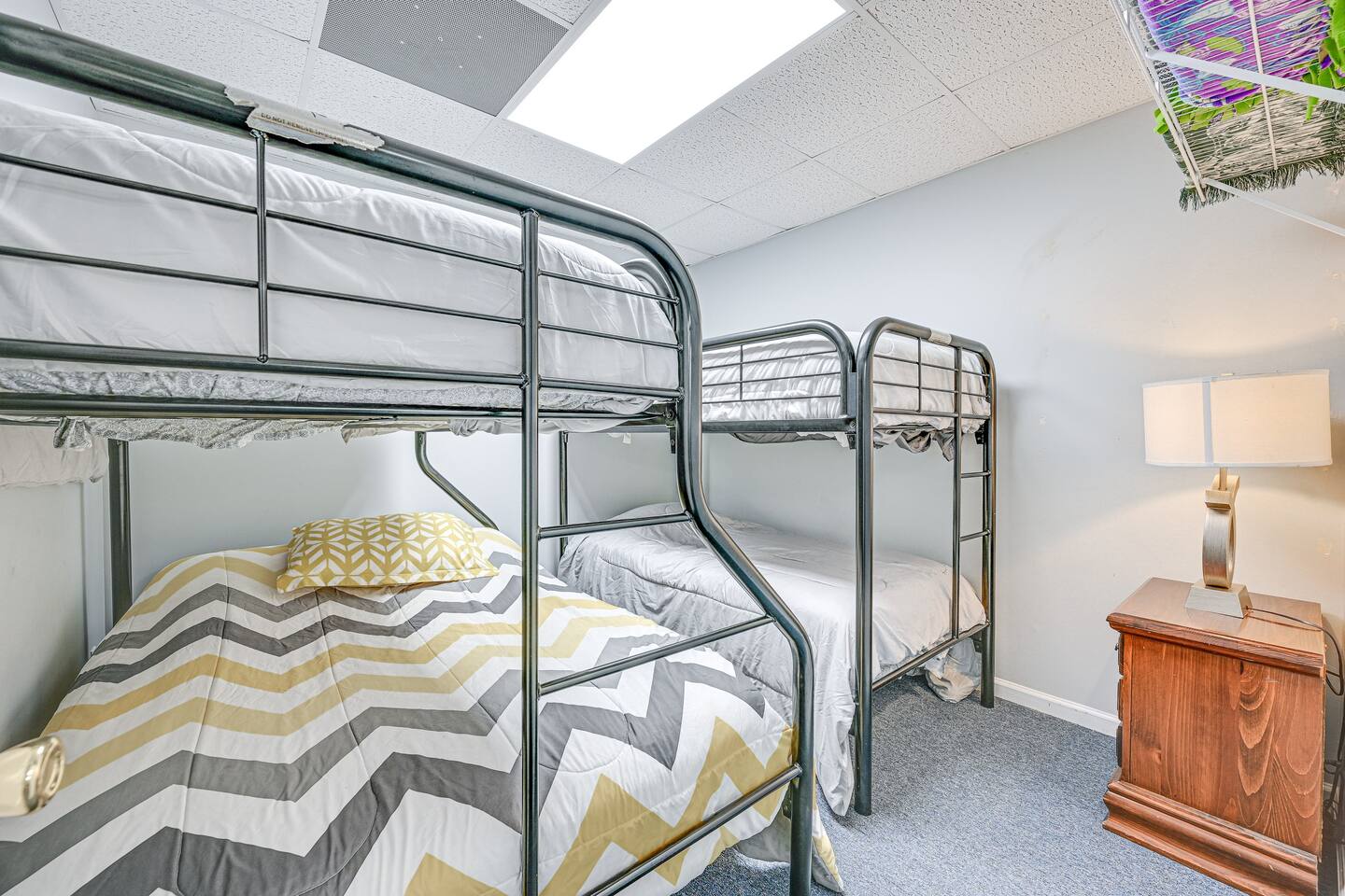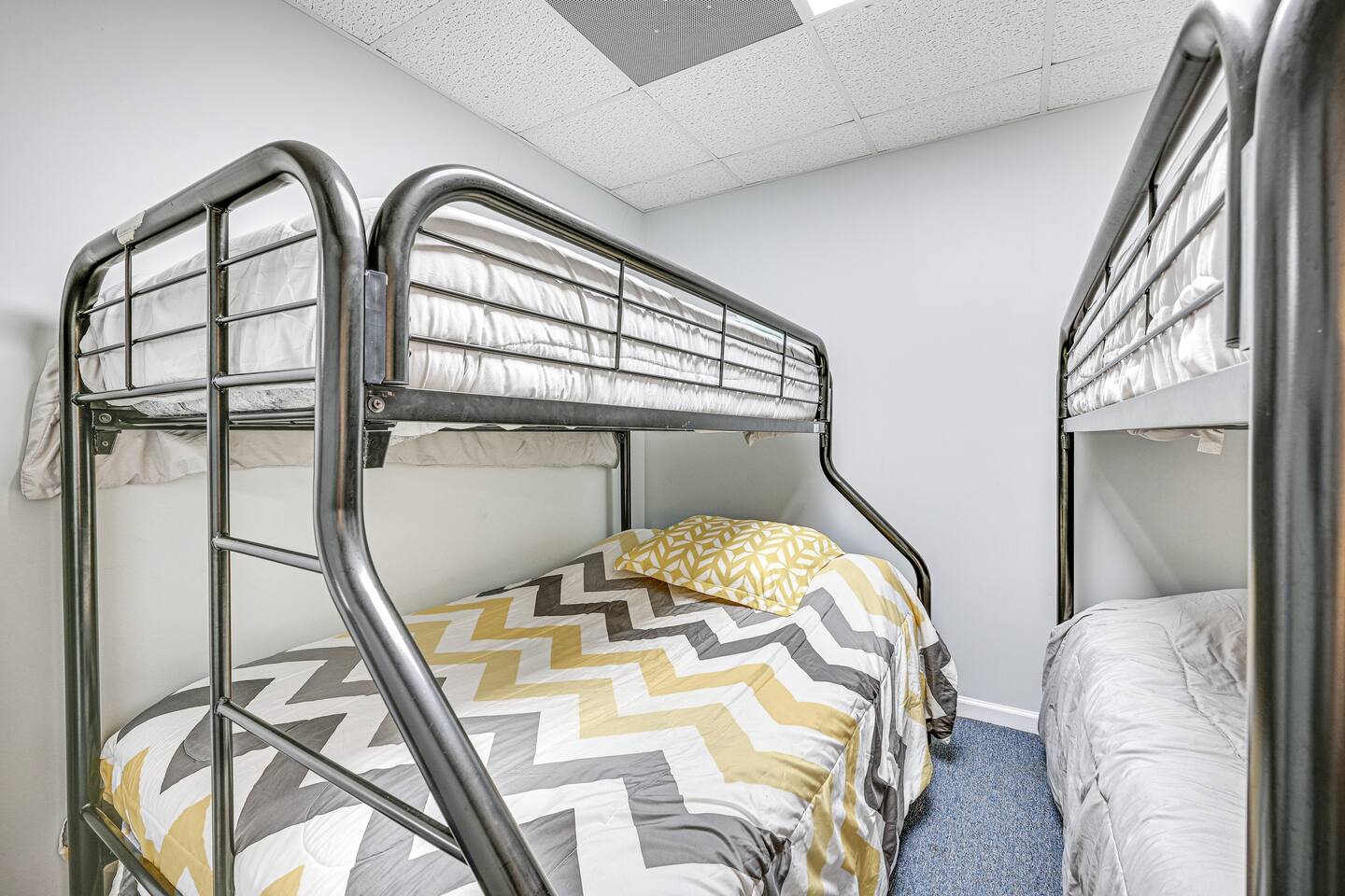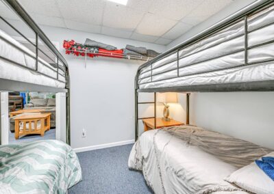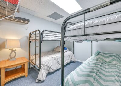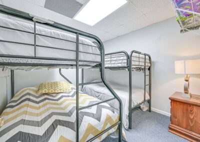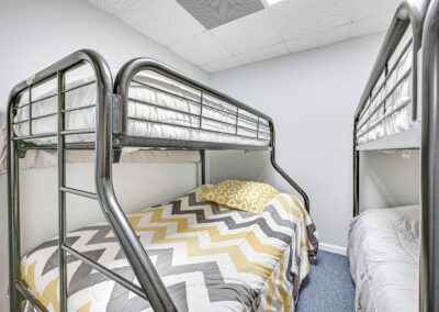 Bedroom 1: Queen Bed | Bedroom 2: Queen Bed | Bedroom 3: 3 Queen Beds | Bedroom 4: 2 Queen Beds | Bedroom 5: 2 Twin Bunk Beds | Bedroom 6: Twin Bunk Bed, Twin/Full Bunk Bed | Game Room: Full Futon | Additional Sleeping: Crib