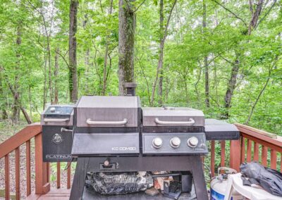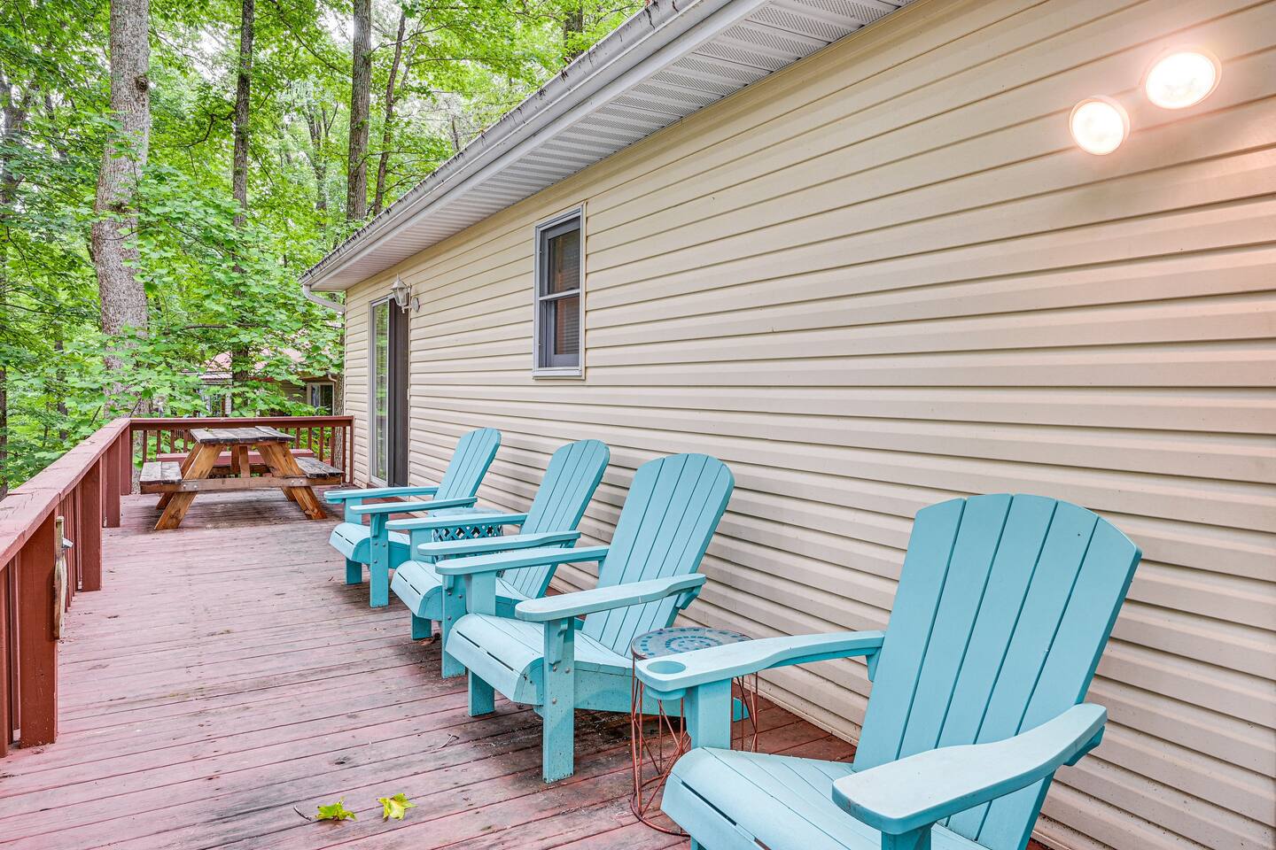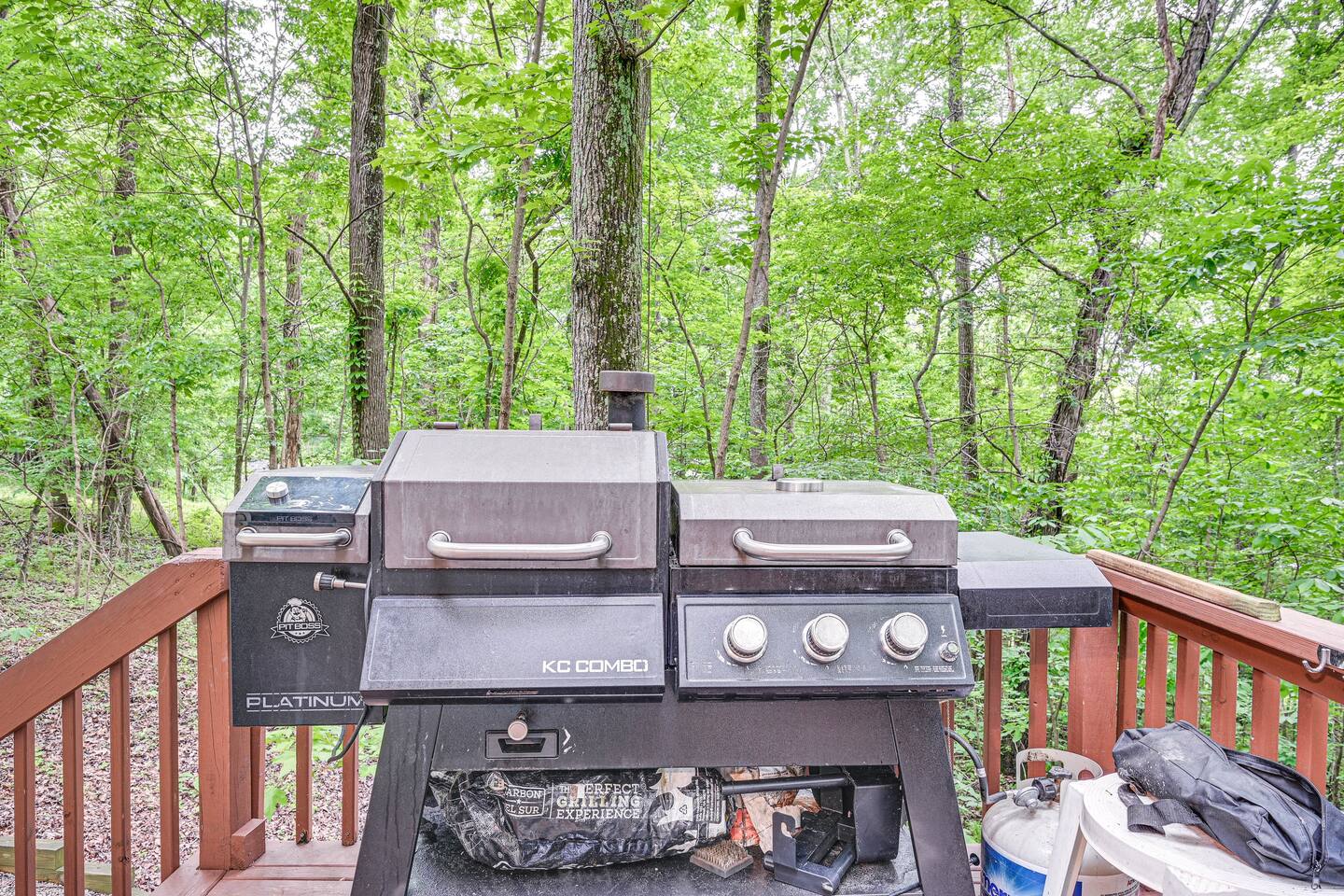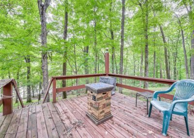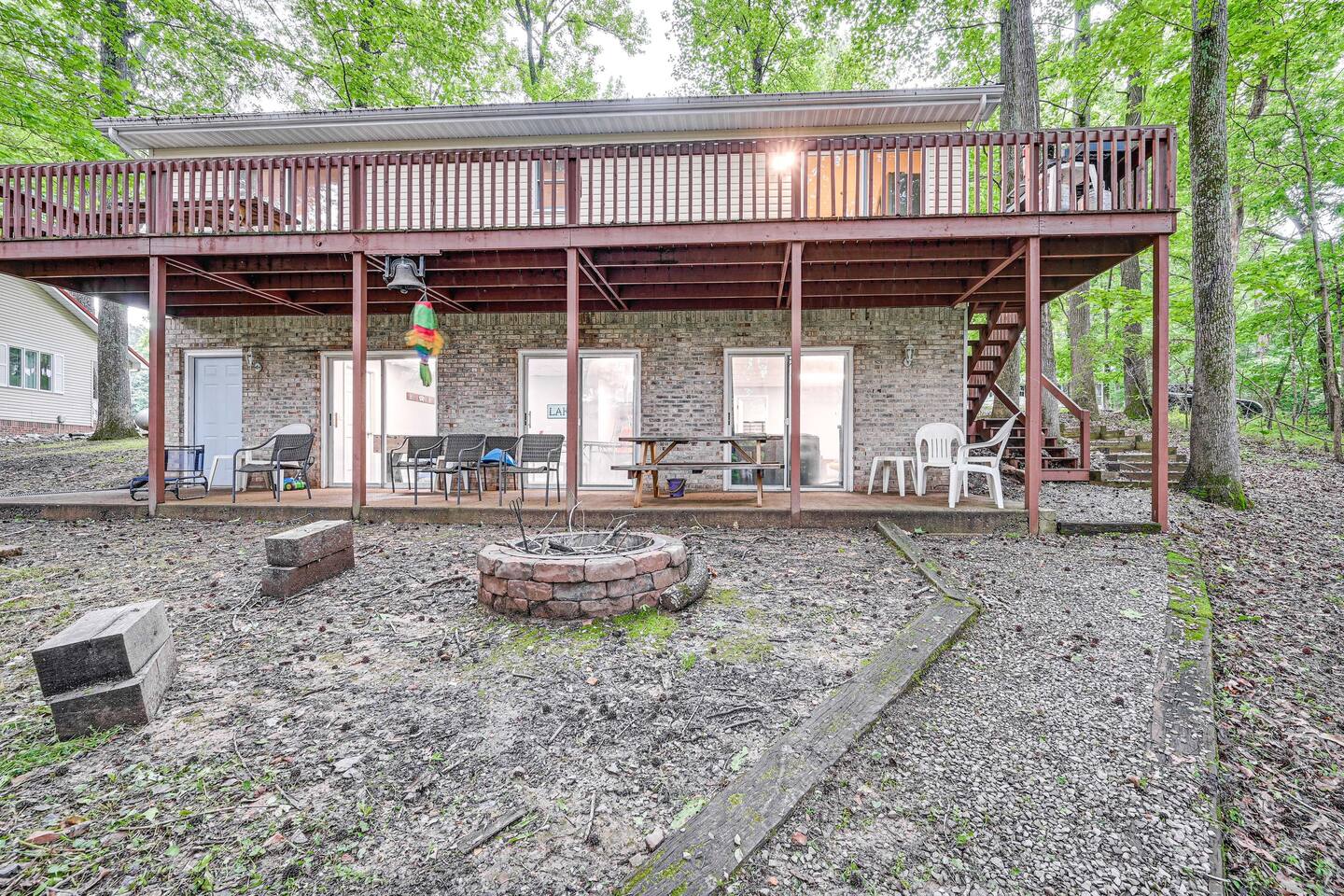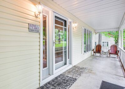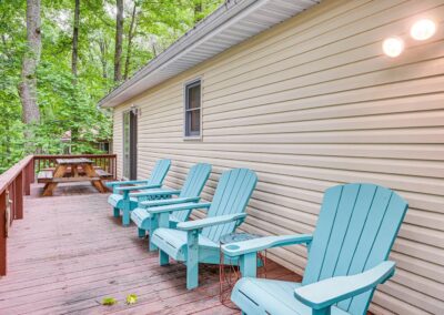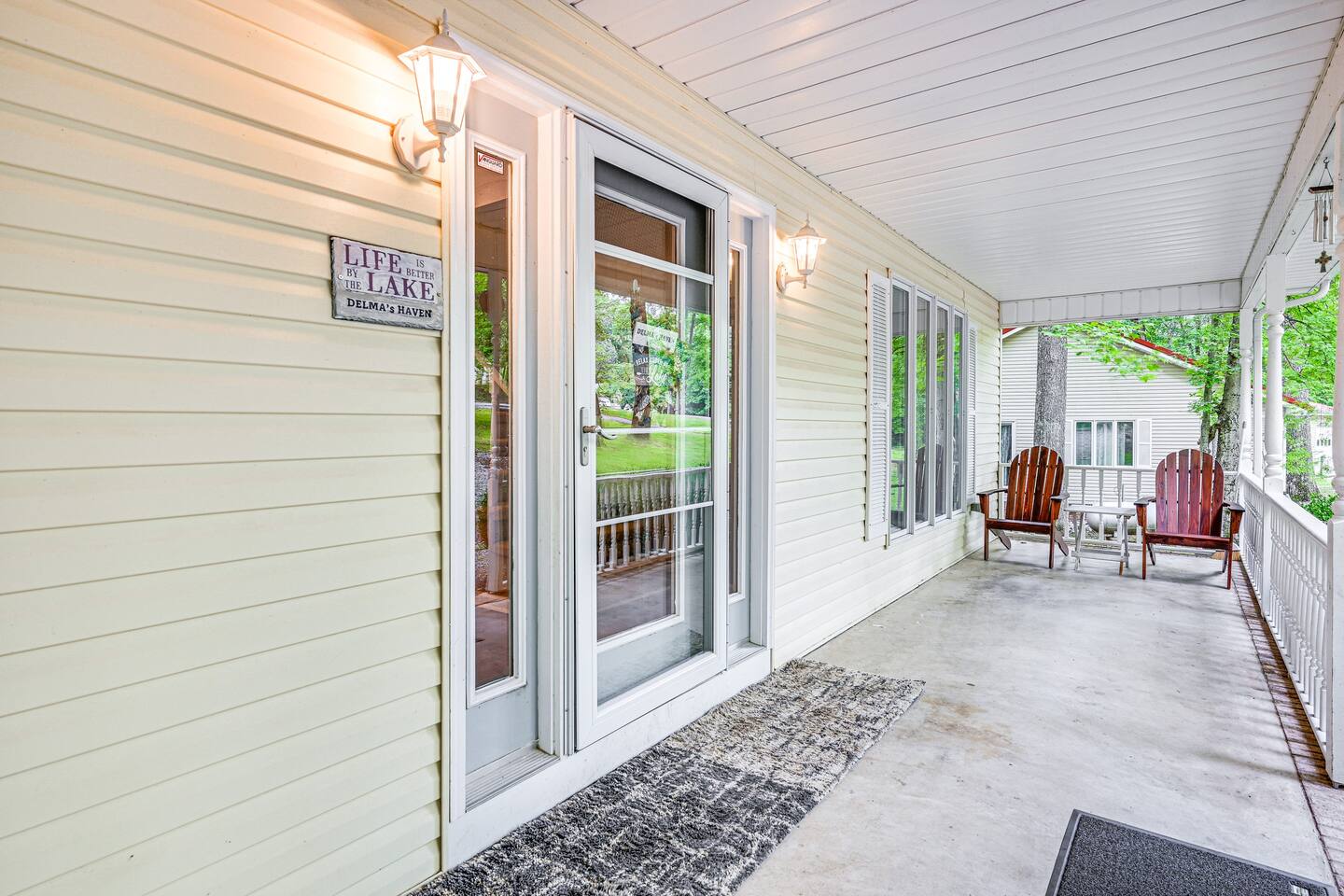 OUTDOOR LIVING: Front porch w/ rocking chairs, large private deck, gas grill, fire pit, dock, boat slip (available upon request), outdoor seating