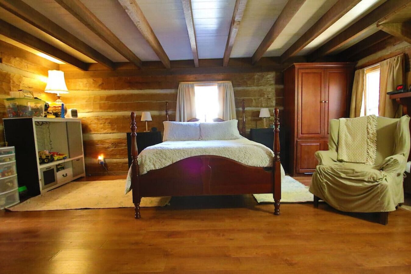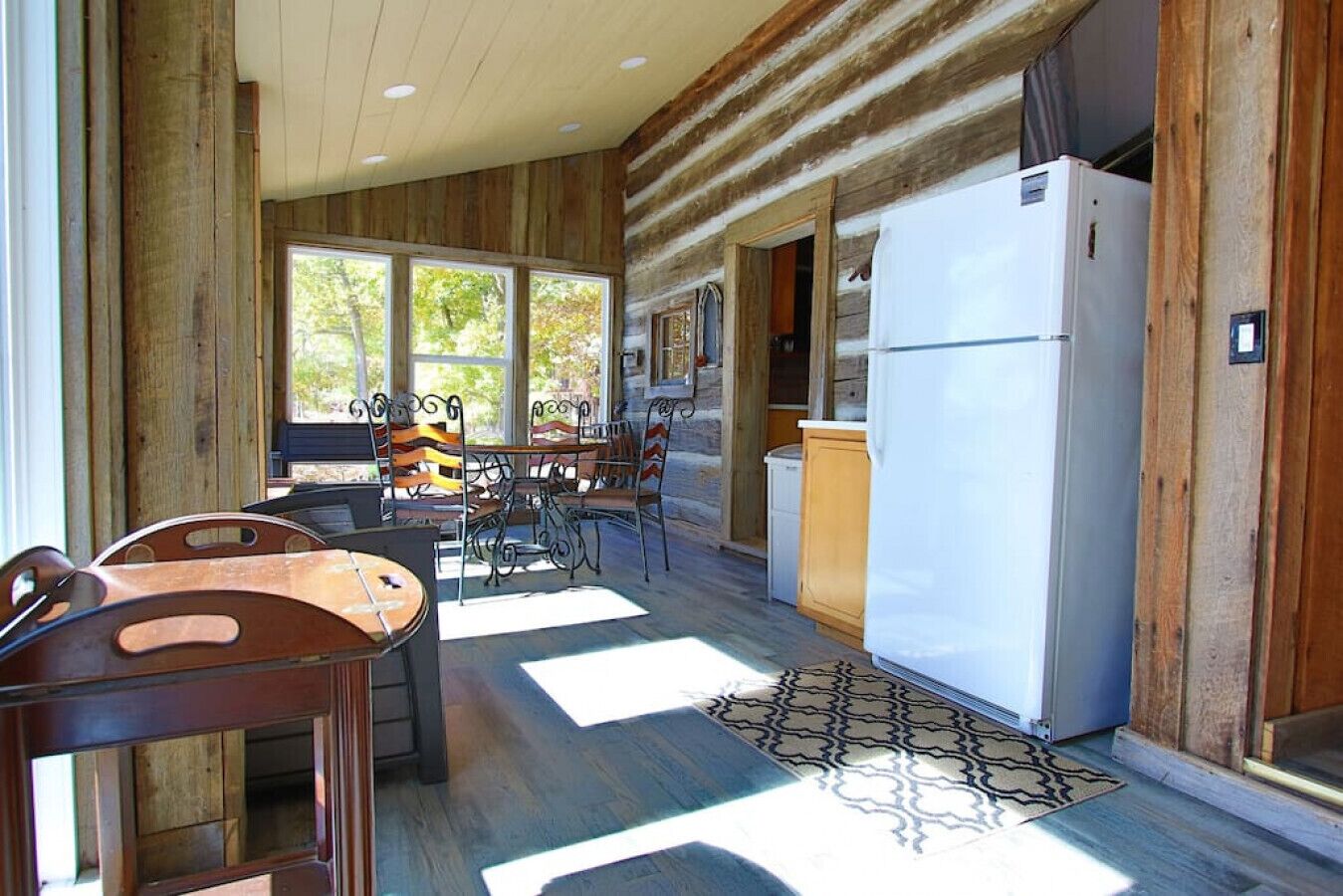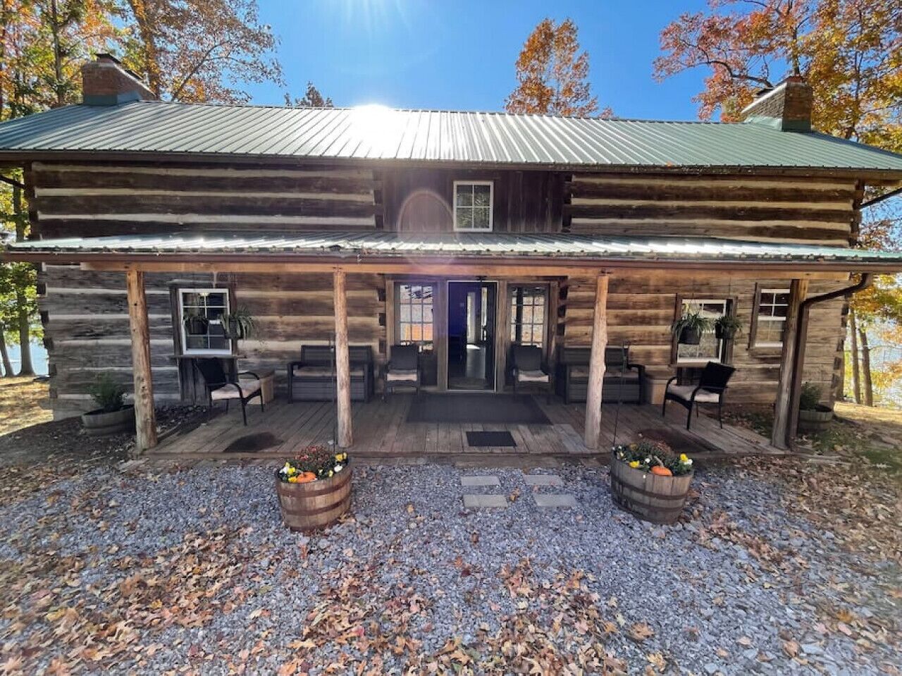 Located in Cadiz, Kentucky, this charming lakefront log cabin offers a serene retreat for those seeking a peaceful getaway. The cabin boasts picturesque views of the lake and provides access to a private boat dock, 2 kayaks, and a paddle boat, allowing guests to fully embrace the natural beauty of the surroundings.