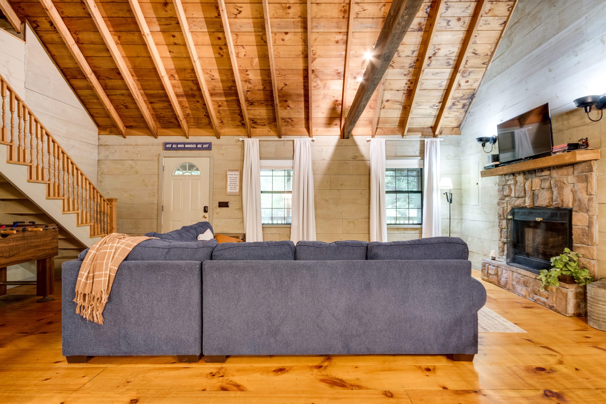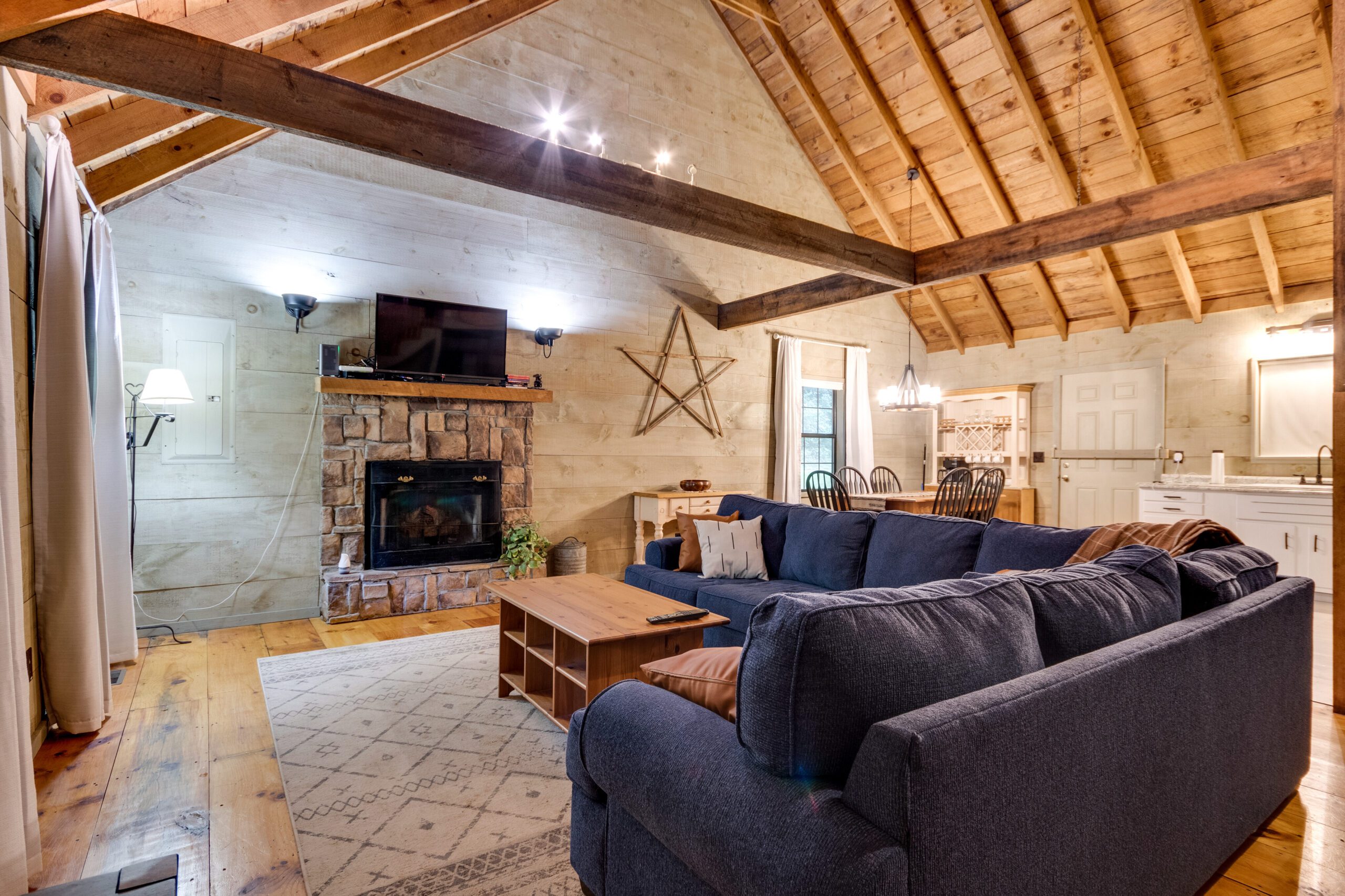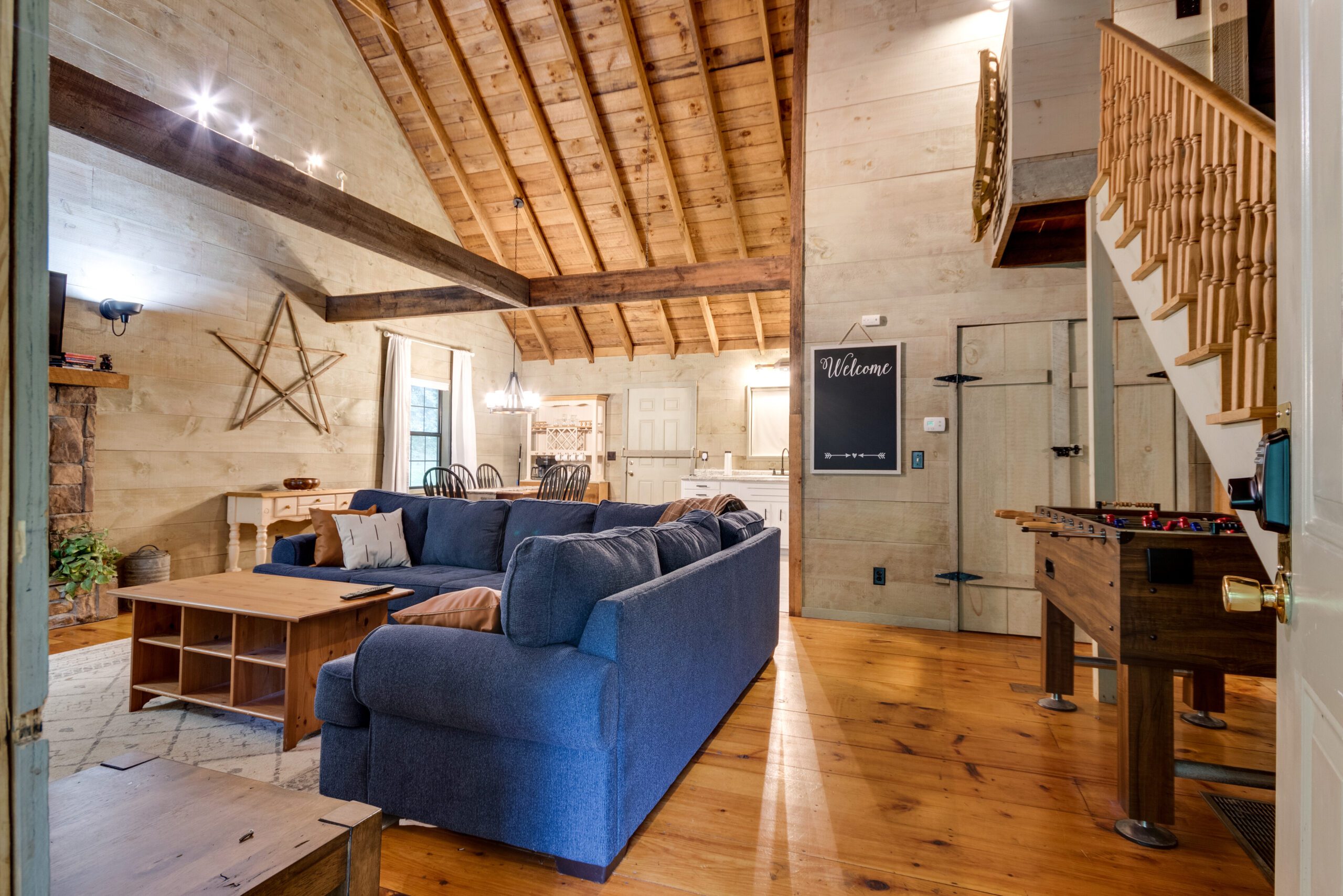 Welcome to our restored cabin – The Cozy Hollow, located in the foothills of The Great Smoky Mountains. Our cabin is all about relaxing and enjoying the peacefulness of the surrounding wilderness. Get an outdoor fire going or warm up in the hot tub which are great for those chilly Tennessee nights. Inside, our cozy and very spacious cabin is suitable for up to 9 guests. The large yard is also perfect for hanging outside.