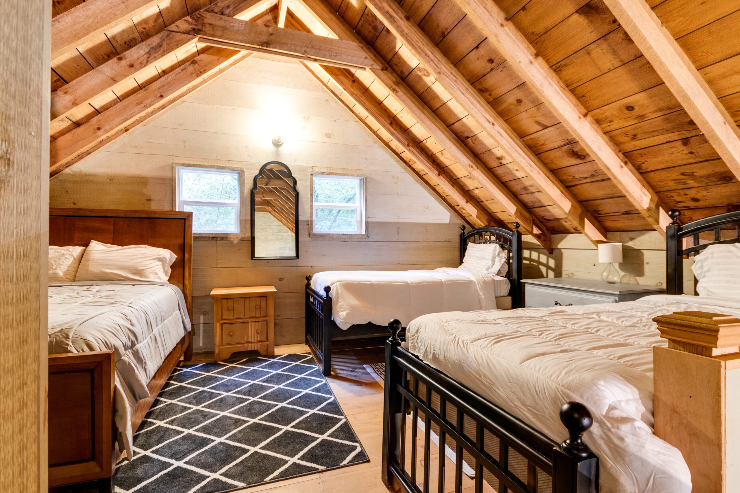 Bedroom 2: Queen bed and two twin beds