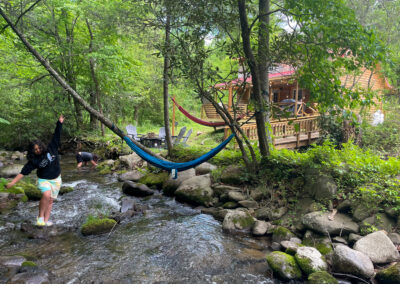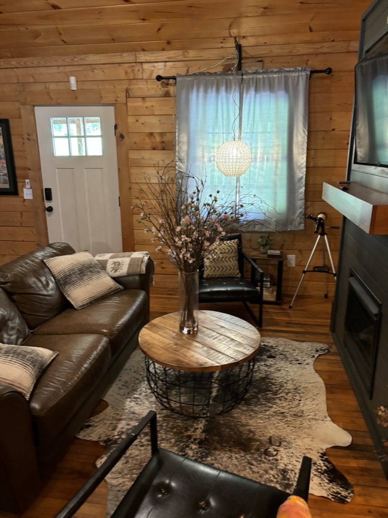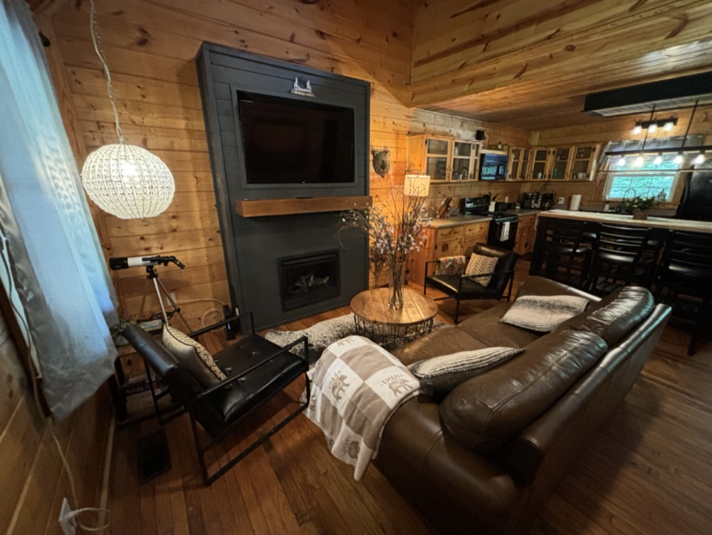 With the serene sounds of a beautiful Smoky Mountain stream just outside your cabin, any daily stressors will quickly fade away. On over 1.5 acres of land, you don’t have to worry about nearby neighbors. On a clear night, the brightness of the stars will amaze! If that doesn’t do it, the new Adventure distillery is 2 minutes away!