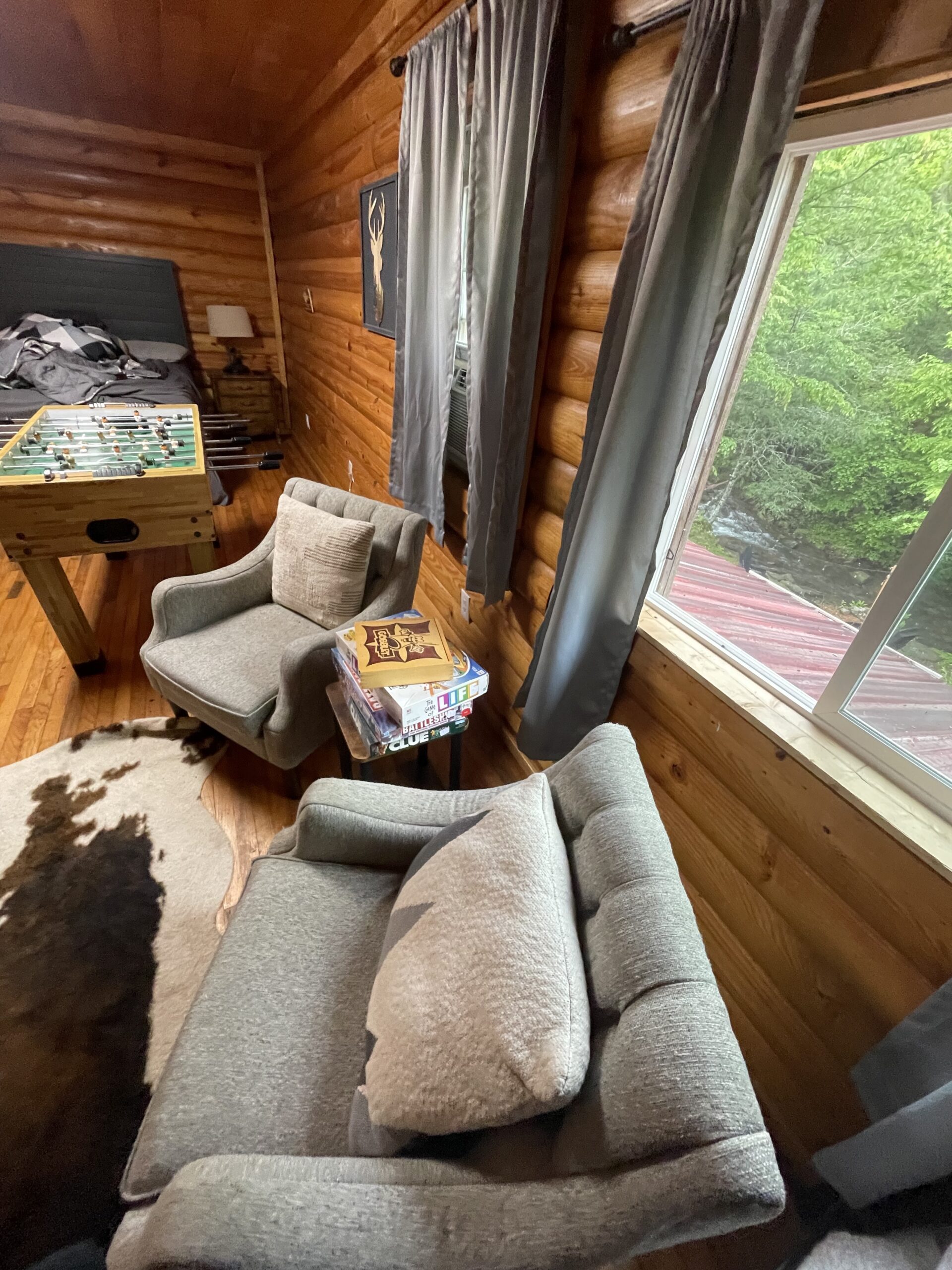 Please do not leave trash or any food items laying outside of the cabin. There is plenty of wild life that will rummage through garbage! We have a custom built, locked wooden box that acts as a bear proof container for all of your trash
