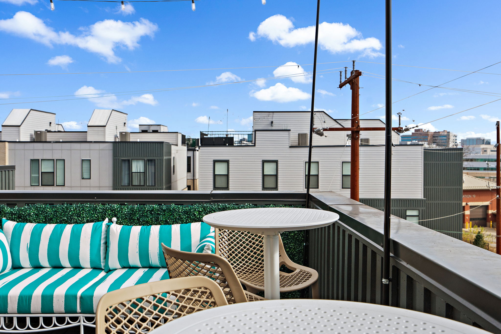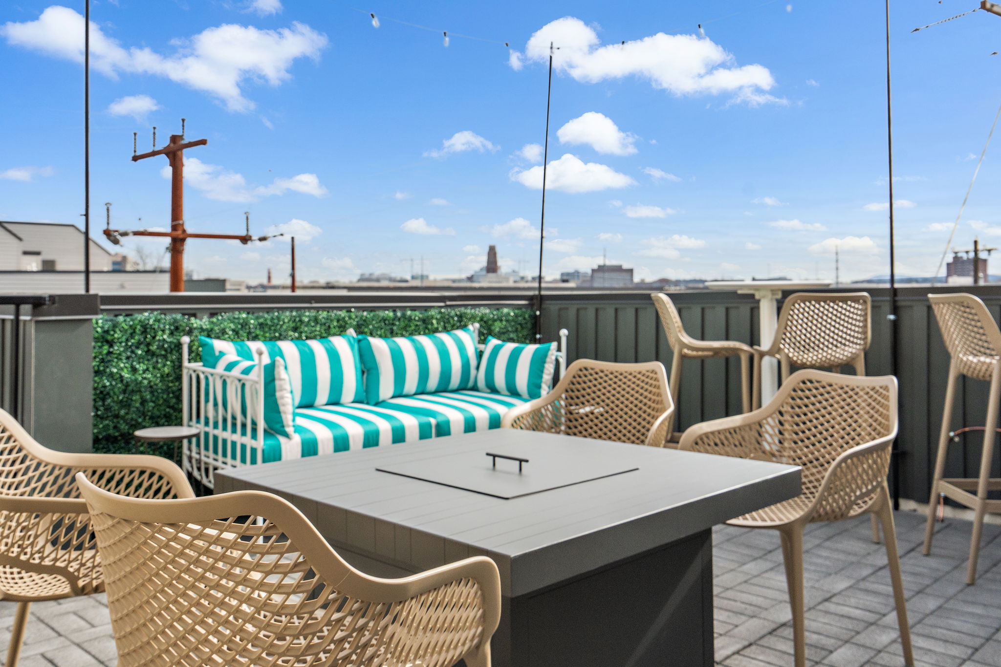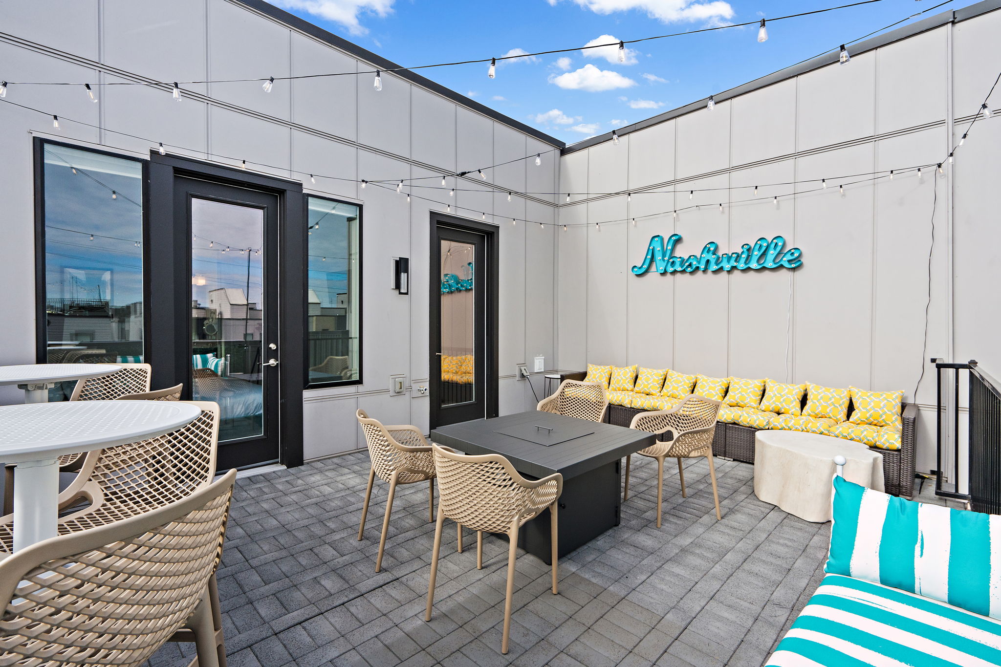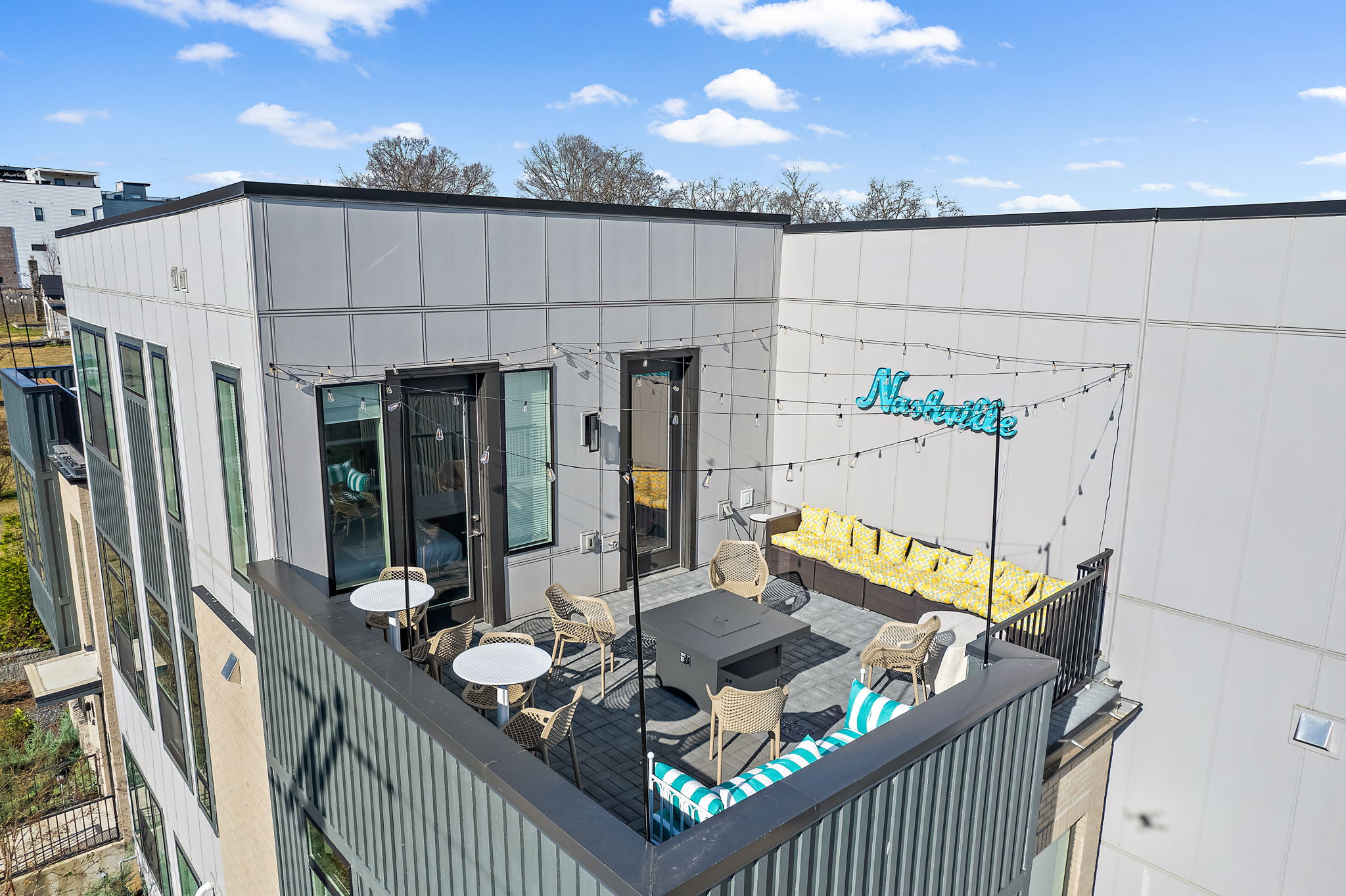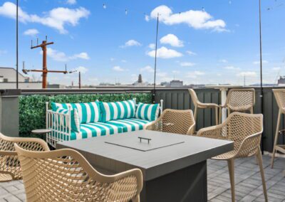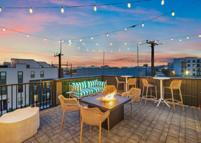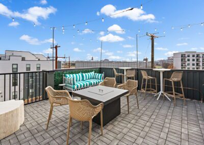 – 4th Level patios with gas fire pit, bistro lighting, and ample seating
