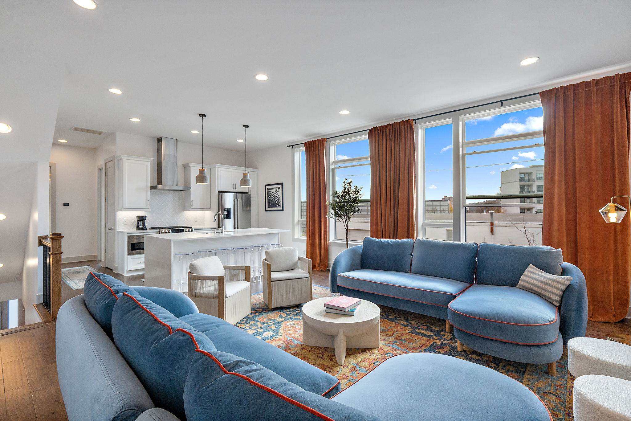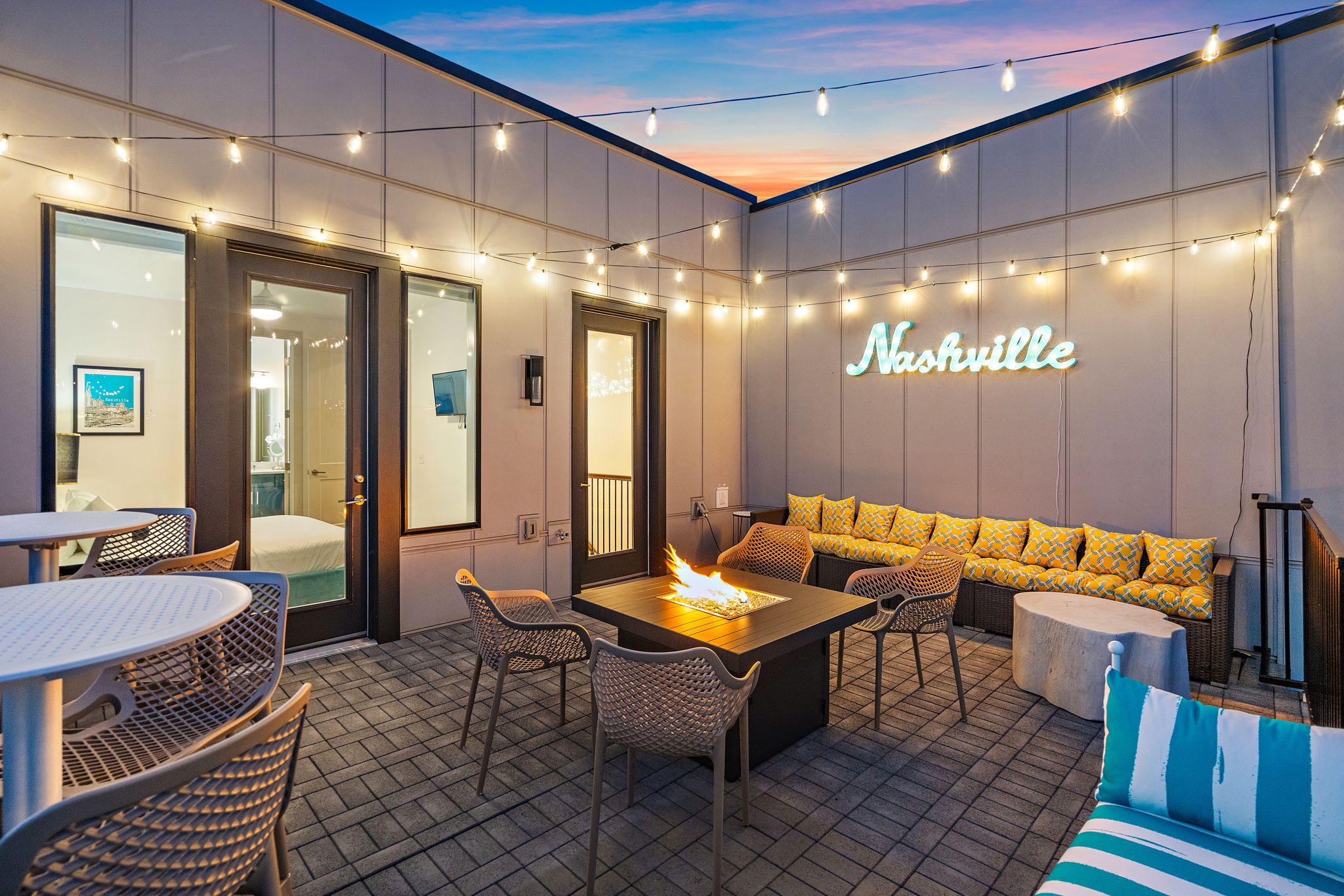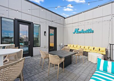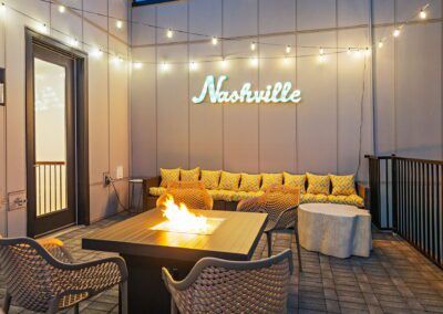 Welcome to The Southern Lady and Gentleman, your spacious and luxurious short term rentals in Nashville! Each with 2,000 sq ft of living space, our rentals boasts 8 bedrooms, each with a comfortable king-sized bed and ensuite bathroom, providing ample space for you and your guests to spread out and relax. We’ve paid close attention to every detail, ensuring that you have high-quality linens and towels for a comfortable stay. You’ll also have access to our 2 car garages, ensuring that your vehicles are safe and secure during your stay. Stay connected with our high-speed wifi, and enjoy your favorite shows on our smart TVs. Our fully stocked kitchens are perfect for cooking meals, with state-of-the-art appliances and everything you need to create a delicious dinner. Take in the stunning views of the city from our rooftop patios, complete with a gas fire-pits, perfect for cozy evenings under the stars. Regardless of your reason for visiting Nashville, The Southern Lady & Gentleman are the perfect choice for your next vacation.