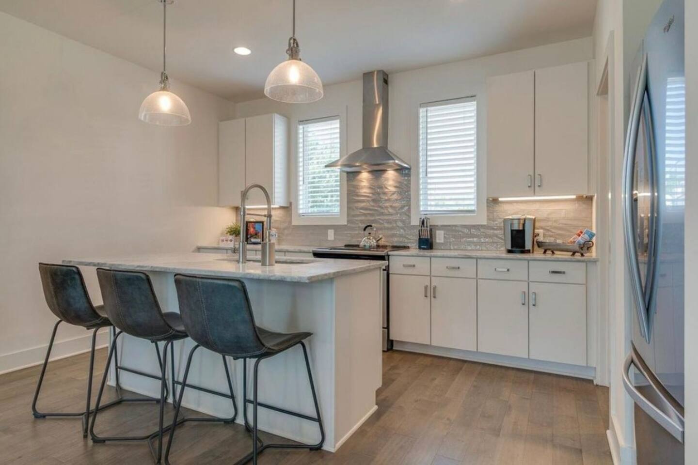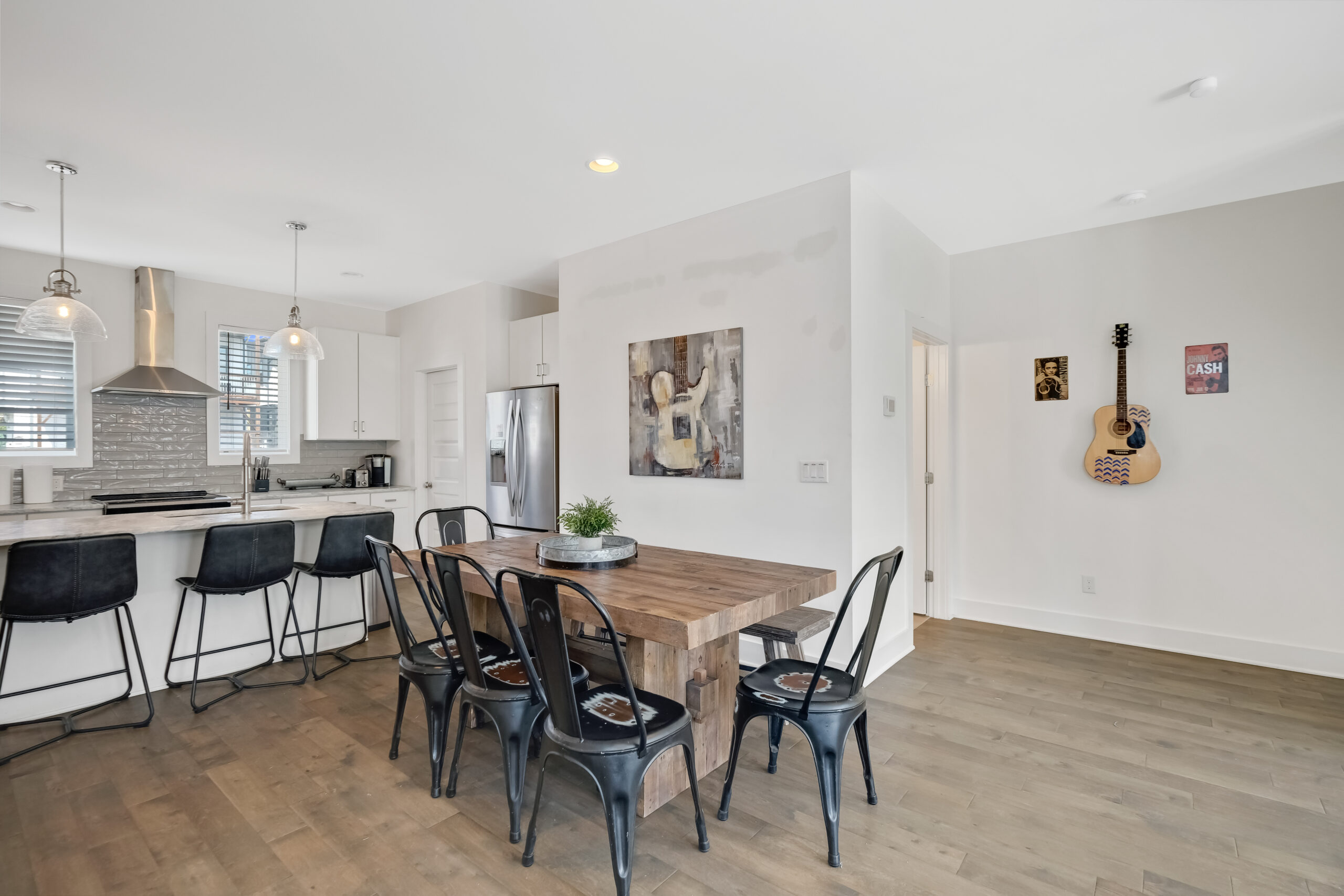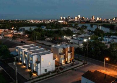Welcome to Nashville! These stylish homes are perfect for large group trips to Music City. Boasting a shared outdoor patio with hot tub, games and lounging, each home has 3 spacious beds, and 3 full baths, this is the spot to be. Located only minutes to Broadway, Demonbreun St., Germantown, and hundreds of restaurants and entertainment venues.