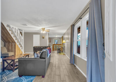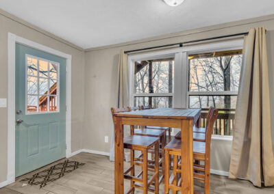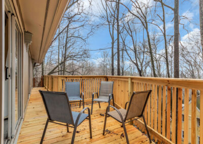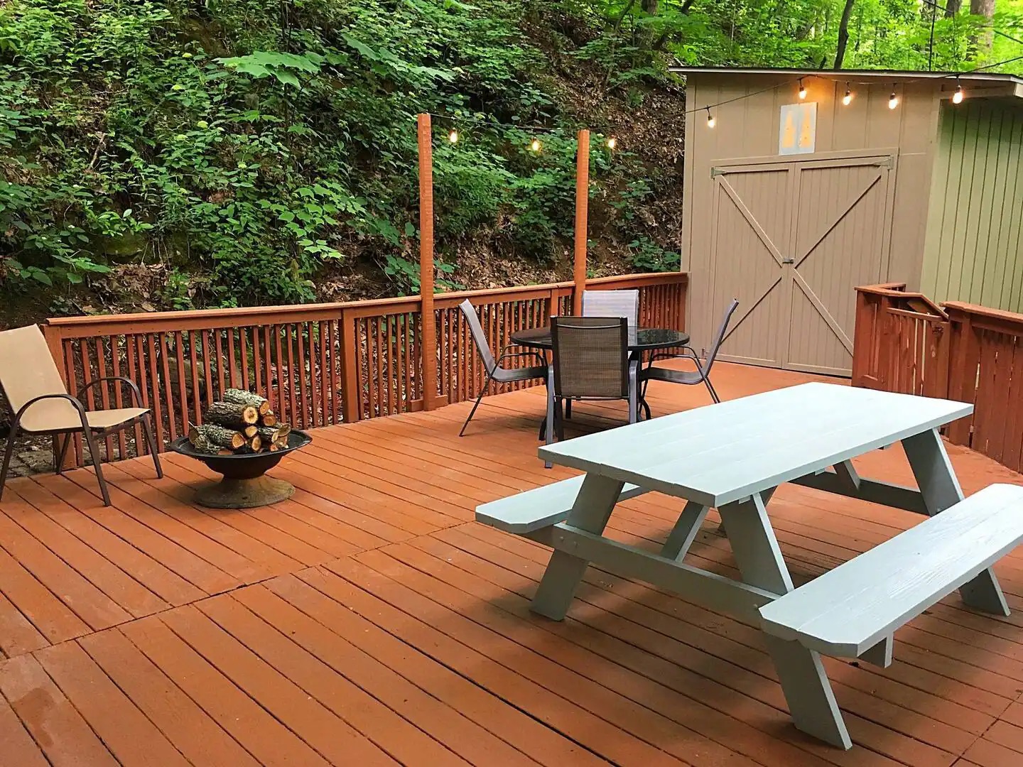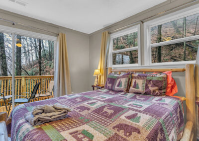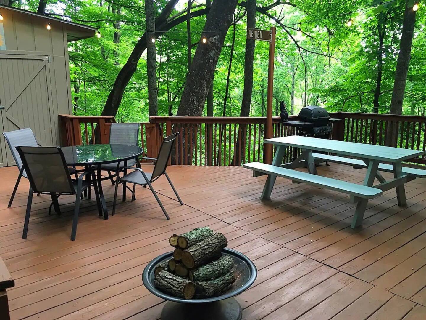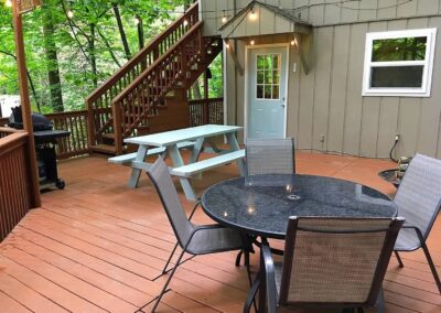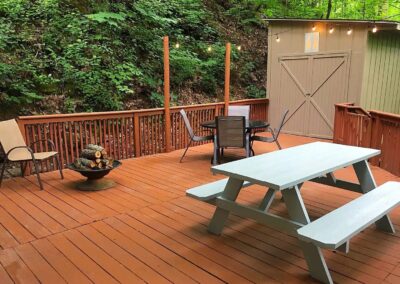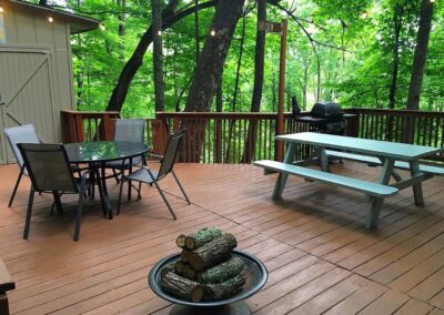 One of the highlights of our cabin is the stunning porch that overlooks the woods. It’s the perfect spot to enjoy a cup of coffee in the morning or a glass of wine in the evening. Our hot tub on the porch is the perfect place to relax and unwind after a long day of exploring the surrounding area.