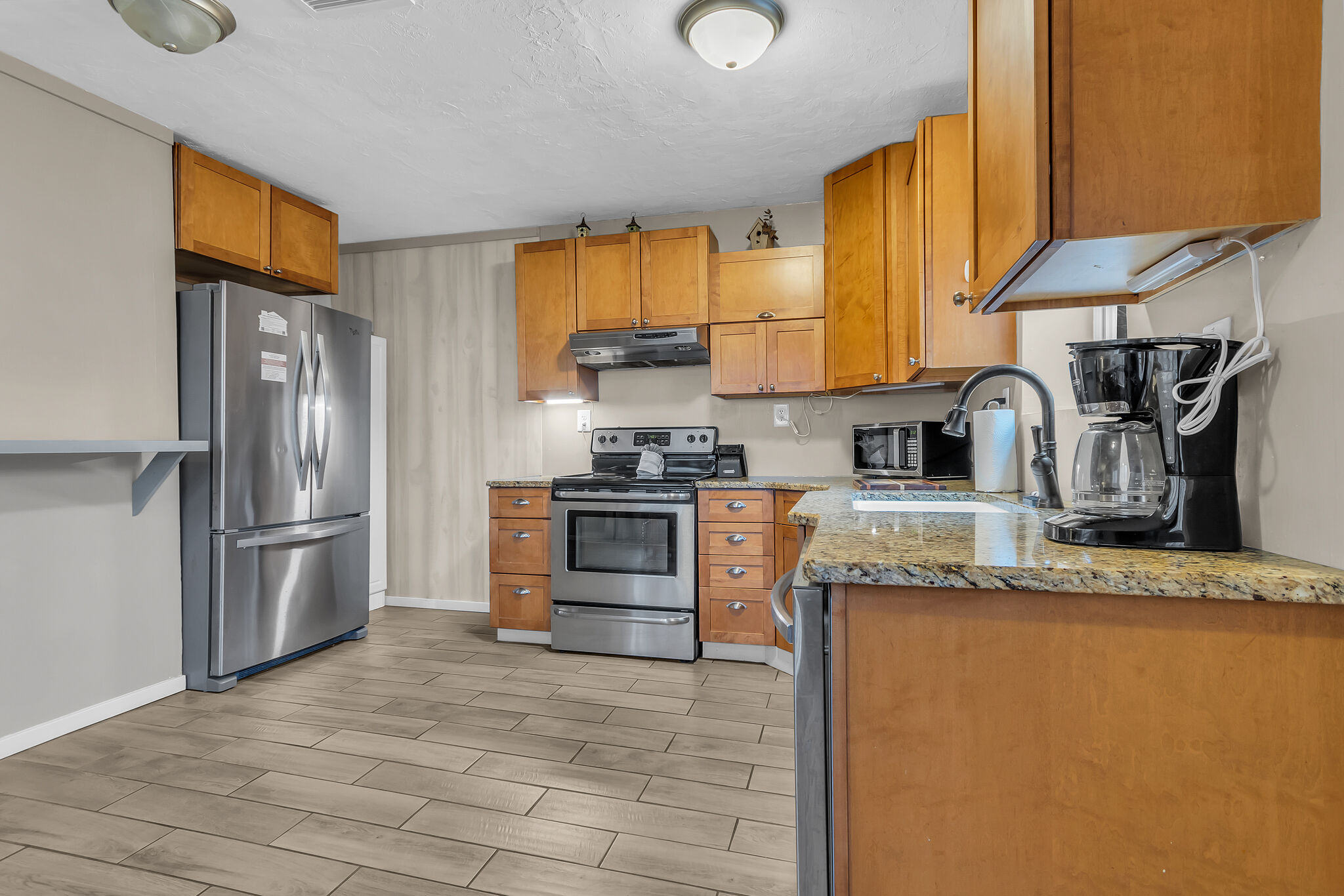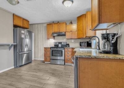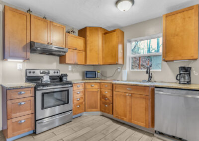 Our cozy living room is perfect for snuggling up with a good book or watching a movie with loved ones. The fully-equipped kitchen is sure to delight the chef in your group, with modern appliances and ample counter space for cooking up delicious meals. Our dining area seats up to six people comfortably, ensuring that everyone can gather together to enjoy a home-cooked meal.