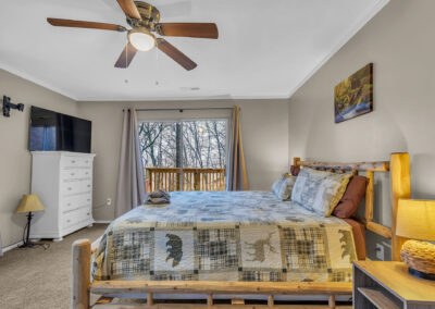 Our cabin has three bedrooms, each one designed to offer maximum comfort and privacy to its occupants. The master bedroom features a king-sized bed, a fireplace, and an en-suite bathroom that’s equipped with a jetted tub. The second bedroom has a queen-sized bed, while the third bedroom features two twin beds. All the bedrooms have their own private bathrooms, making it easy for everyone to get ready in the morning.